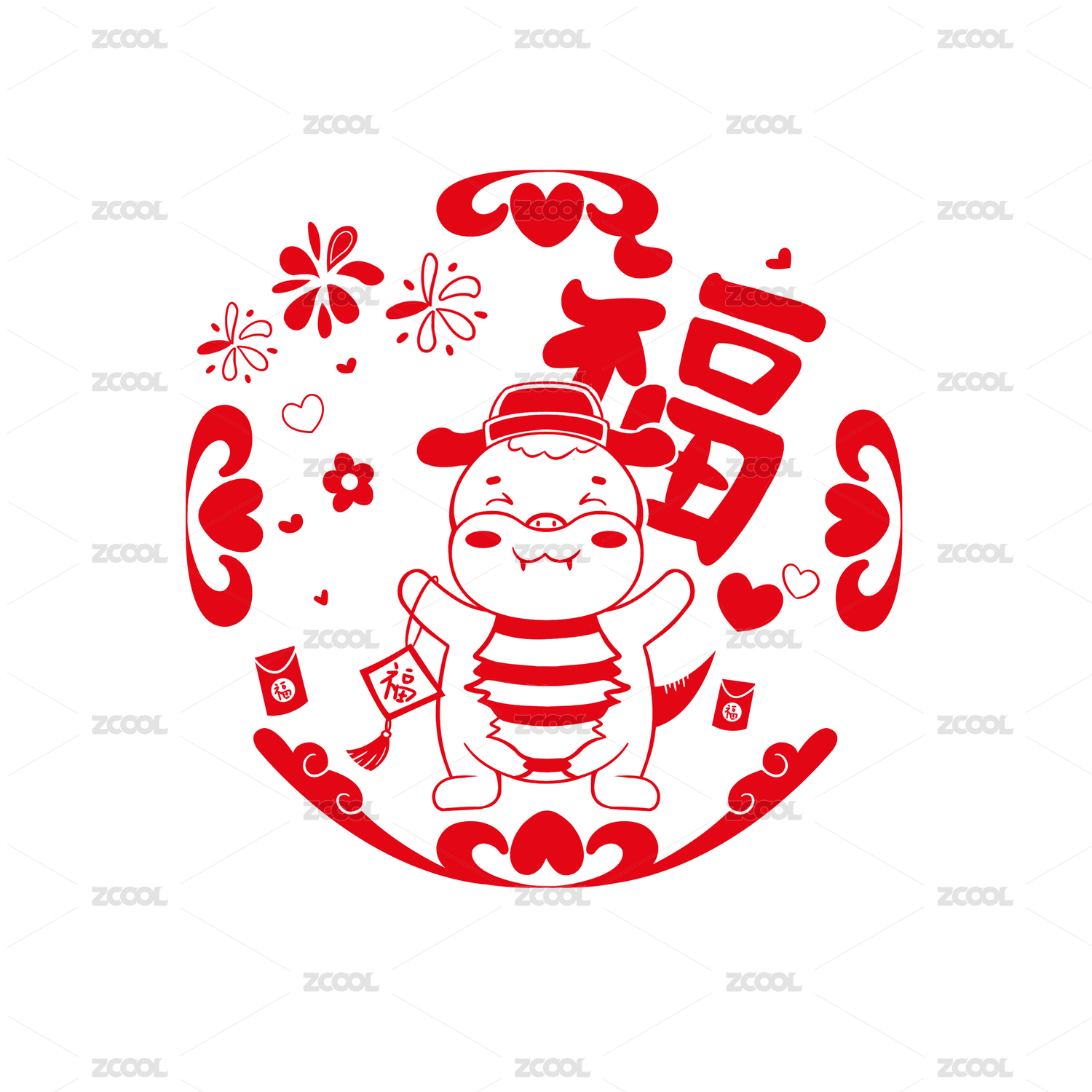 蛇年福字門貼創(chuàng)意圖案
