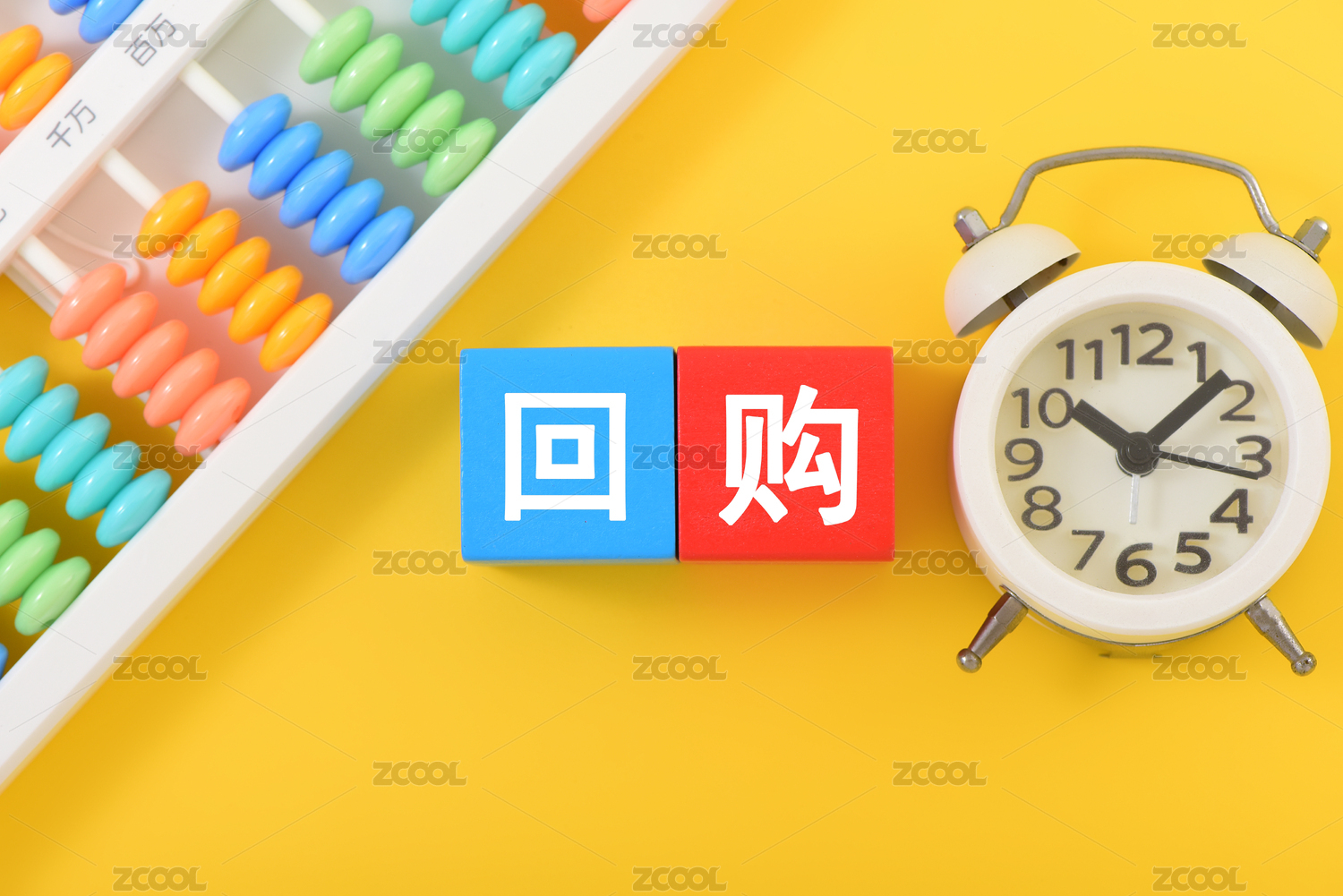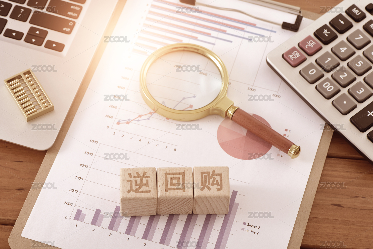 金融辦公用品上放著文字積木回購