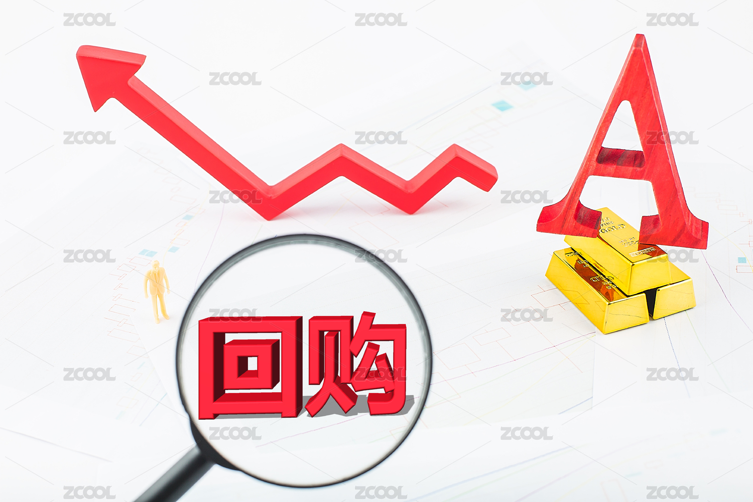 紅色箭頭和A股,股市回購概念圖片。