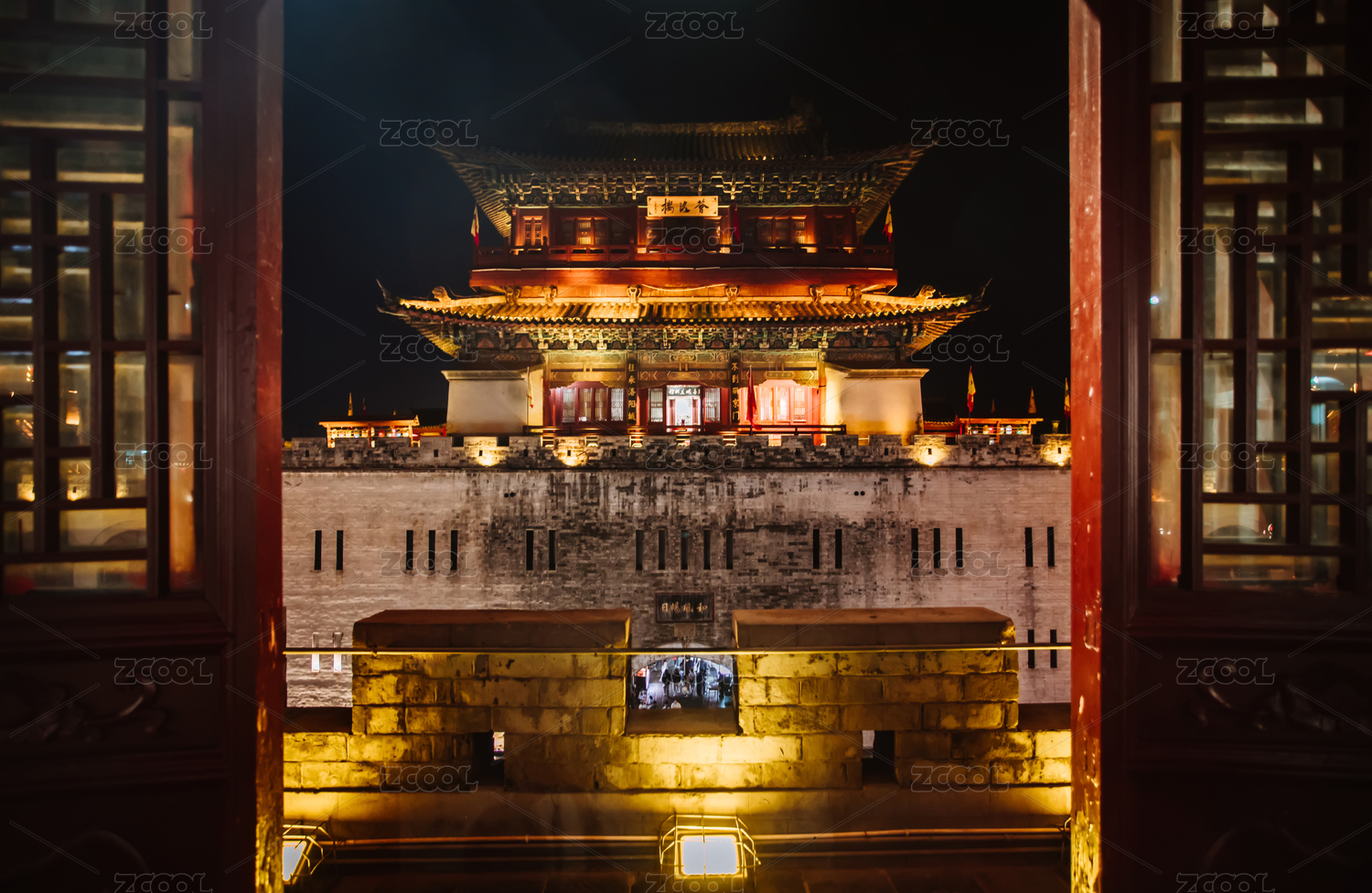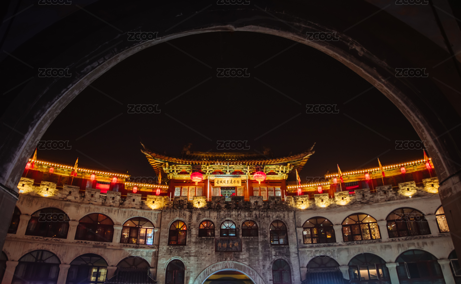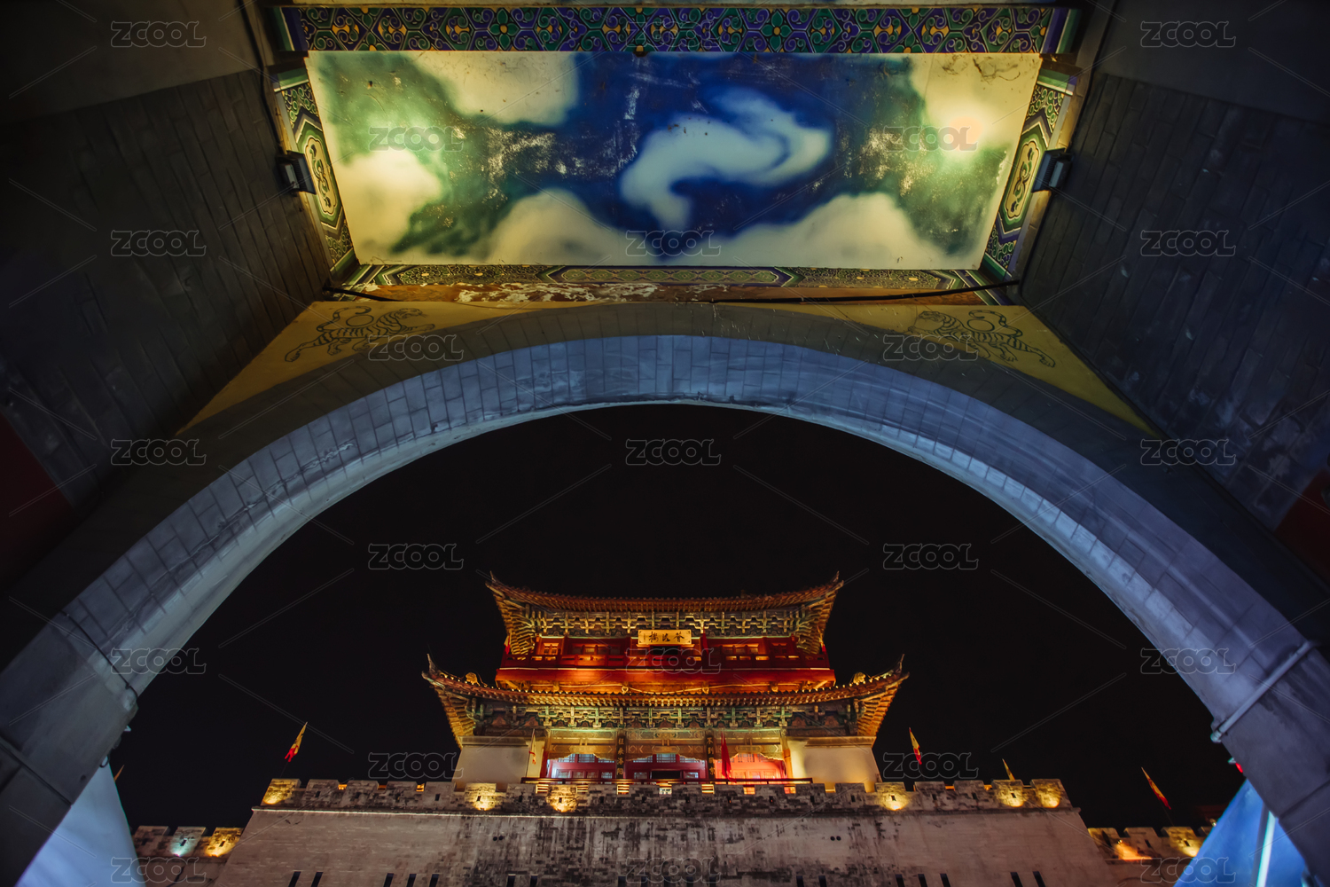 河南洛陽麗景門景區(qū)甕城內(nèi)部夜景