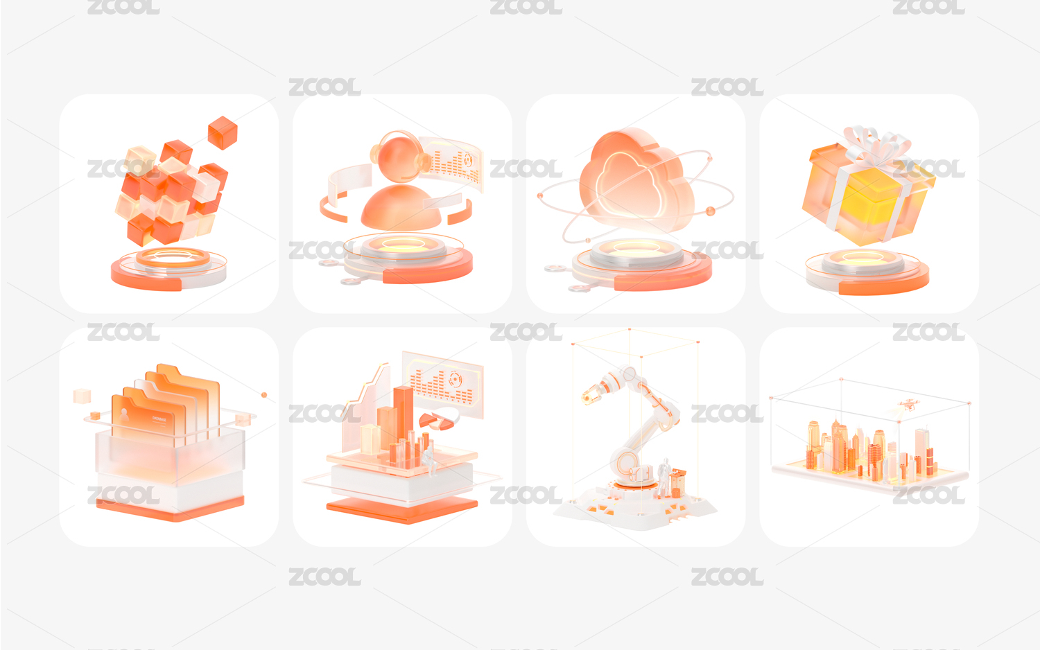 橙色科技智能概念未來物聯(lián)網(wǎng)絡(luò)圖標(biāo)合集