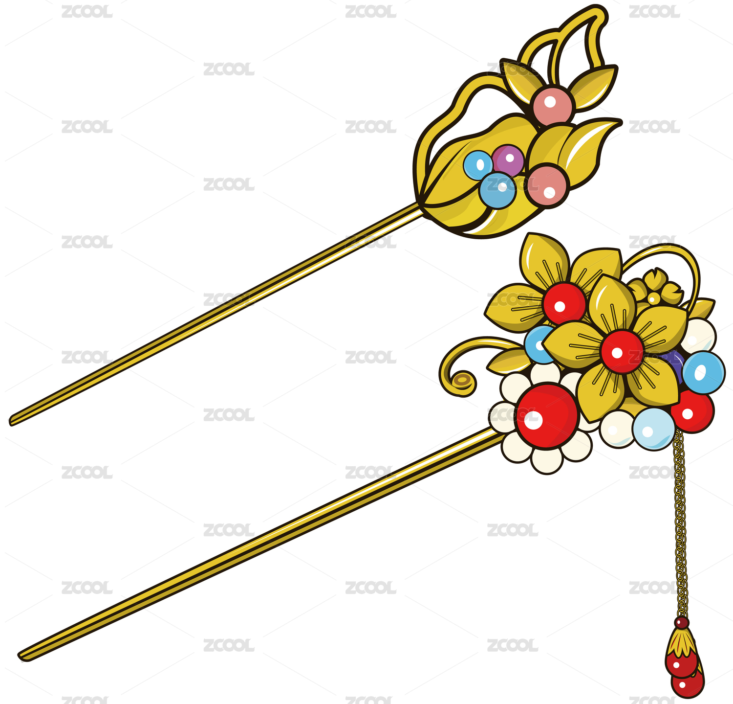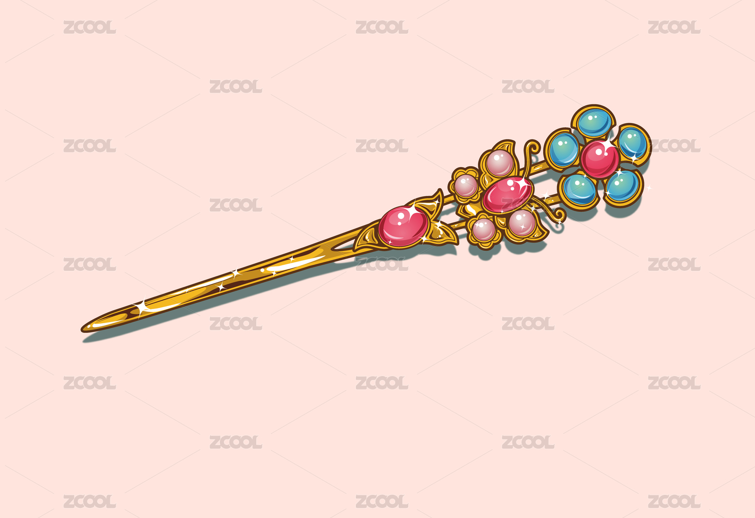 矢量潮流復(fù)古插畫首飾發(fā)簪