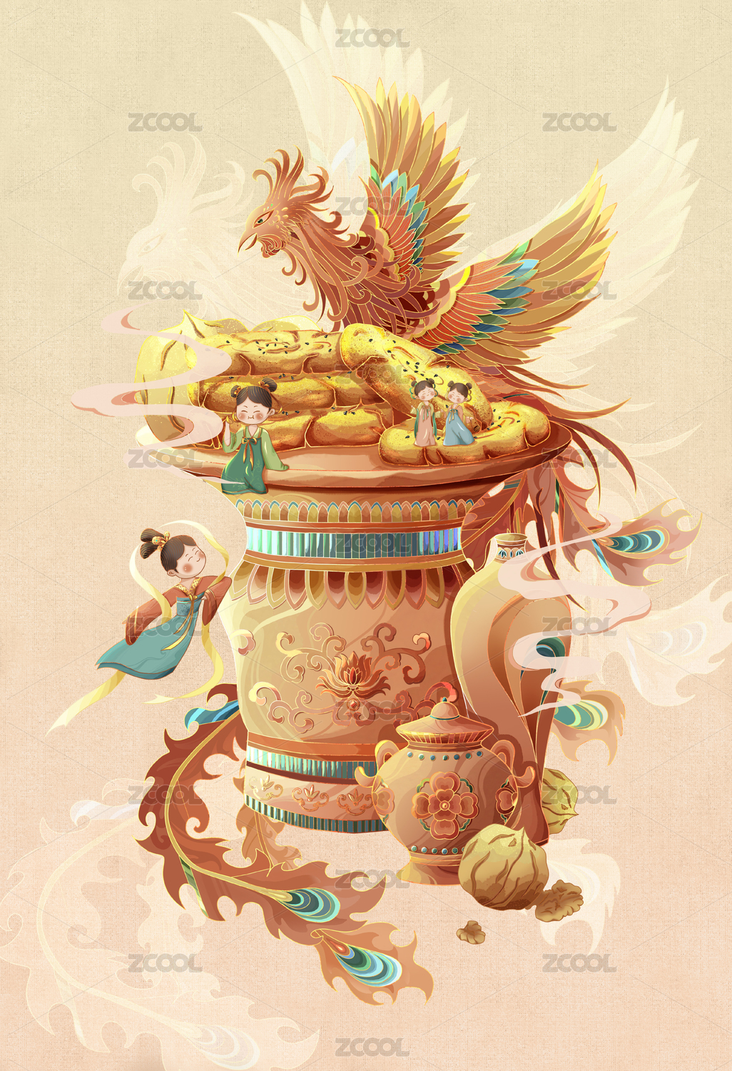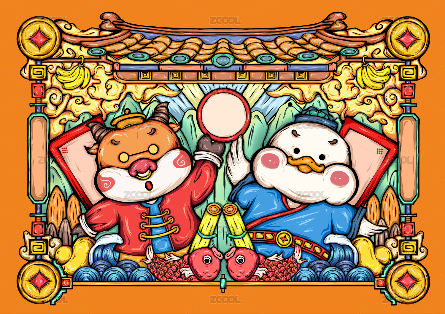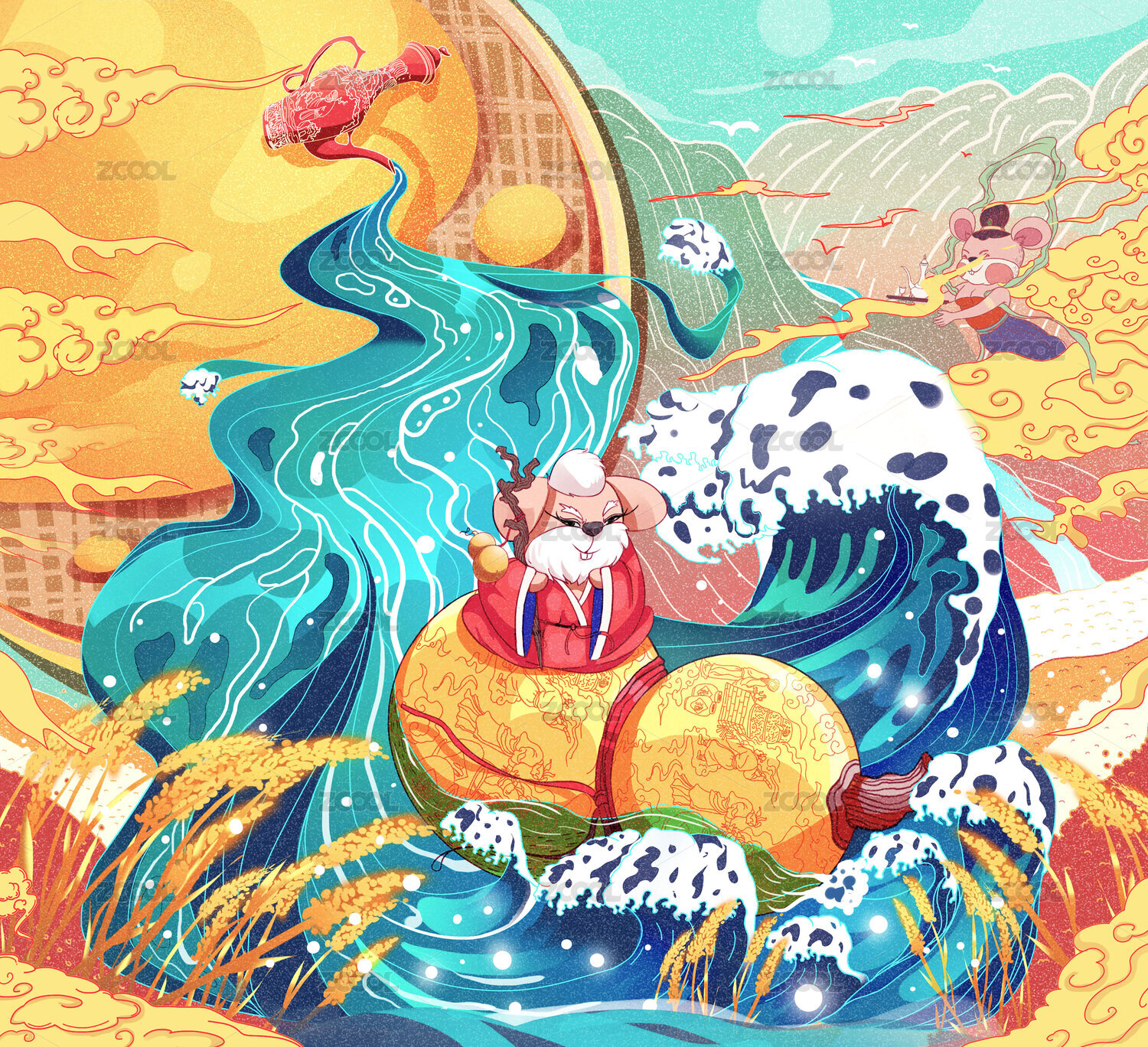 海豚精靈線圈手機壁紙文創(chuàng)包裝插畫