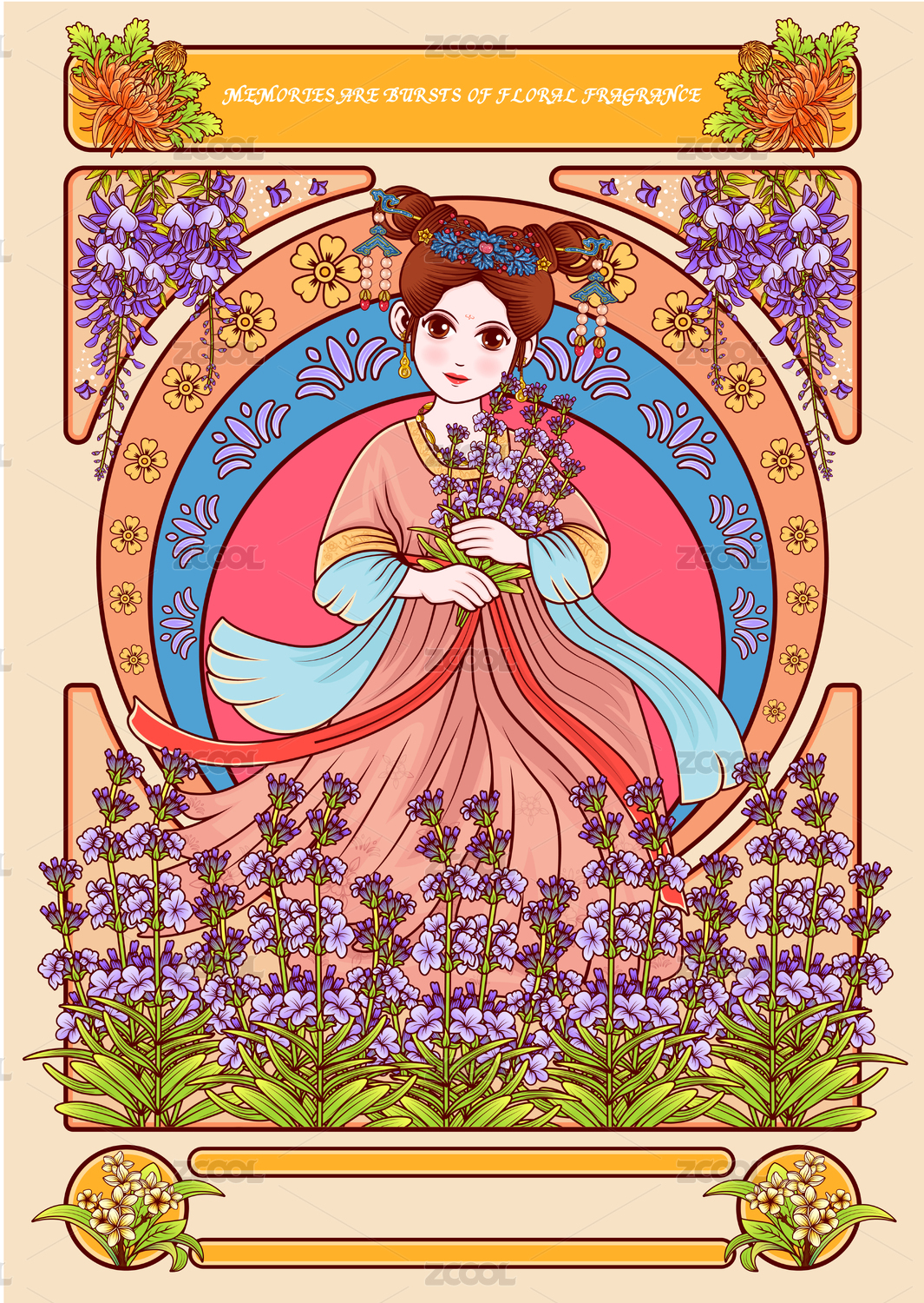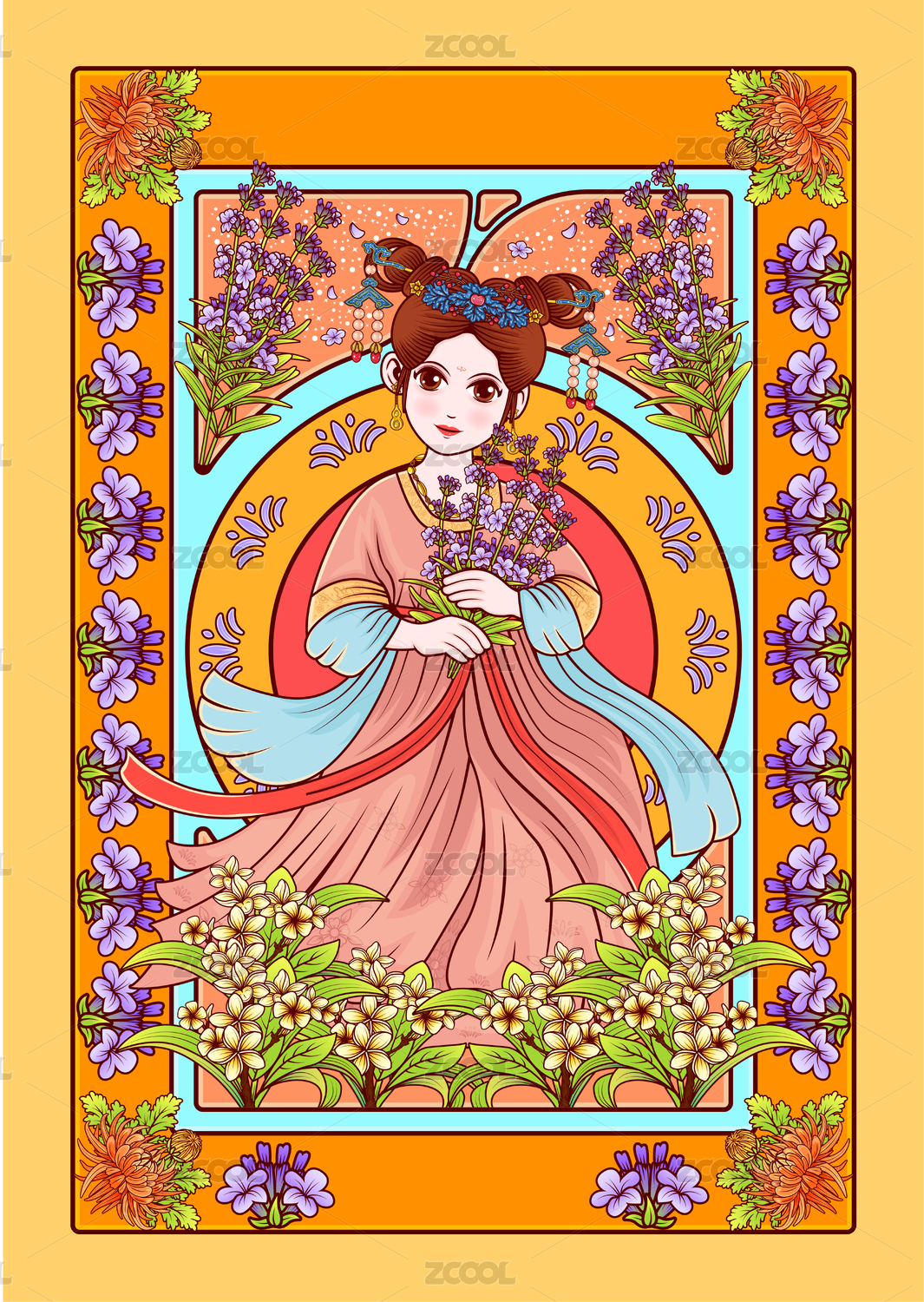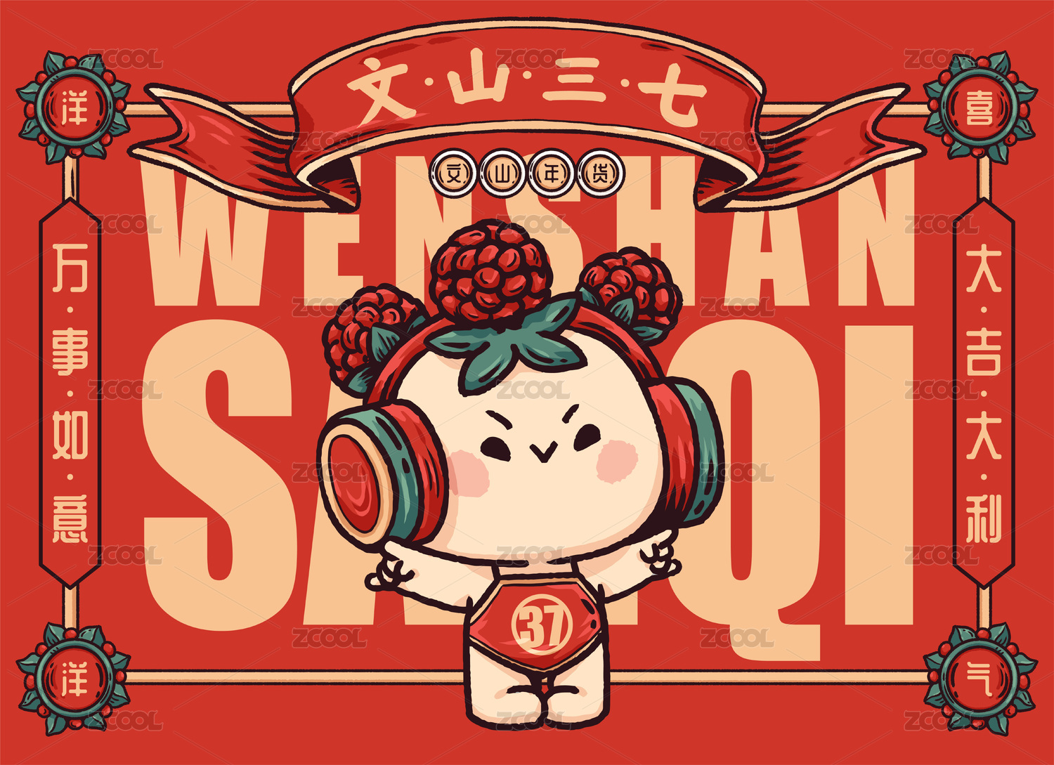 2023癸卯兔年紅色花朵白兔包裝插畫對稱
