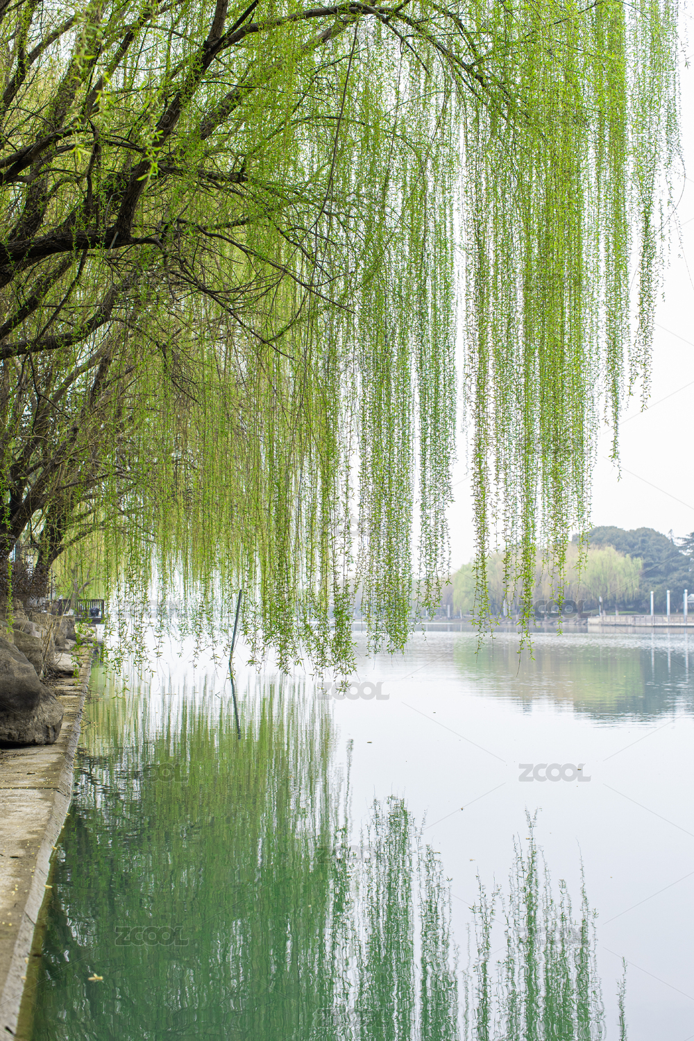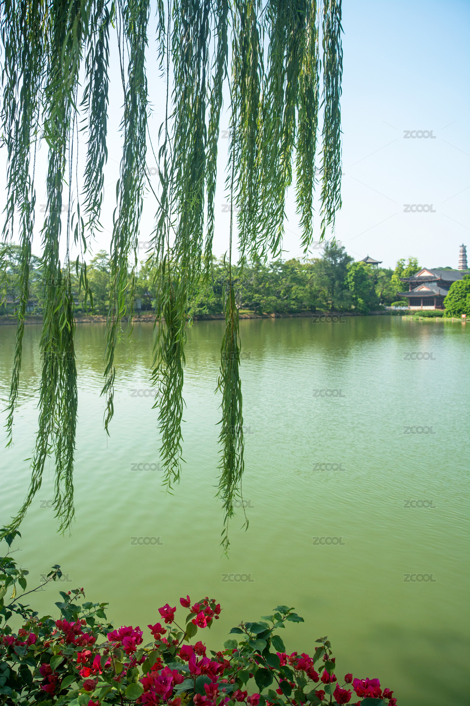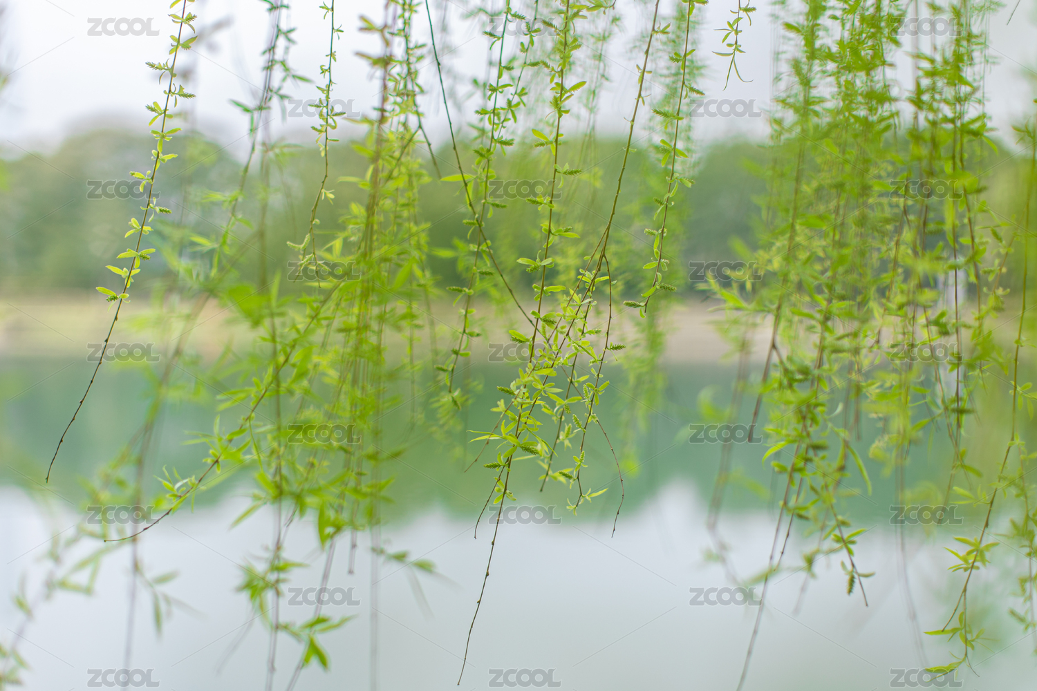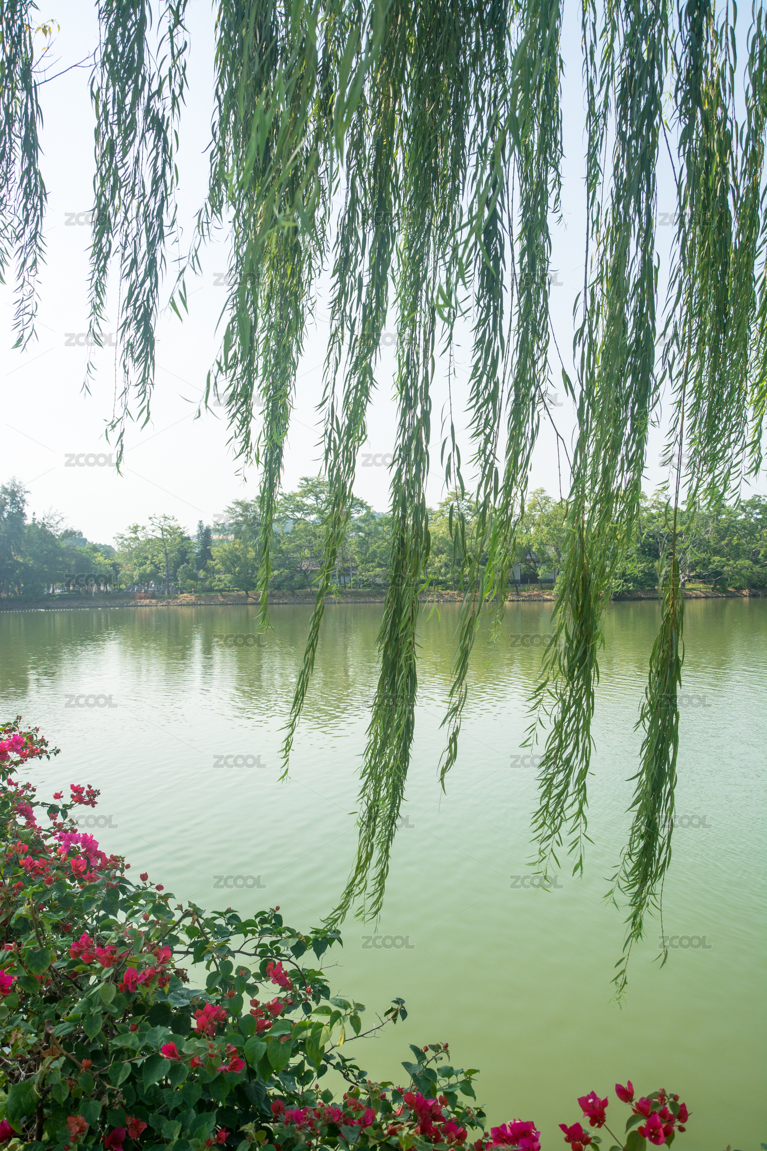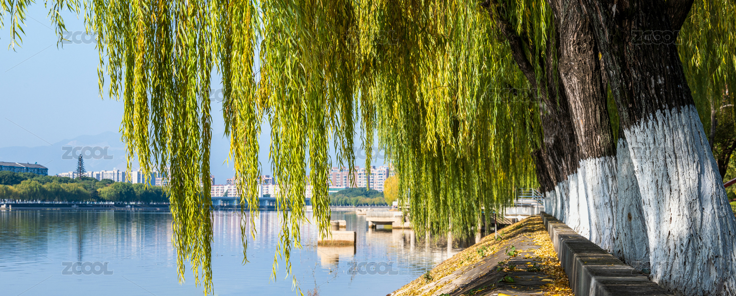 湖畔垂柳依依