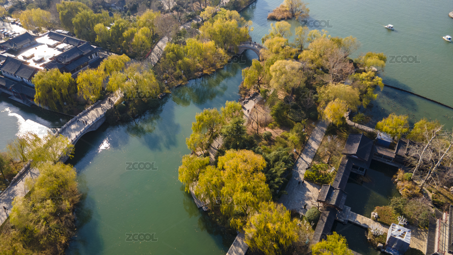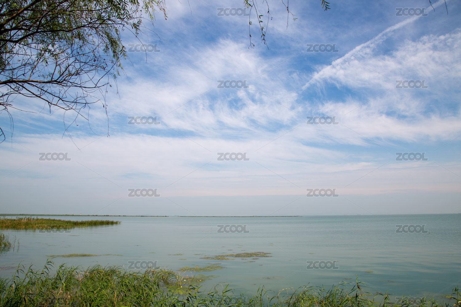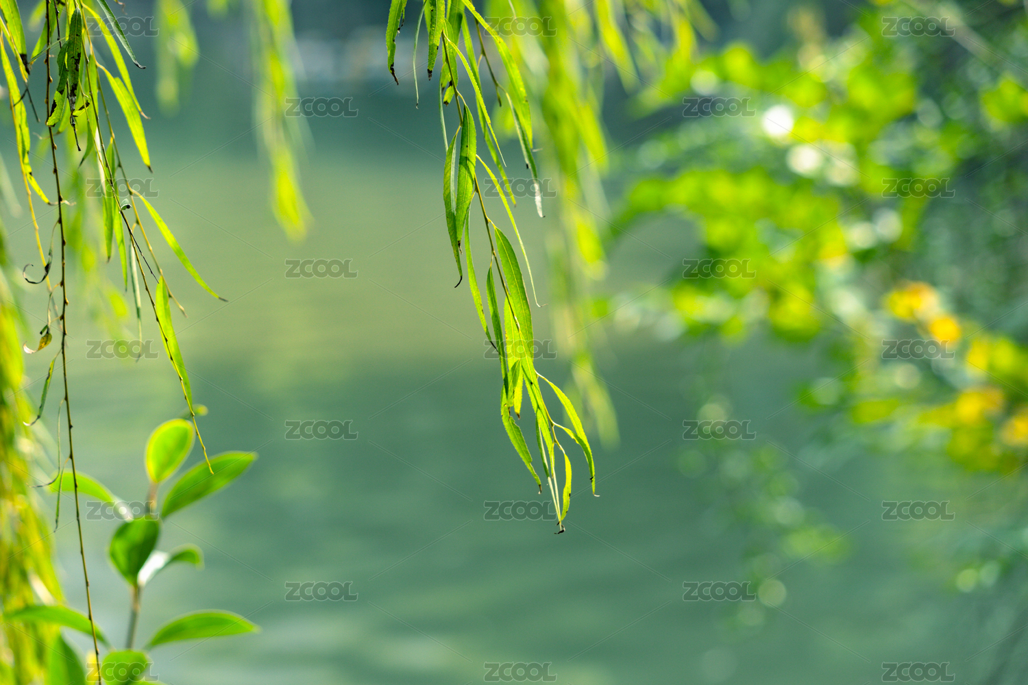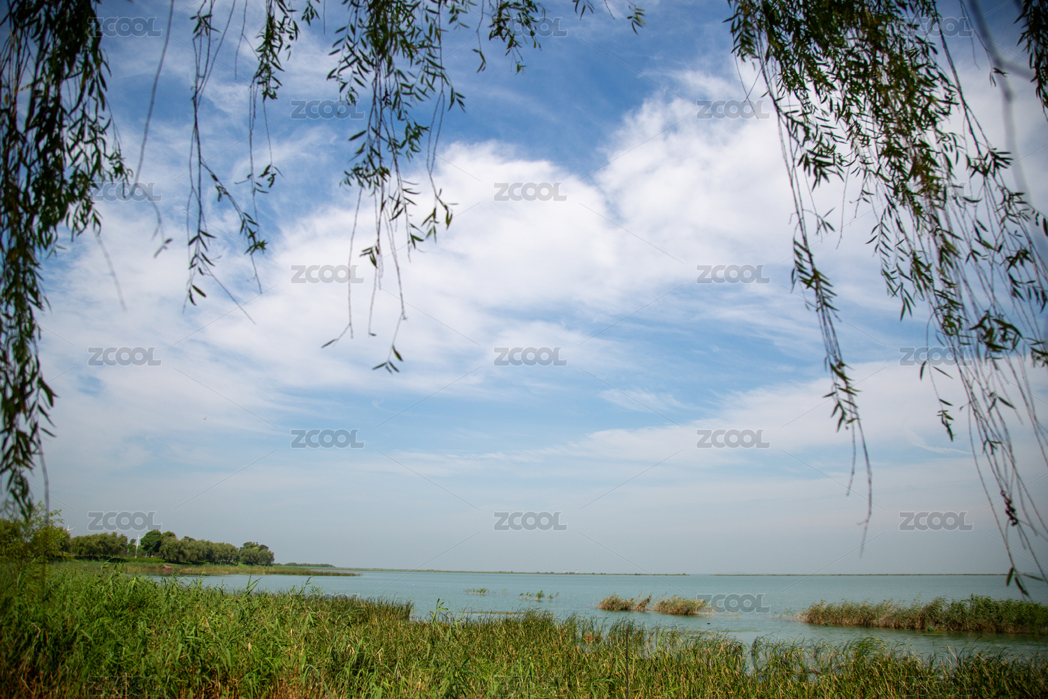 湖畔垂柳依依