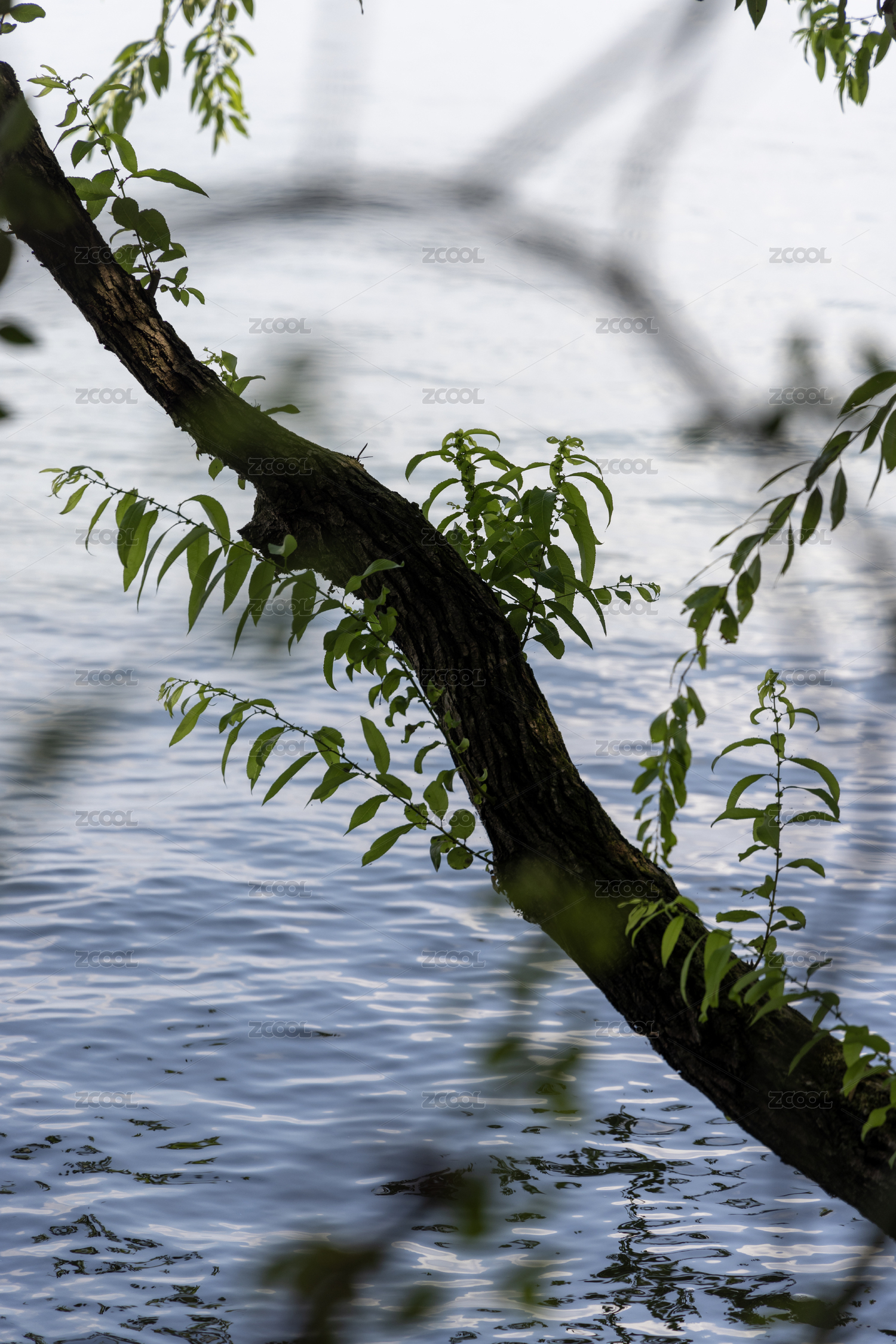 湖面垂柳的枝條