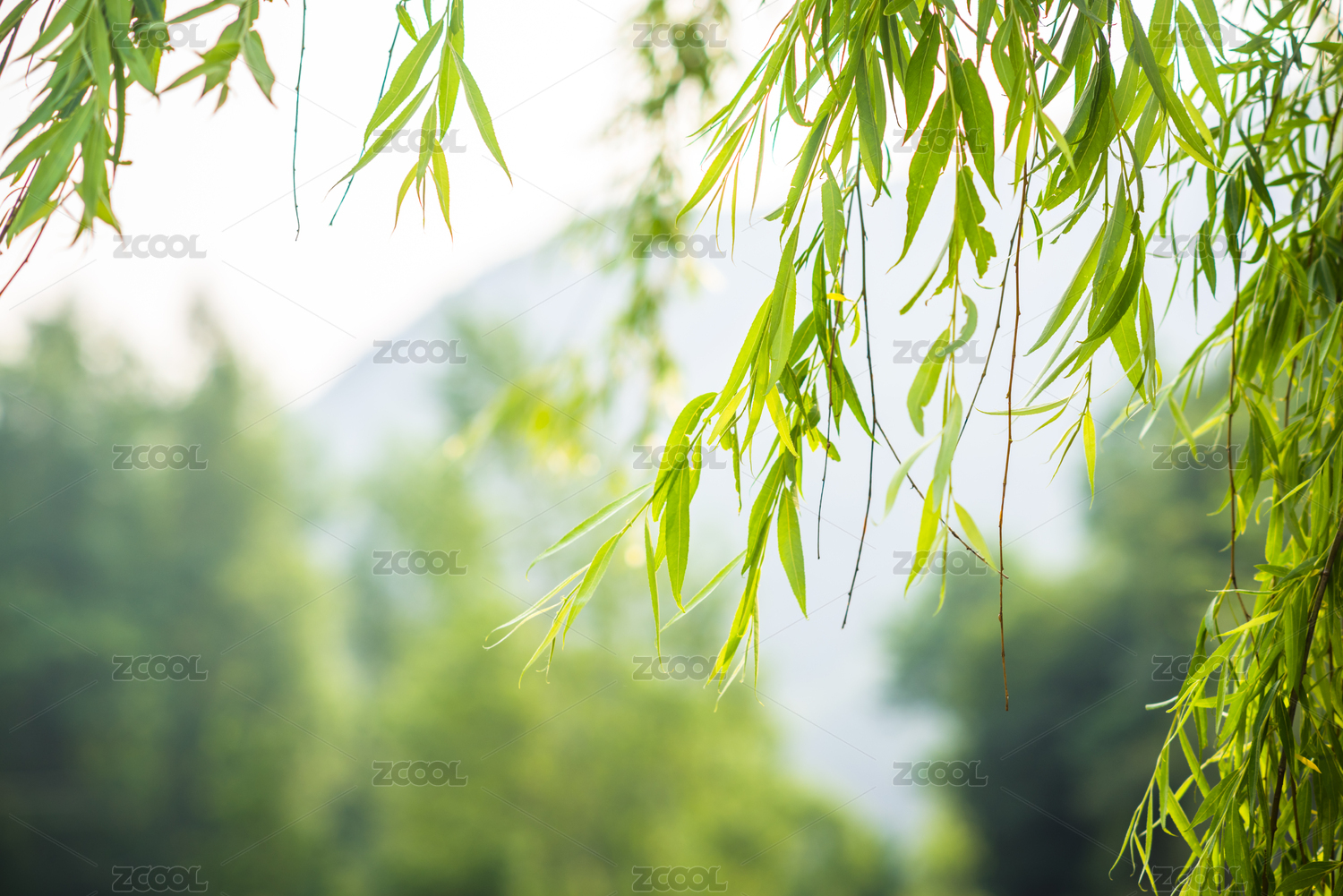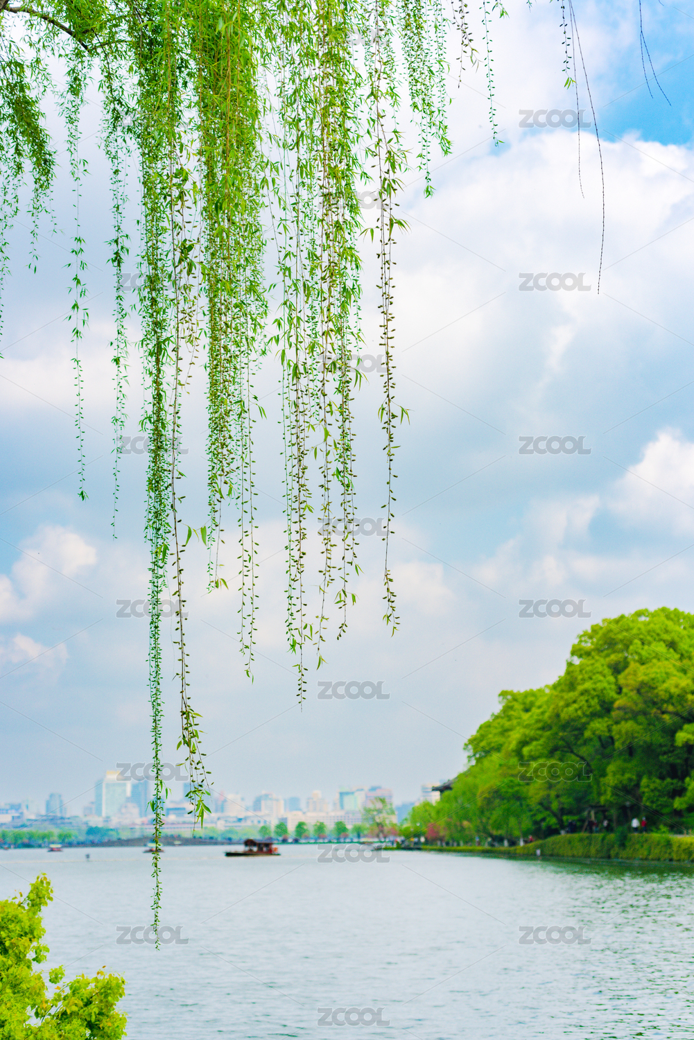 杭州西湖春景柳枝垂柳