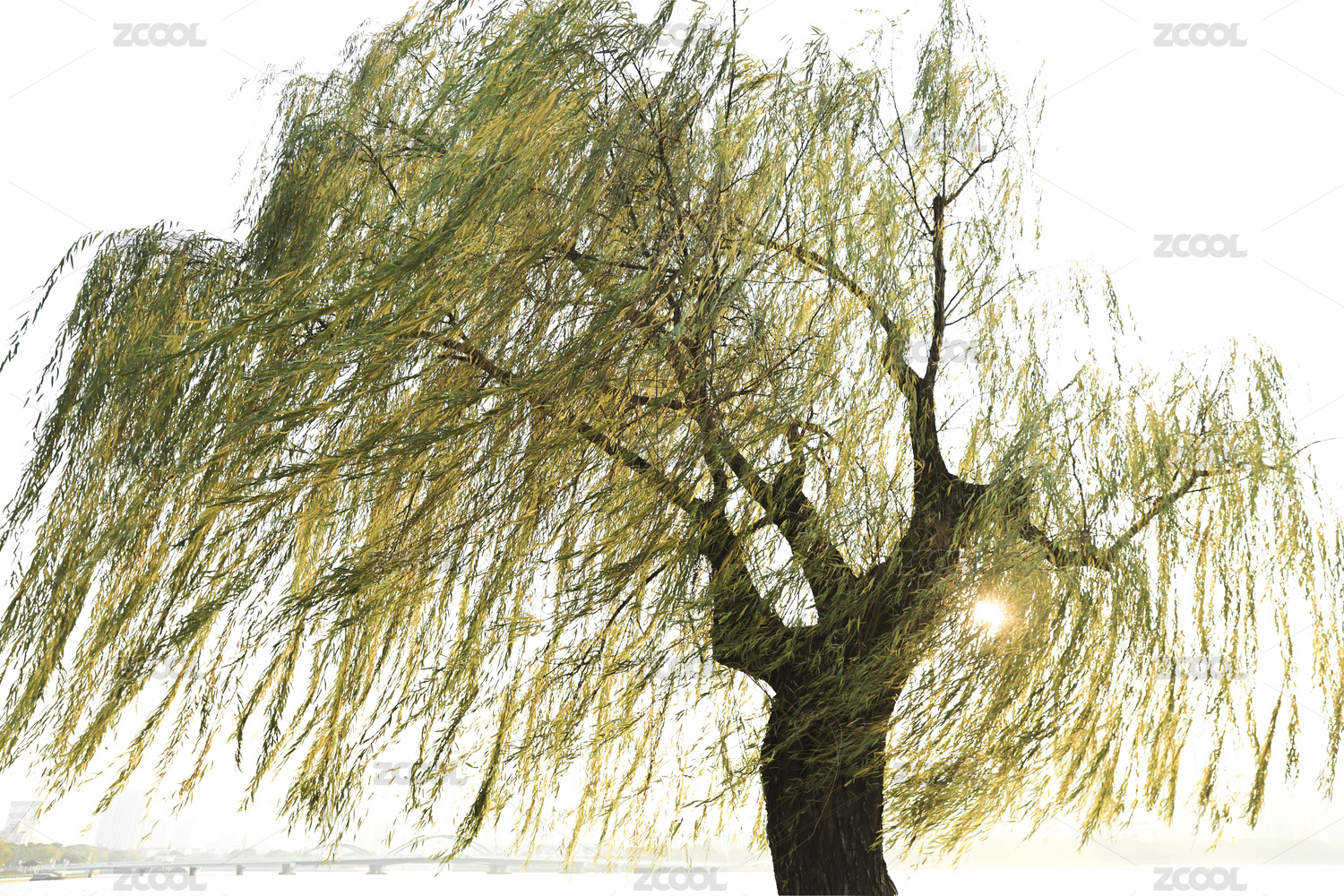 初春的陽光下河邊的垂柳發(fā)芽長出了葉子