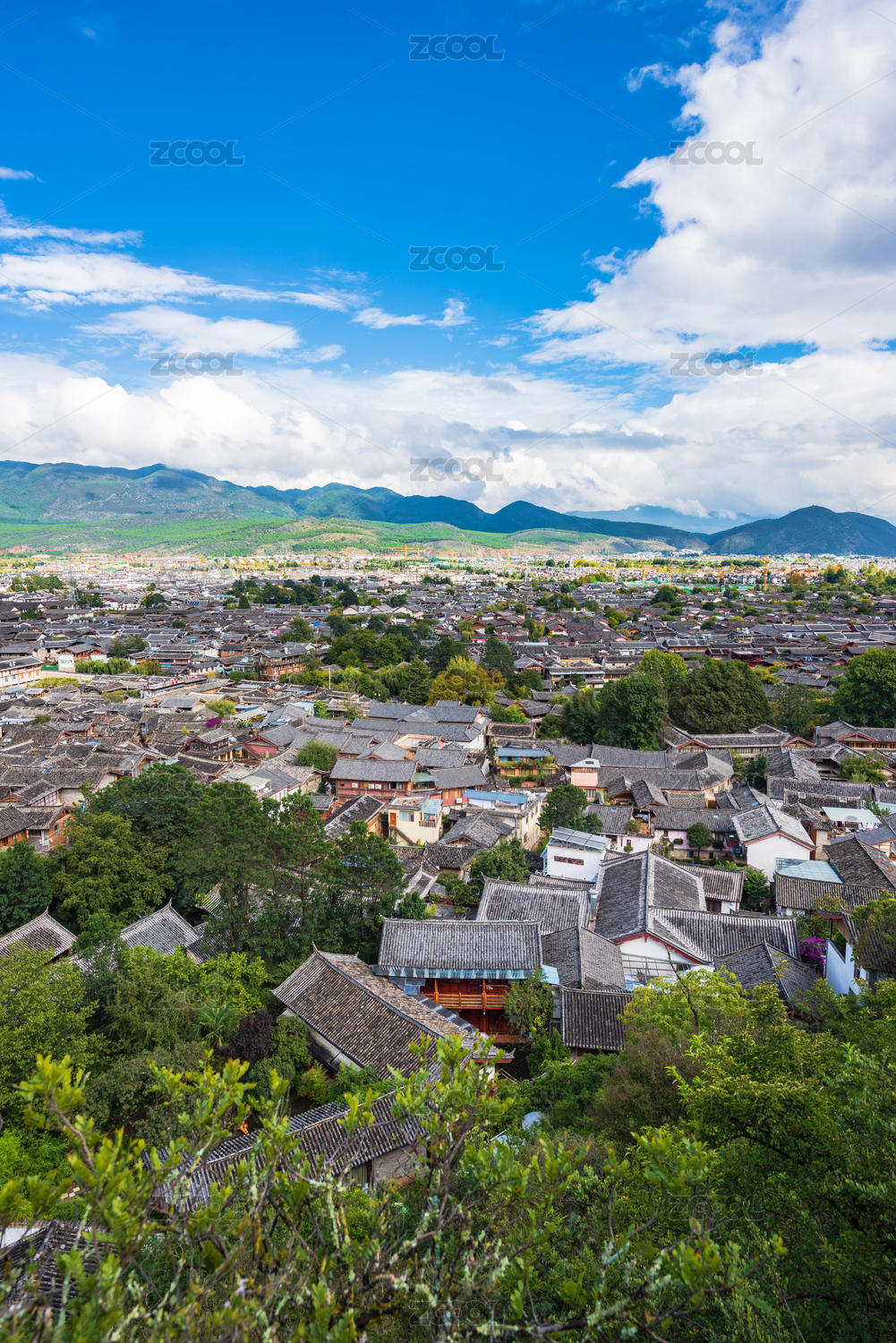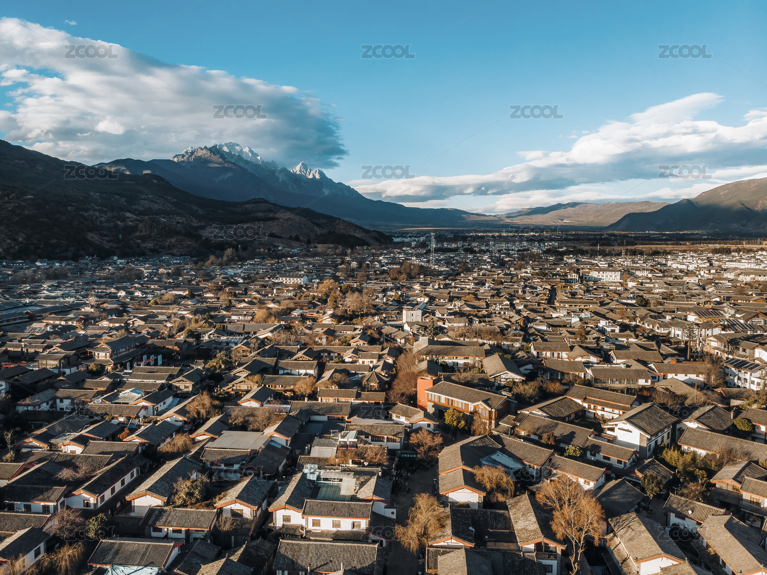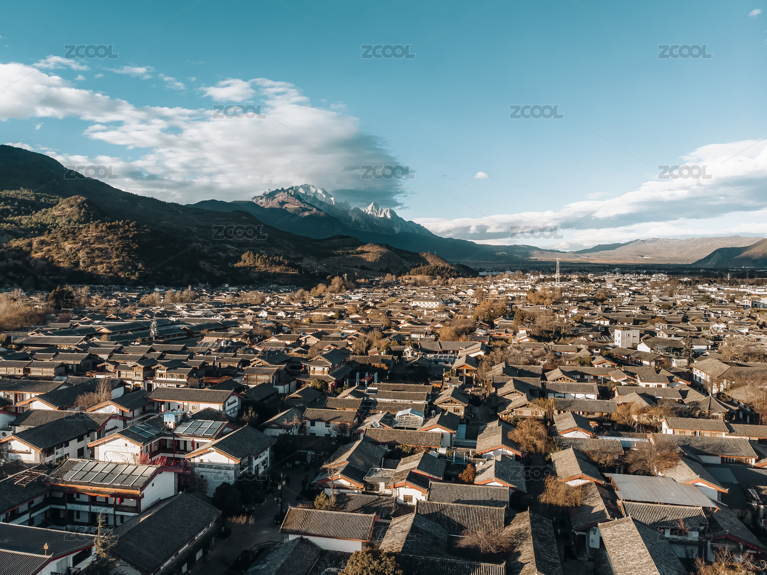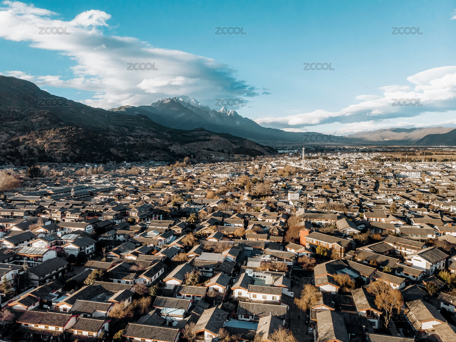 麗江束河古鎮(zhèn)和玉龍雪山藍(lán)天白云白晝晴天