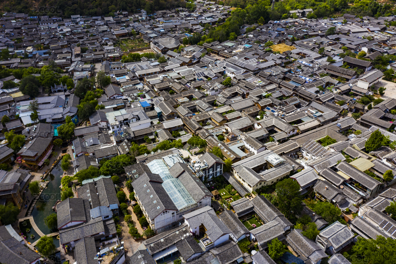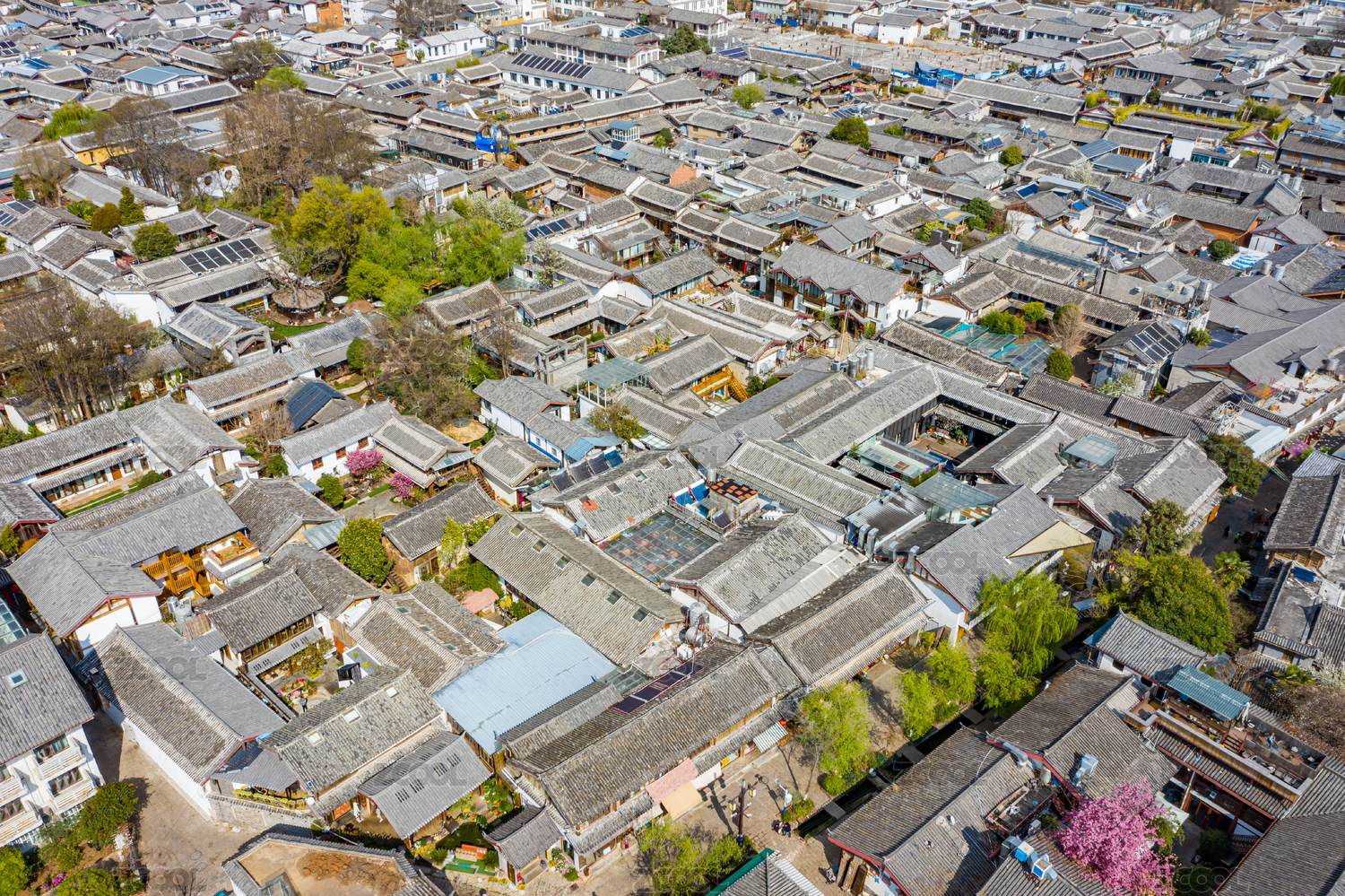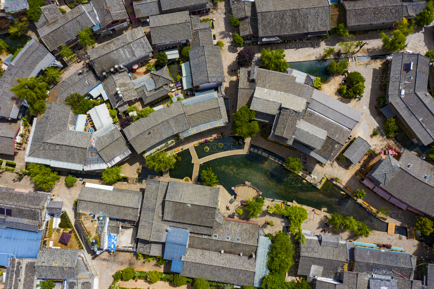 航拍中國(guó)云南麗江束河古鎮(zhèn)