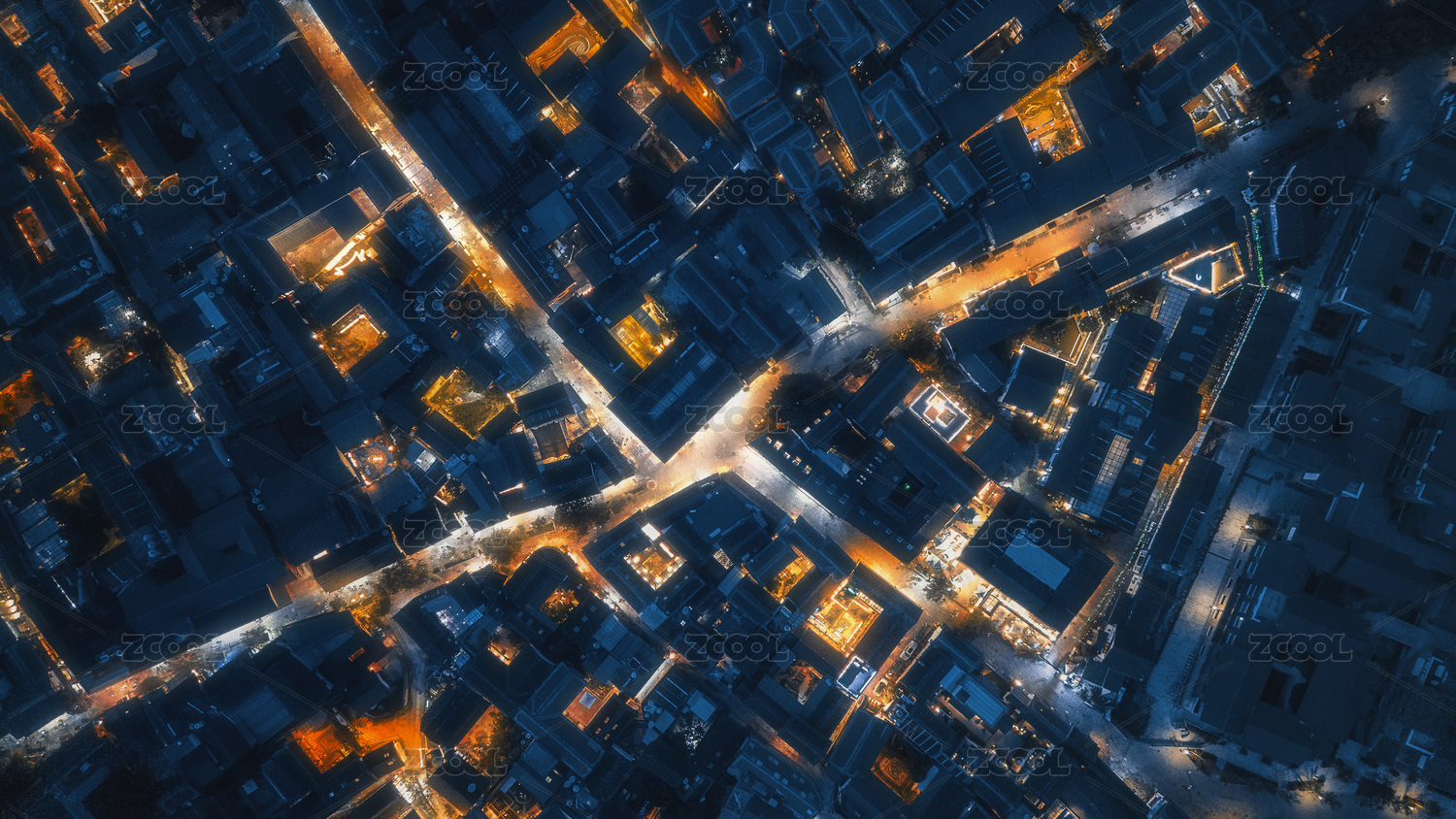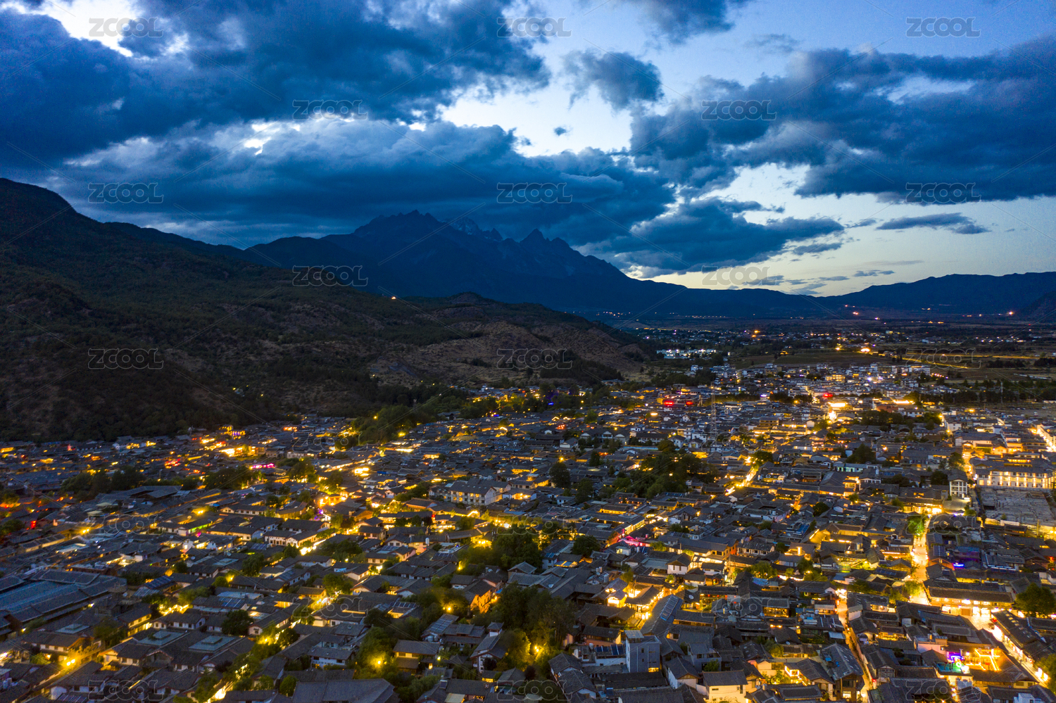 航拍夜間的云南麗江市束河古鎮(zhèn)