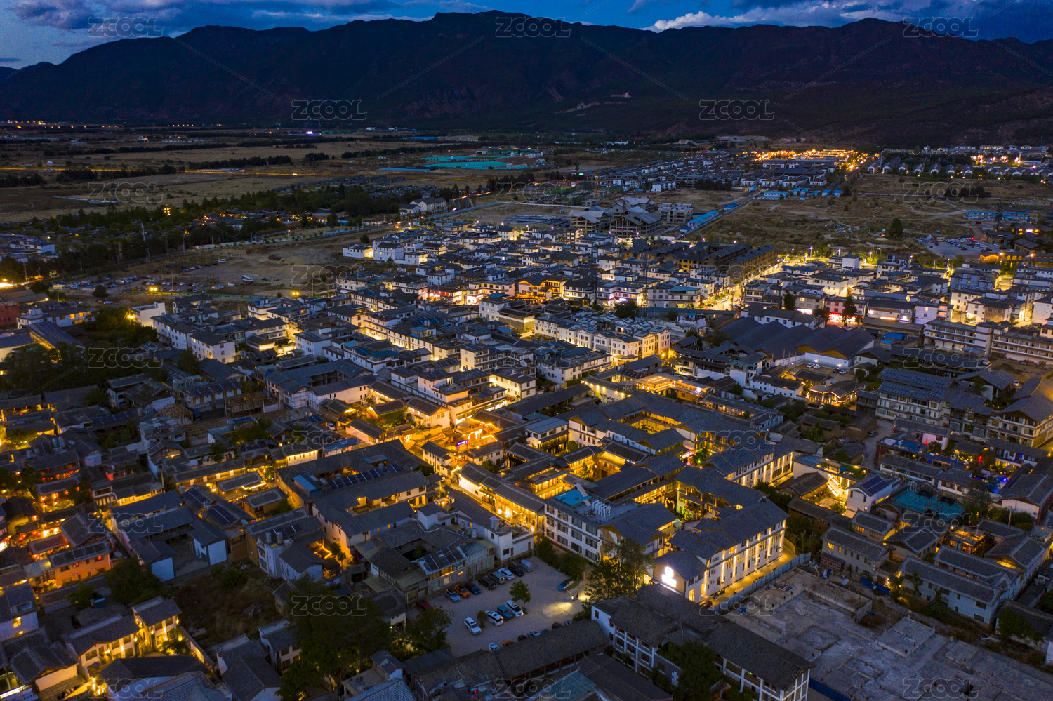 航拍中國(guó)云南麗江束河古鎮(zhèn)夜景
