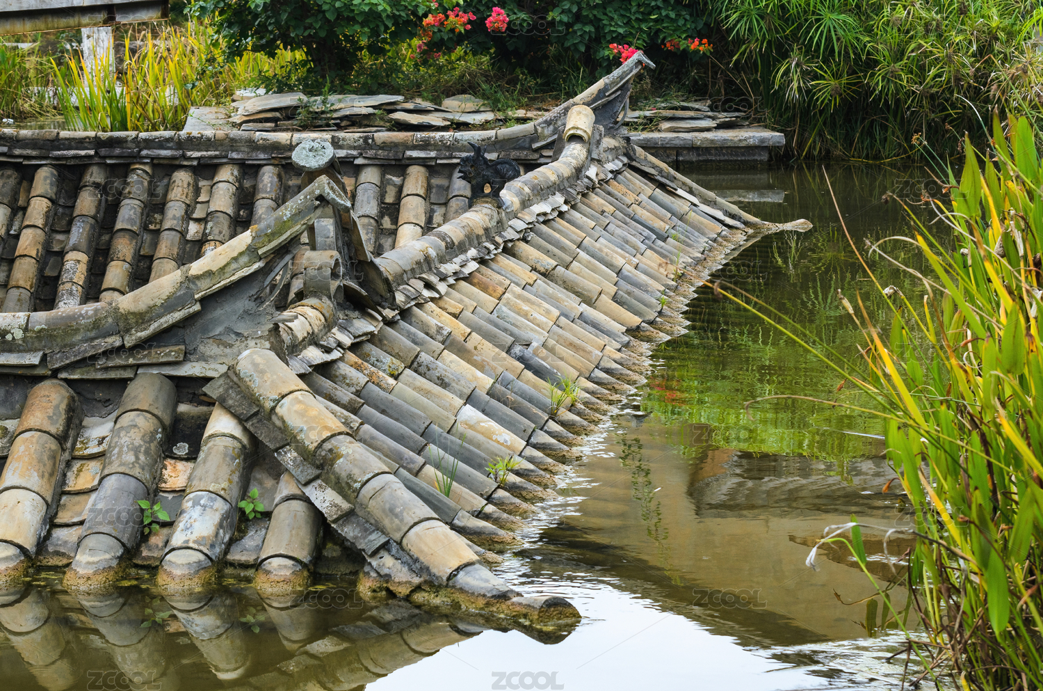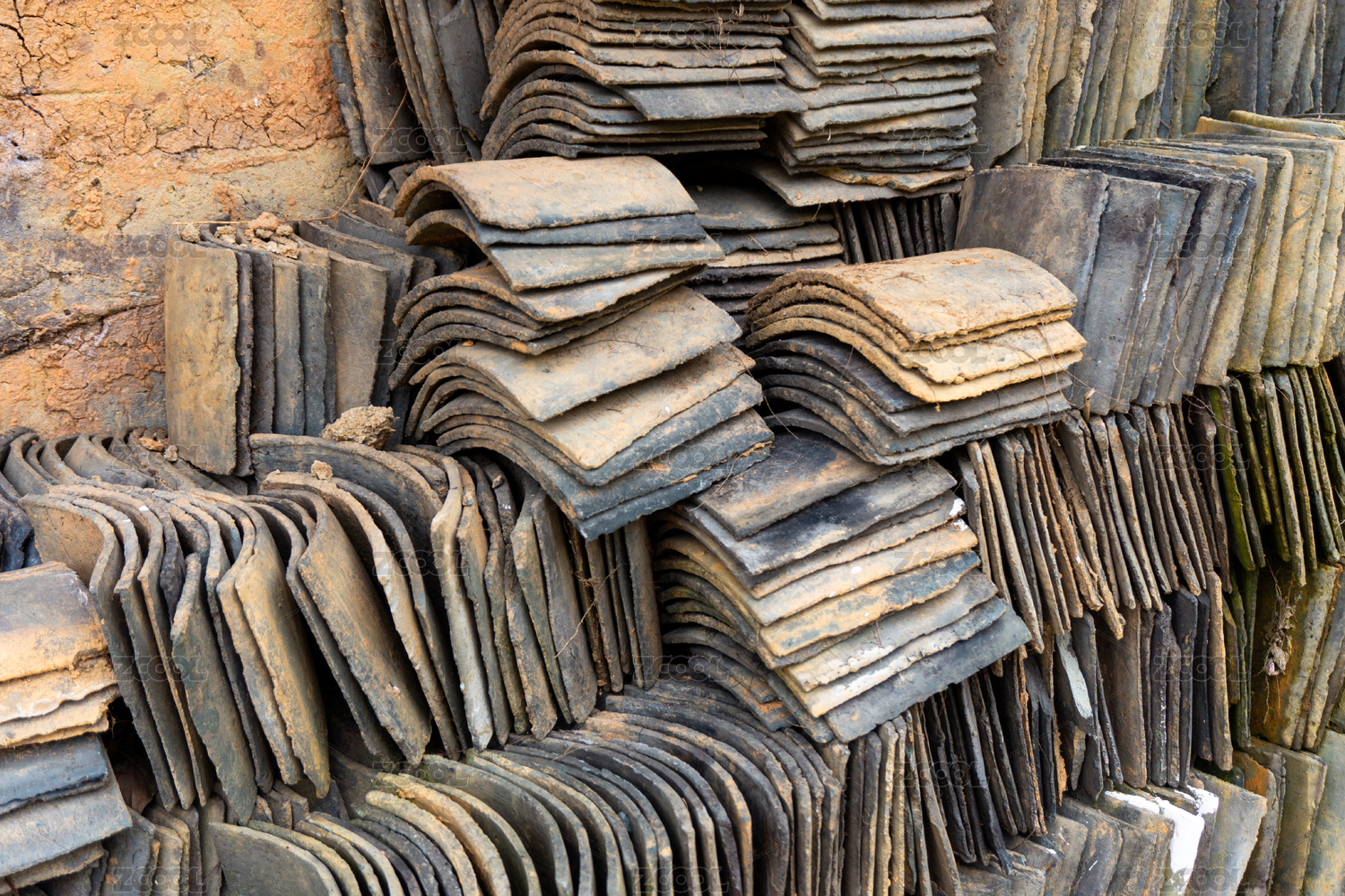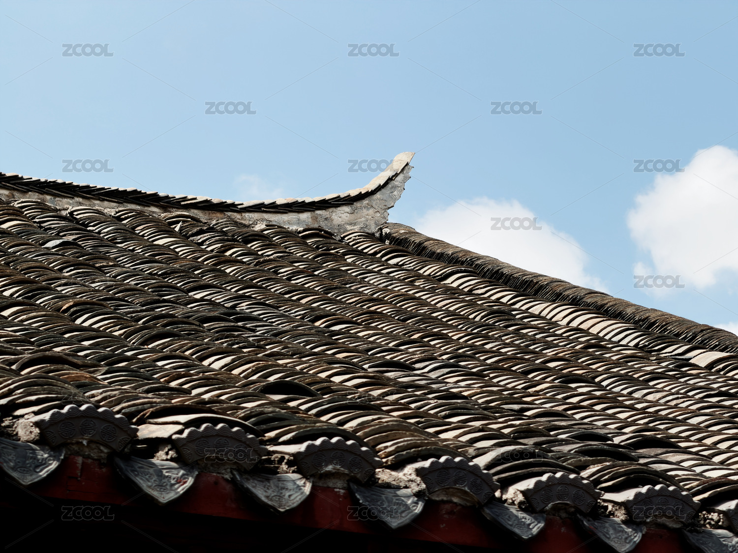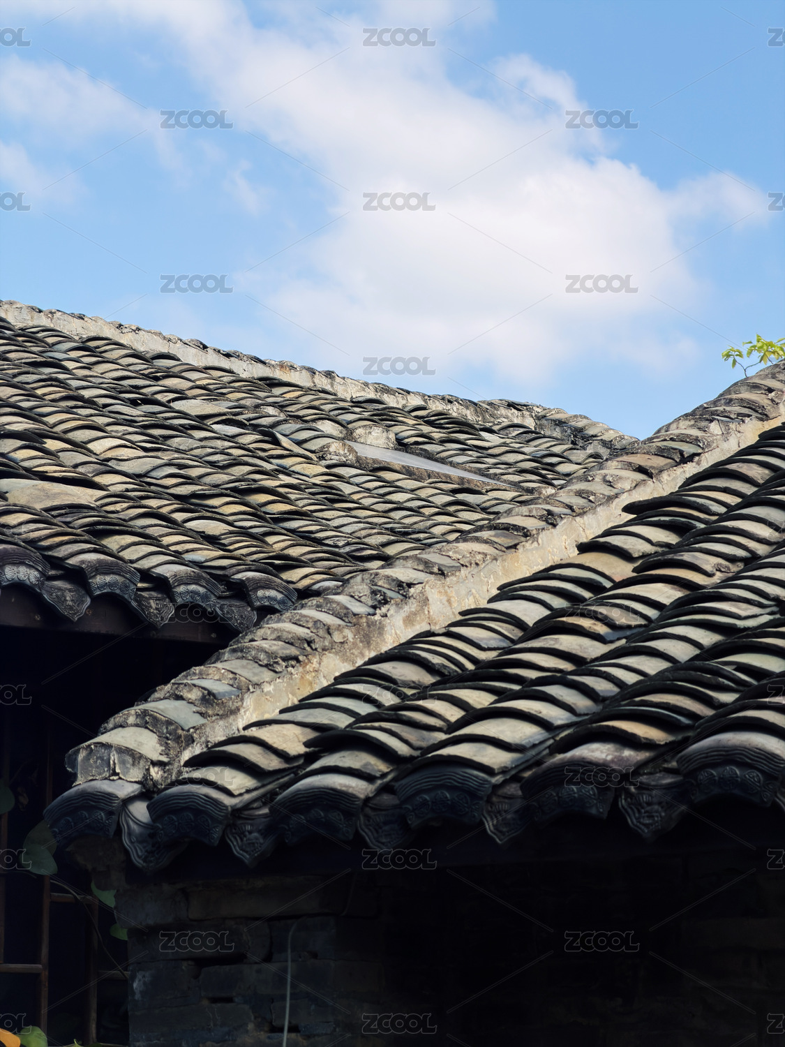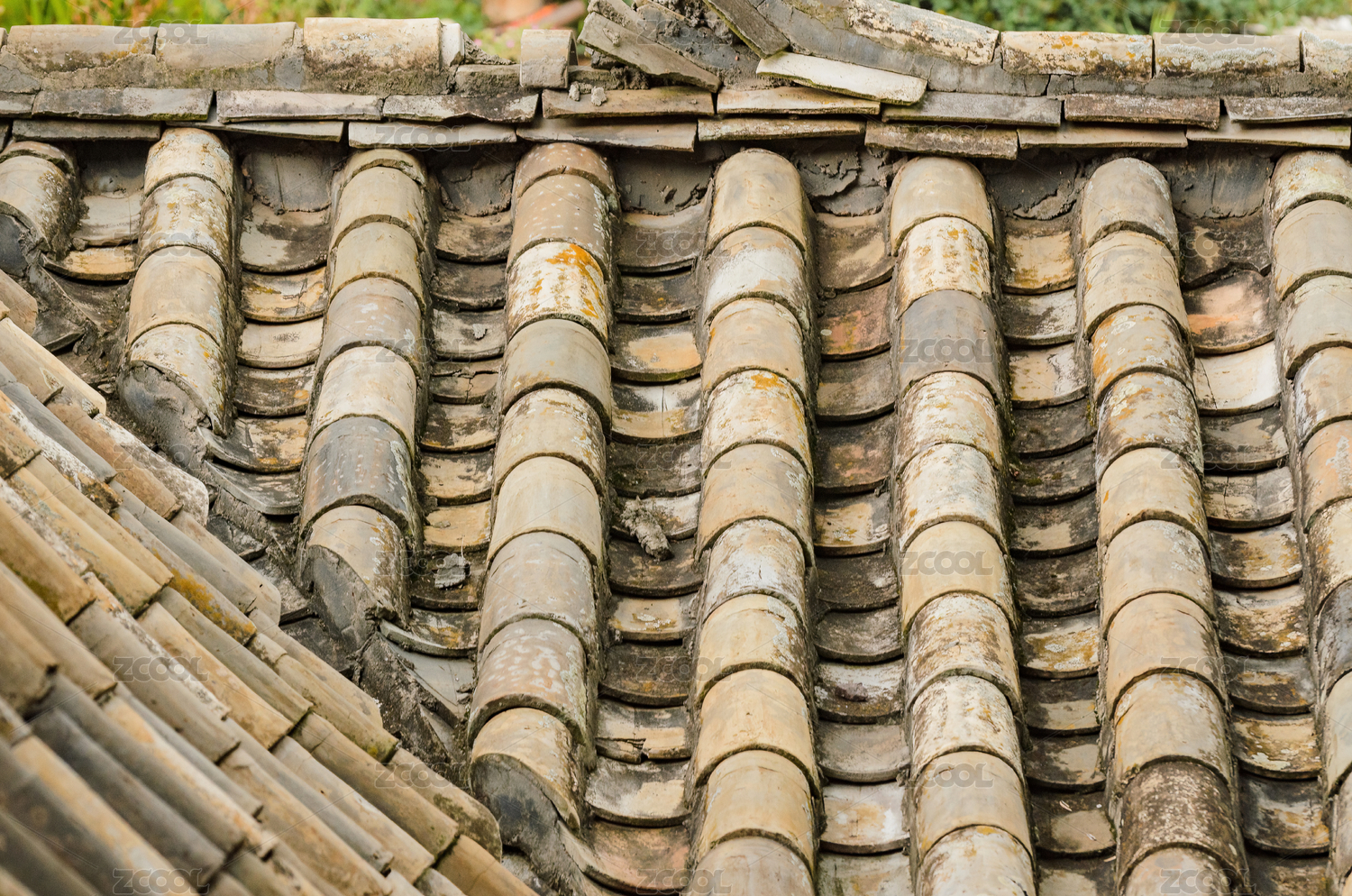 北方山區(qū)古建筑屋頂瓦房瓦片