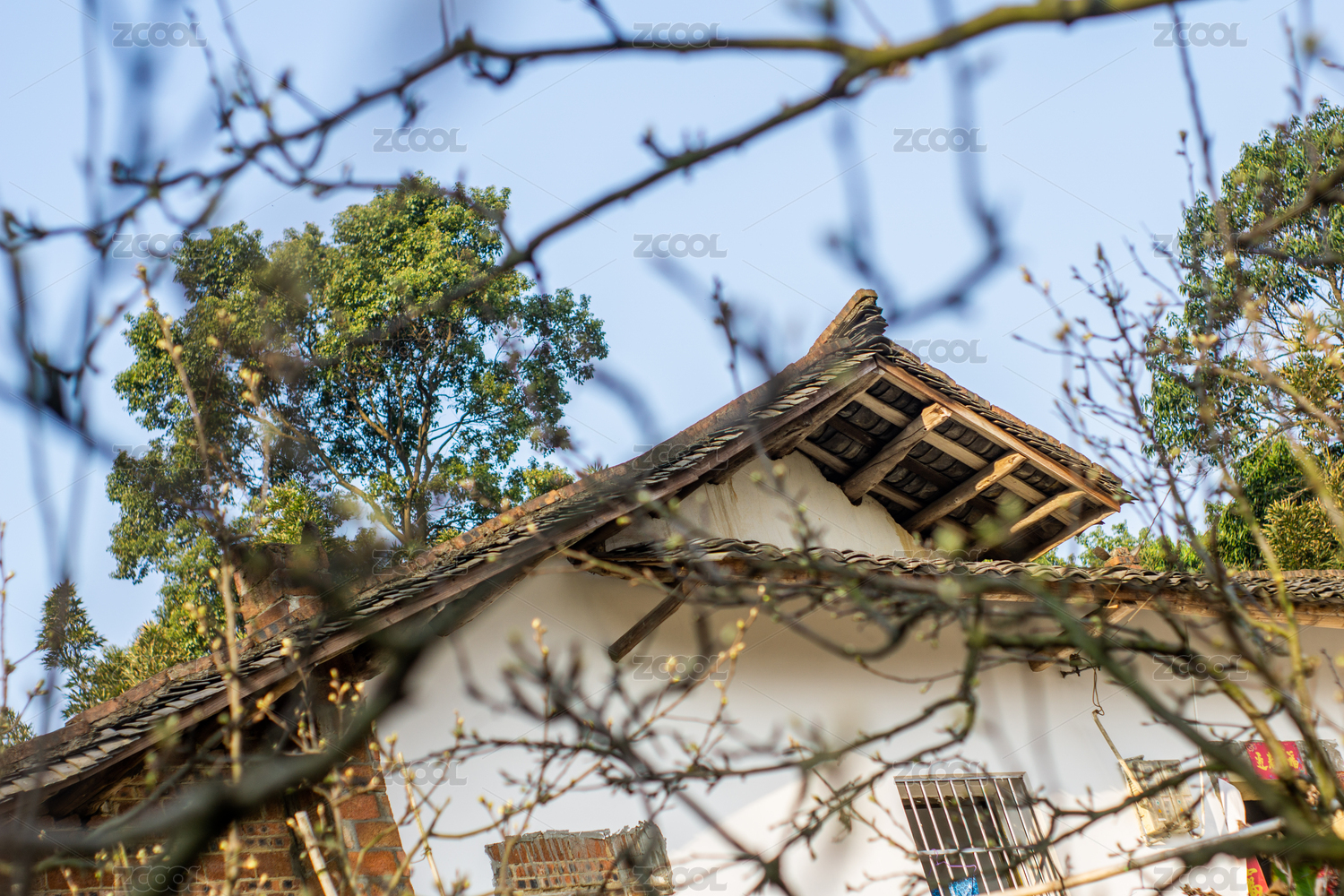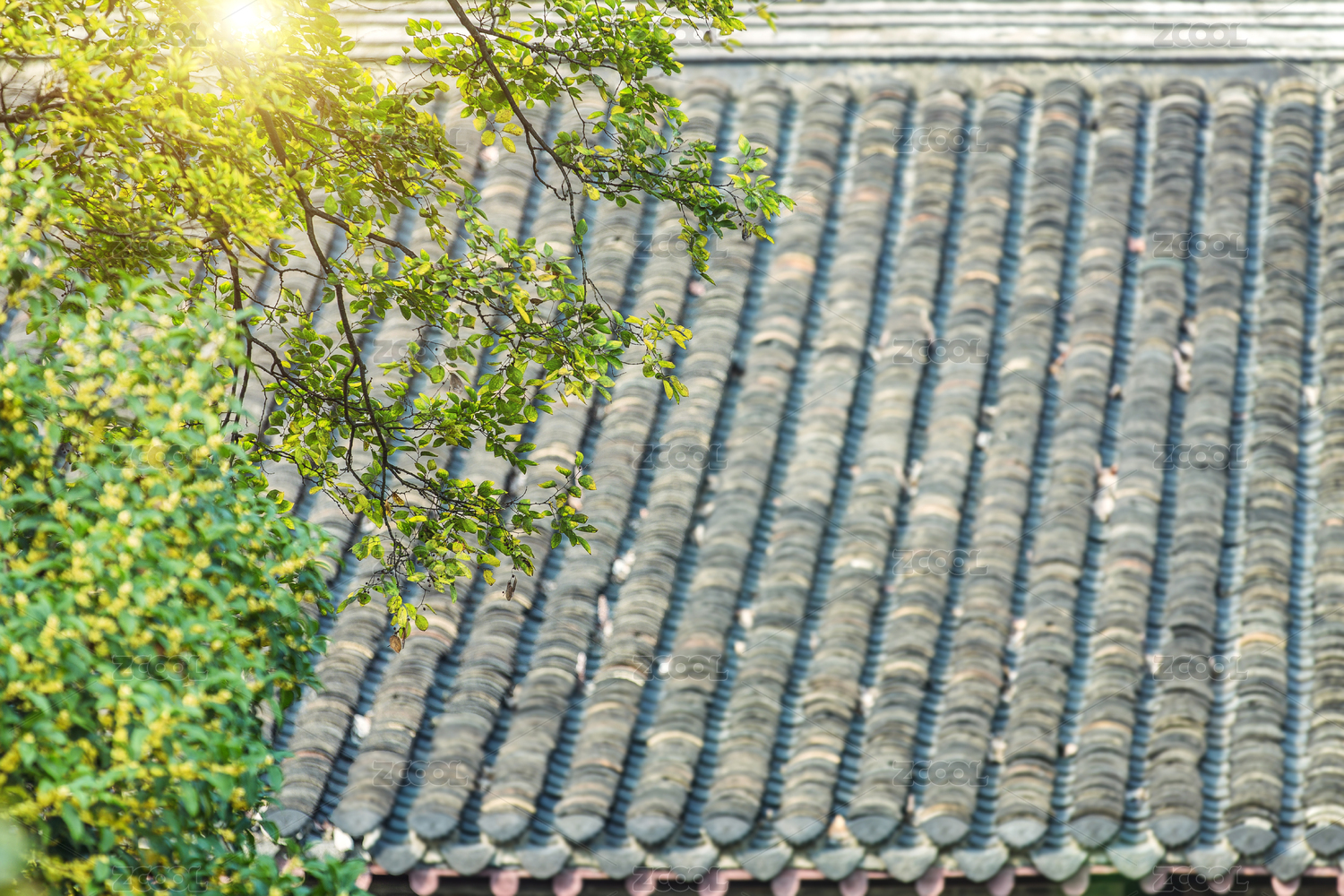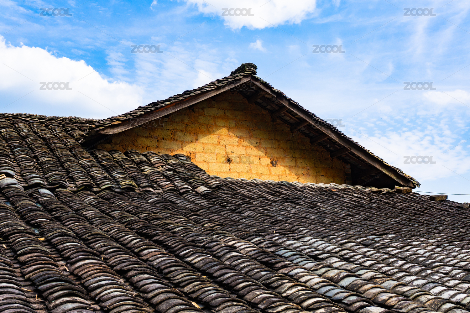 中國(guó)傳統(tǒng)農(nóng)村瓦房屋頂特寫