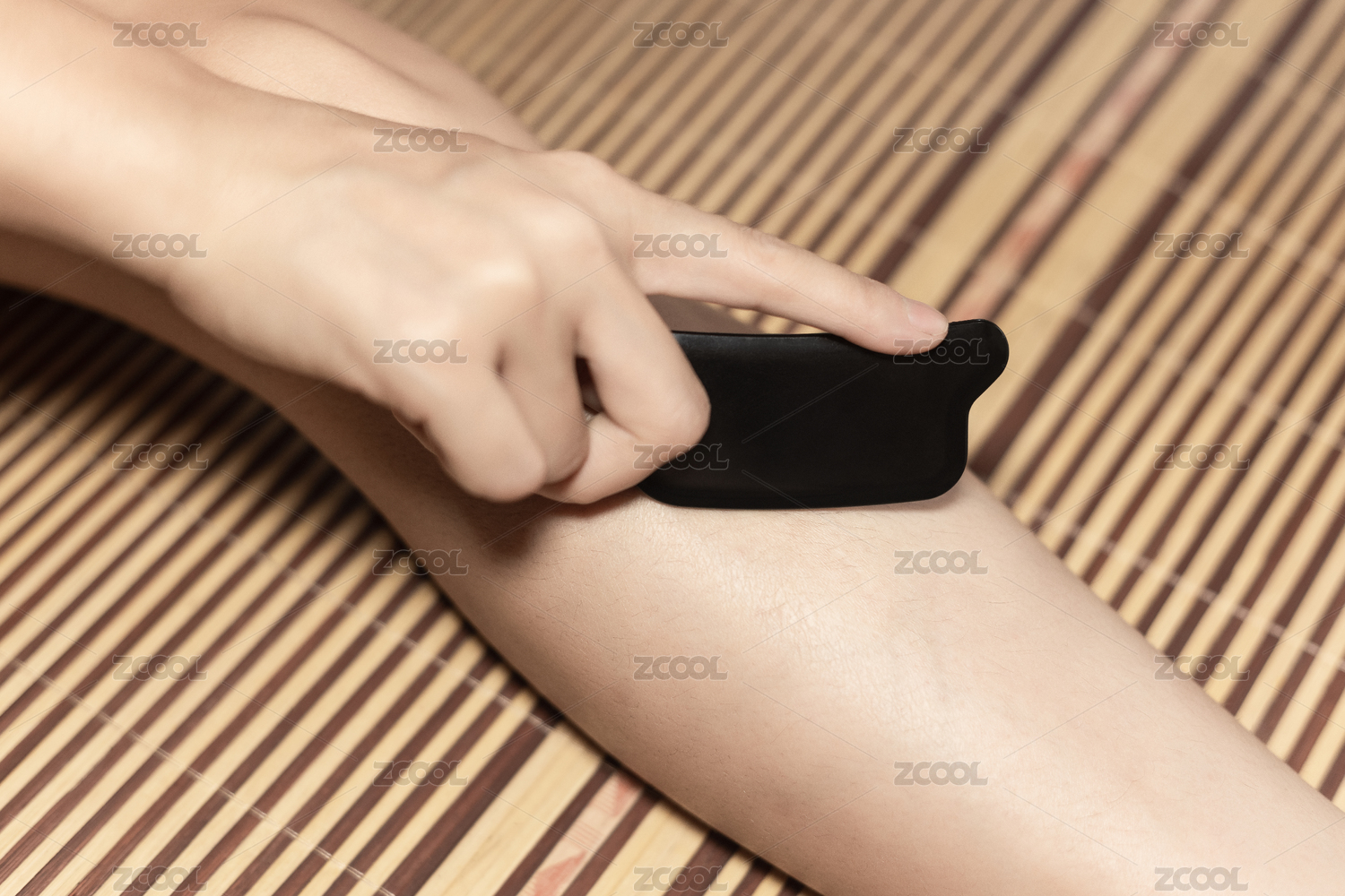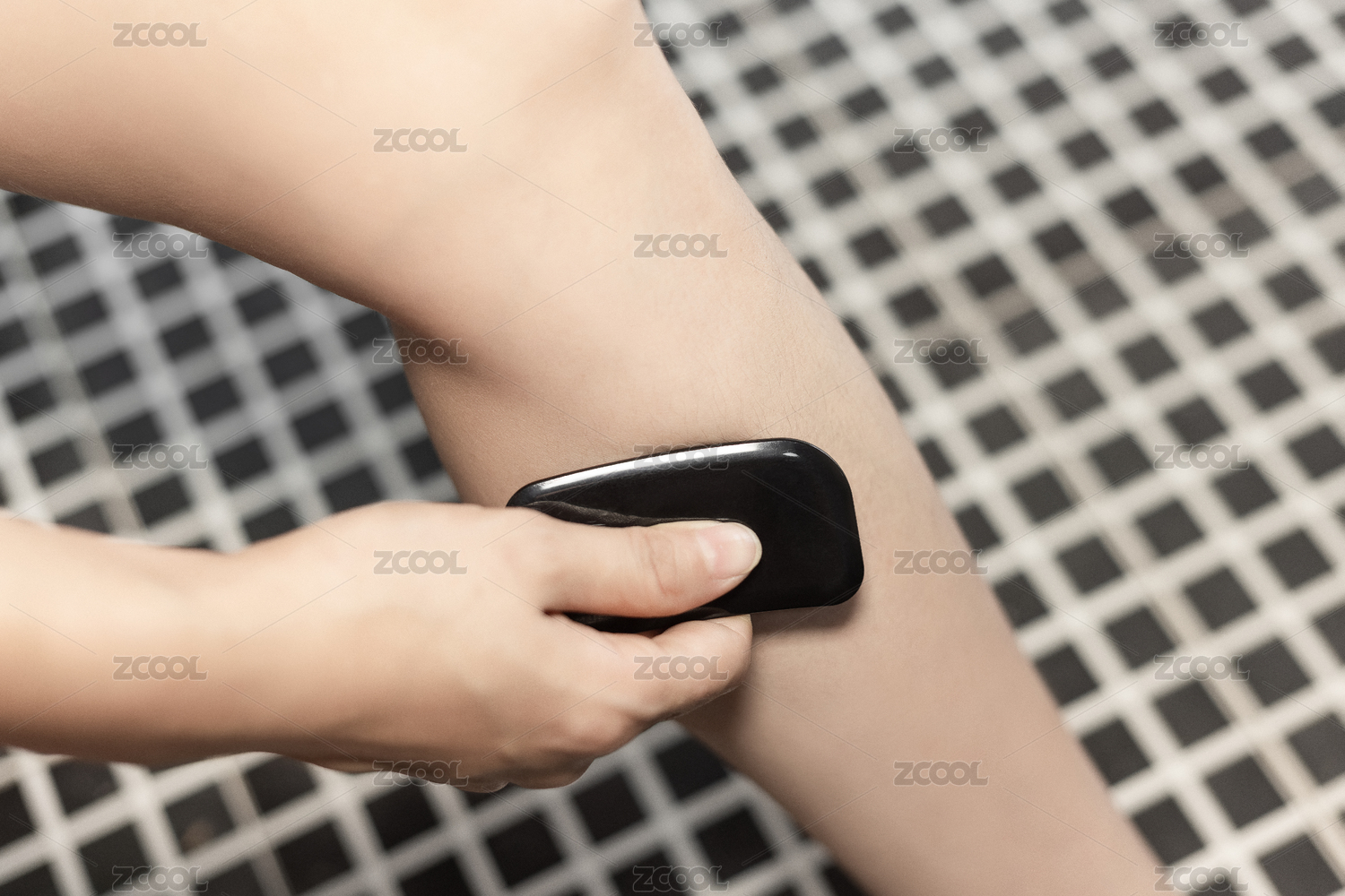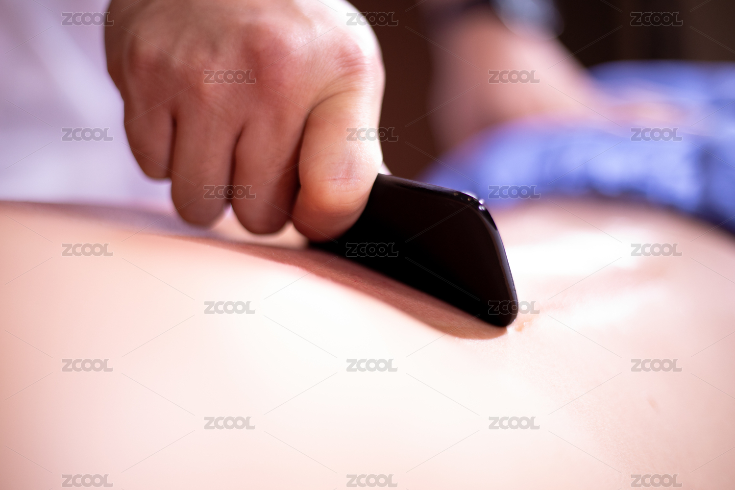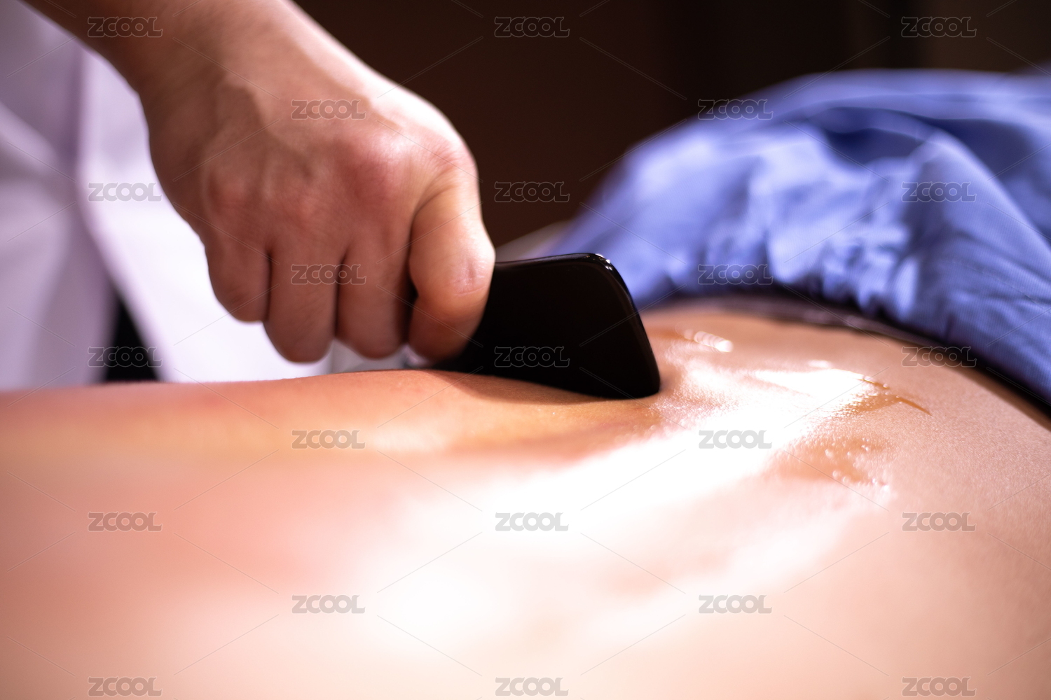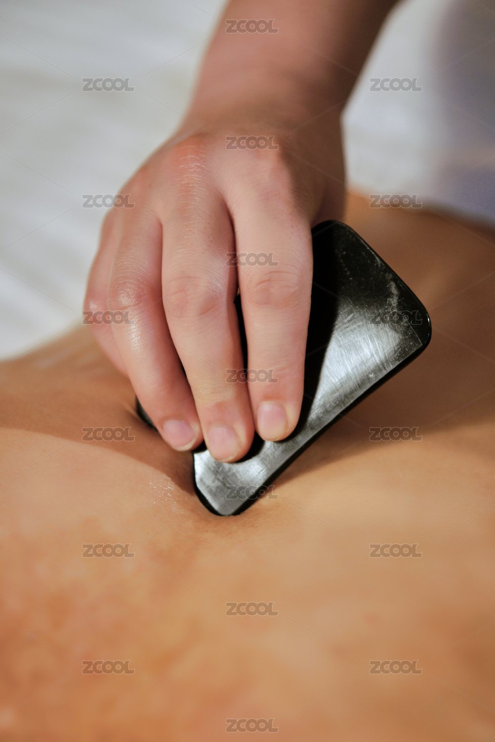 技師的砭石刮痧板正向刮痧