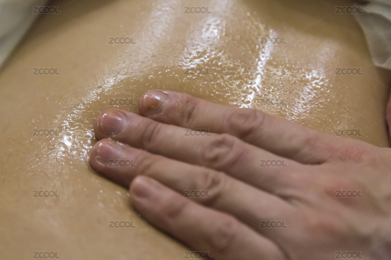 中華傳統(tǒng)醫(yī)學(xué)刮痧前涂滿潤滑油脂的背部