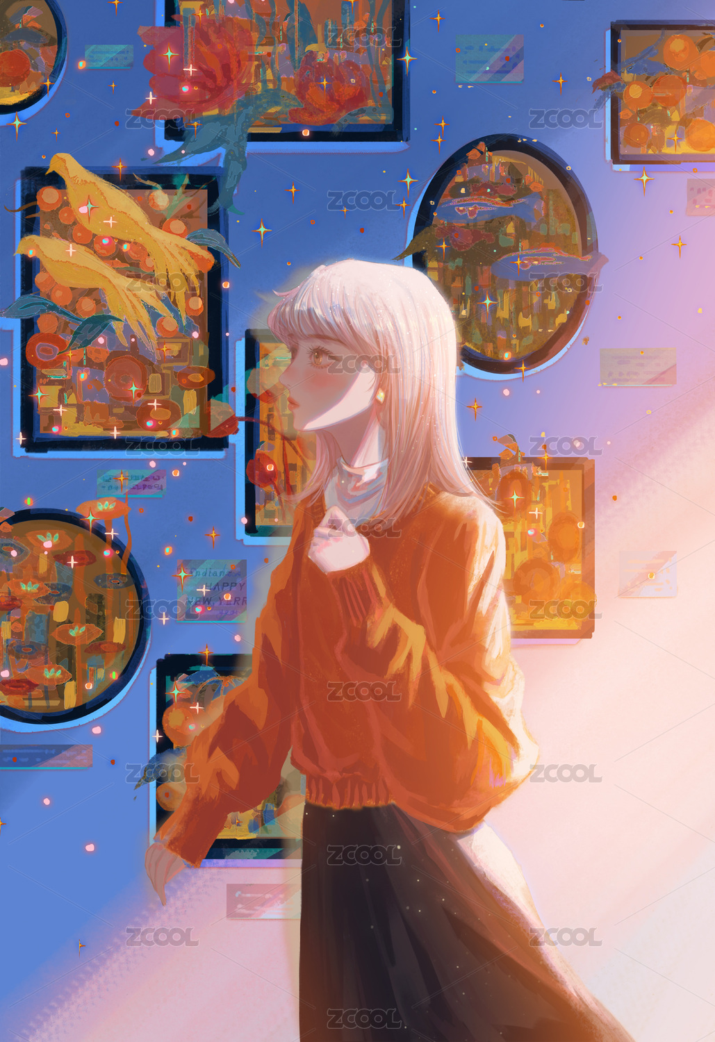少女畫展中漫步