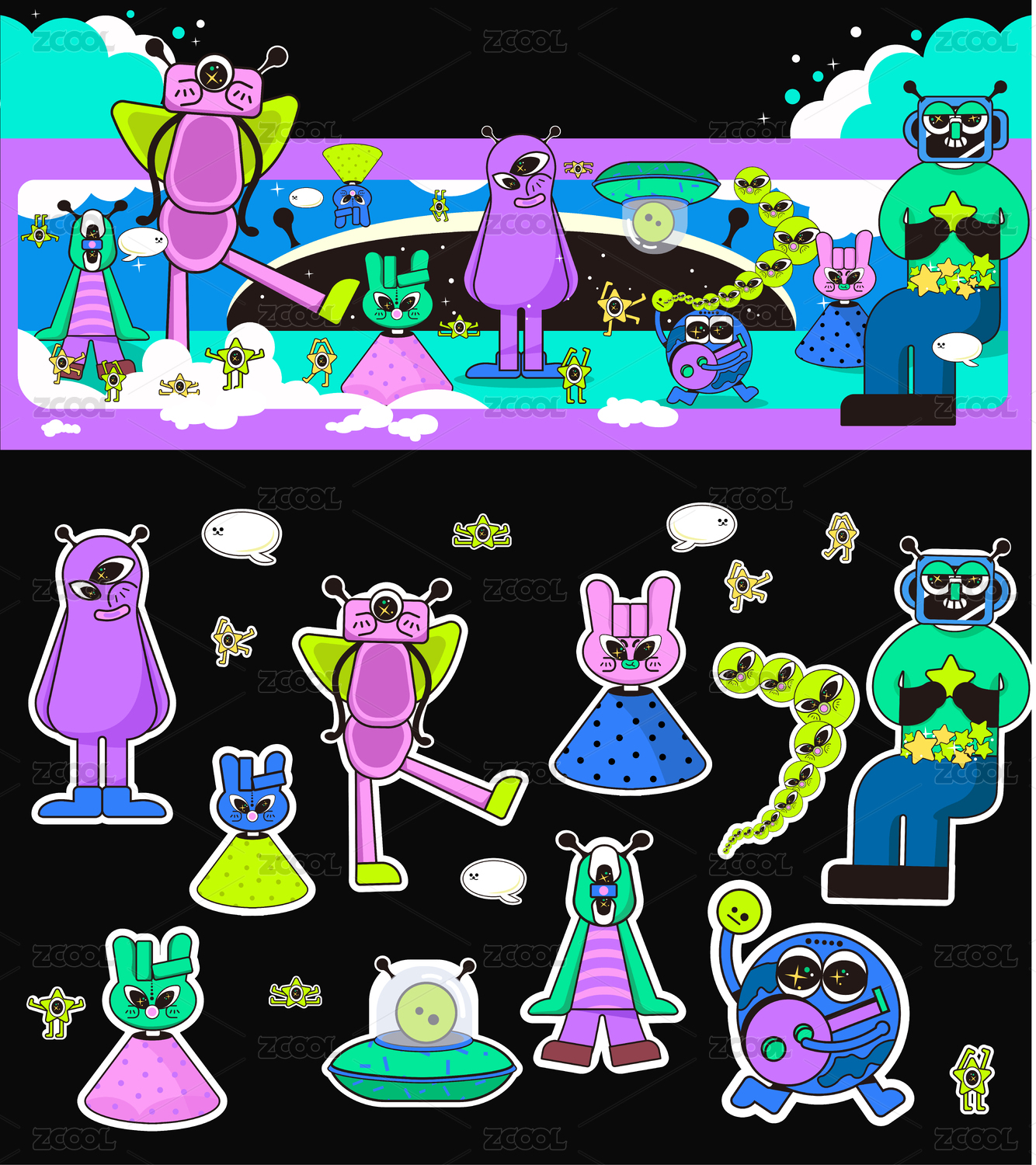 太空上的小怪獸們?cè)诼?/div>