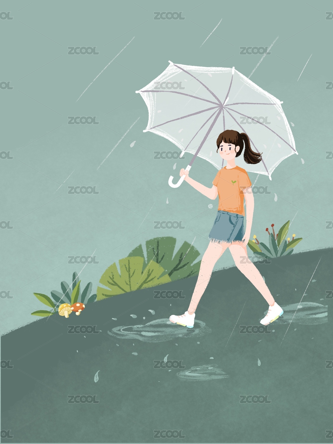 雨中散步的女孩