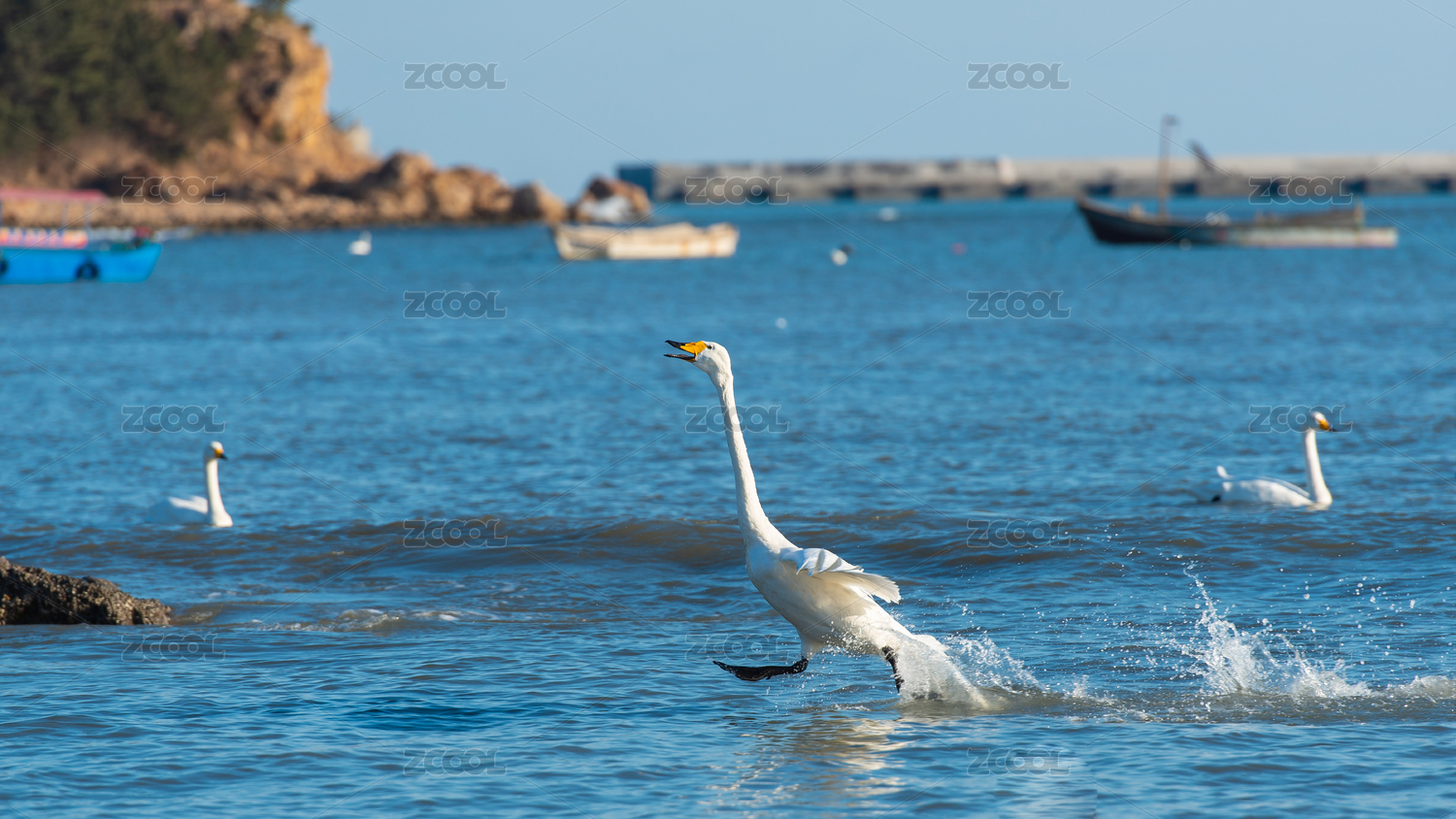 一只大天鵝在海面漫步