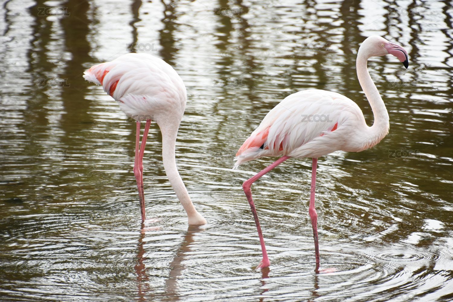 兩只在水中漫步的火烈鳥