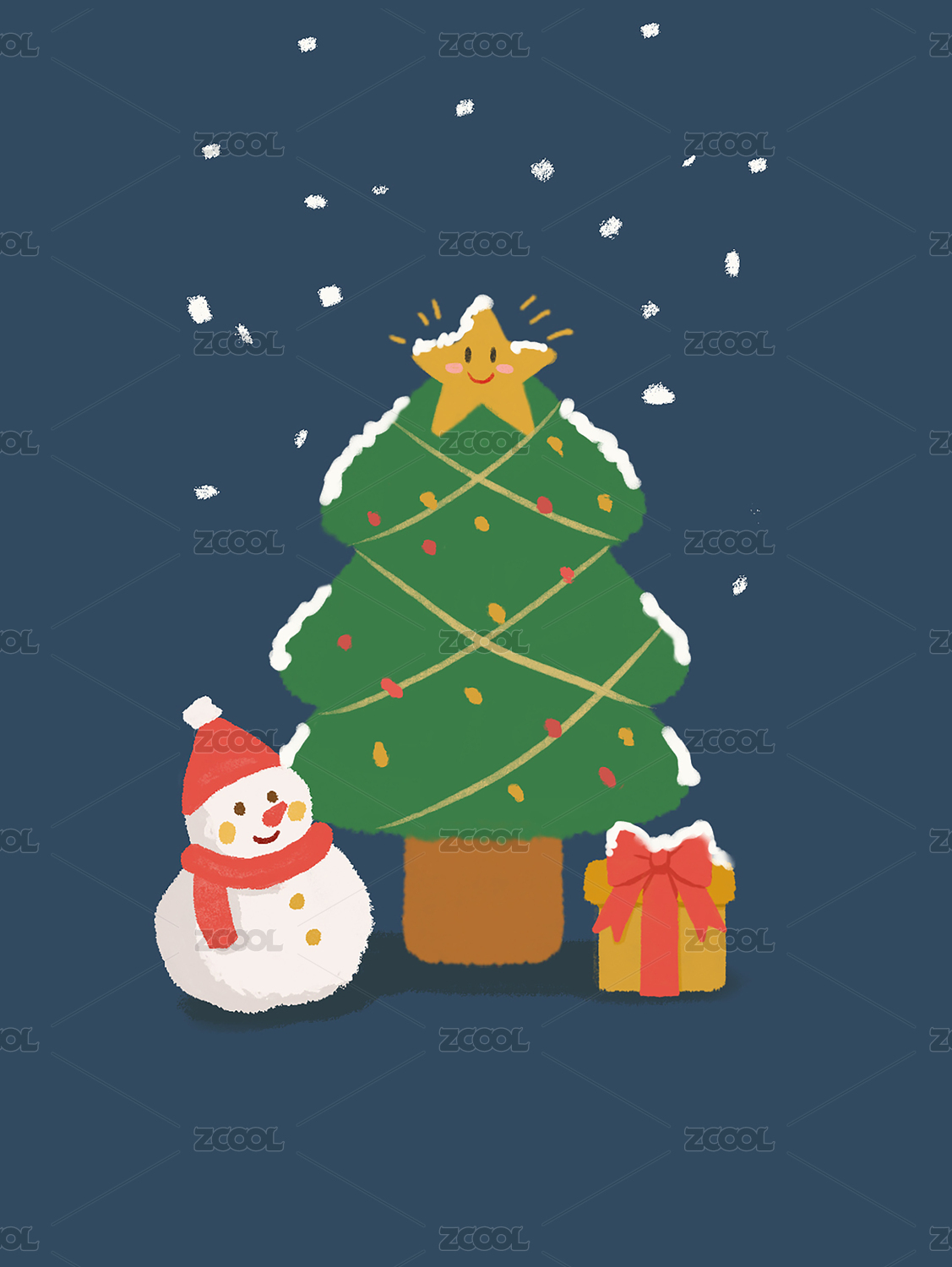 平安夜萬(wàn)圣節(jié)雪人禮物壁紙扁平手繪插畫(huà)