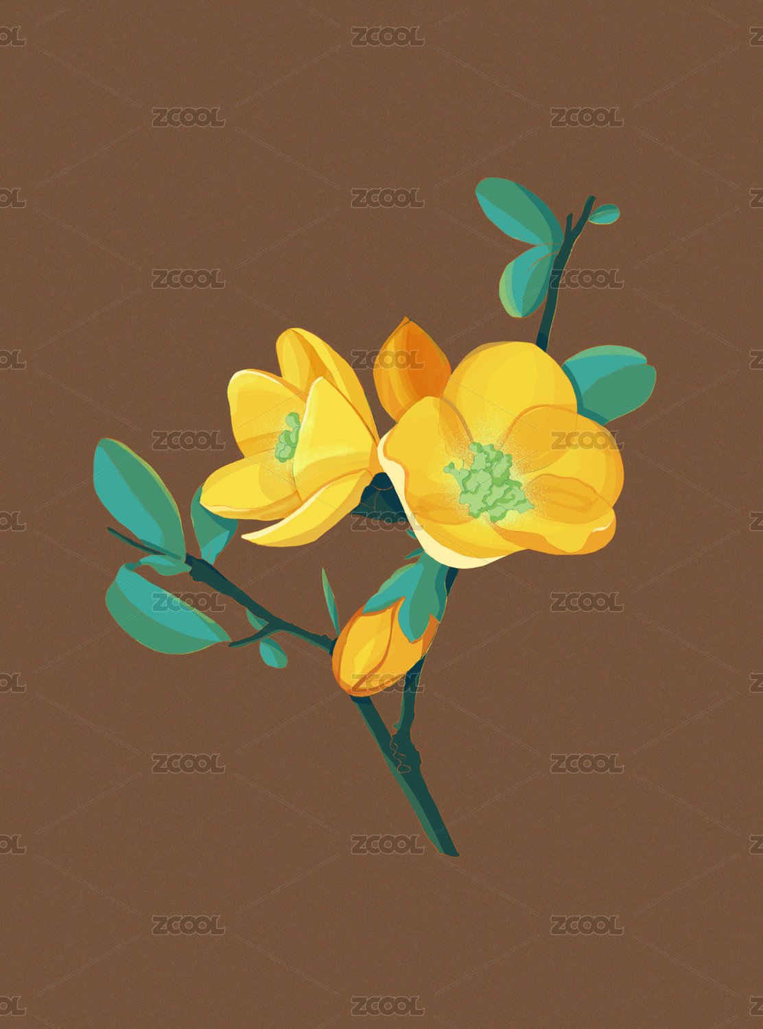 美麗復(fù)古中國(guó)風(fēng)黃手繪花紅花芬芳清新文藝復(fù)古壁紙