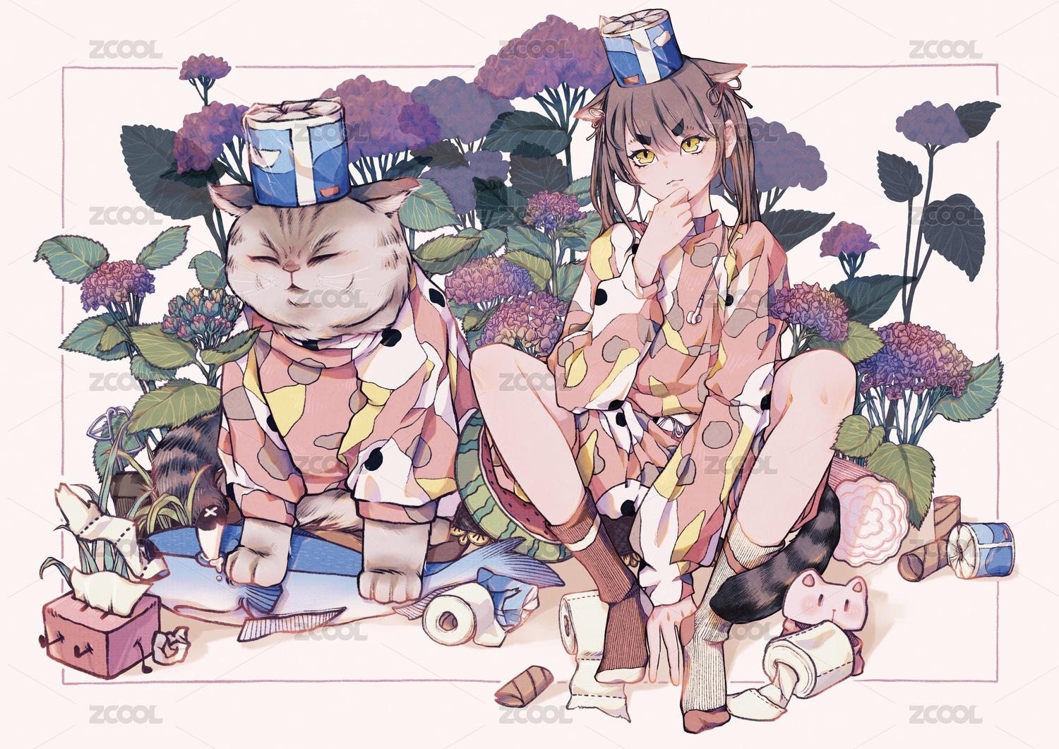 二次元貓少女手繪插畫(huà)壁紙