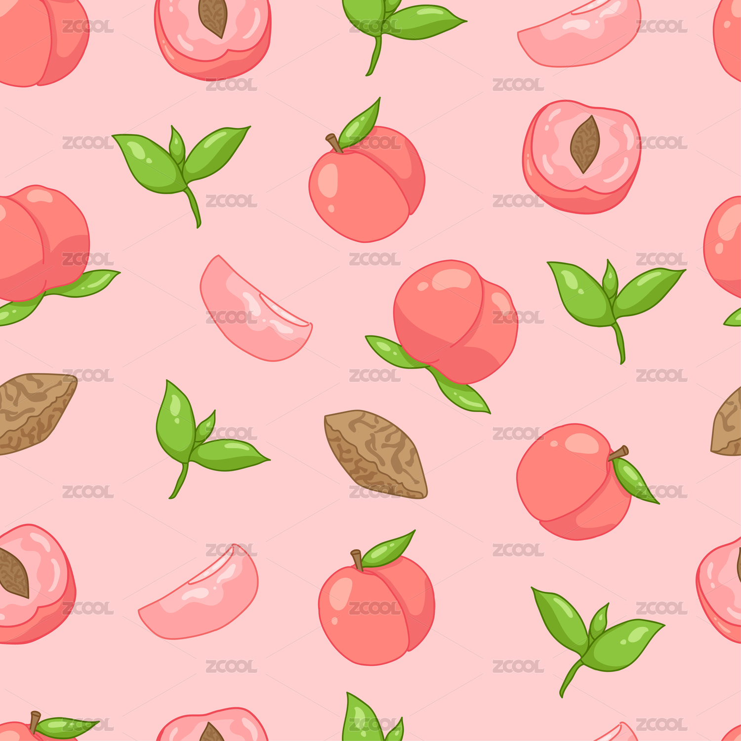 粉色桃子果肉系列手繪無(wú)縫插畫(huà)壁紙背景