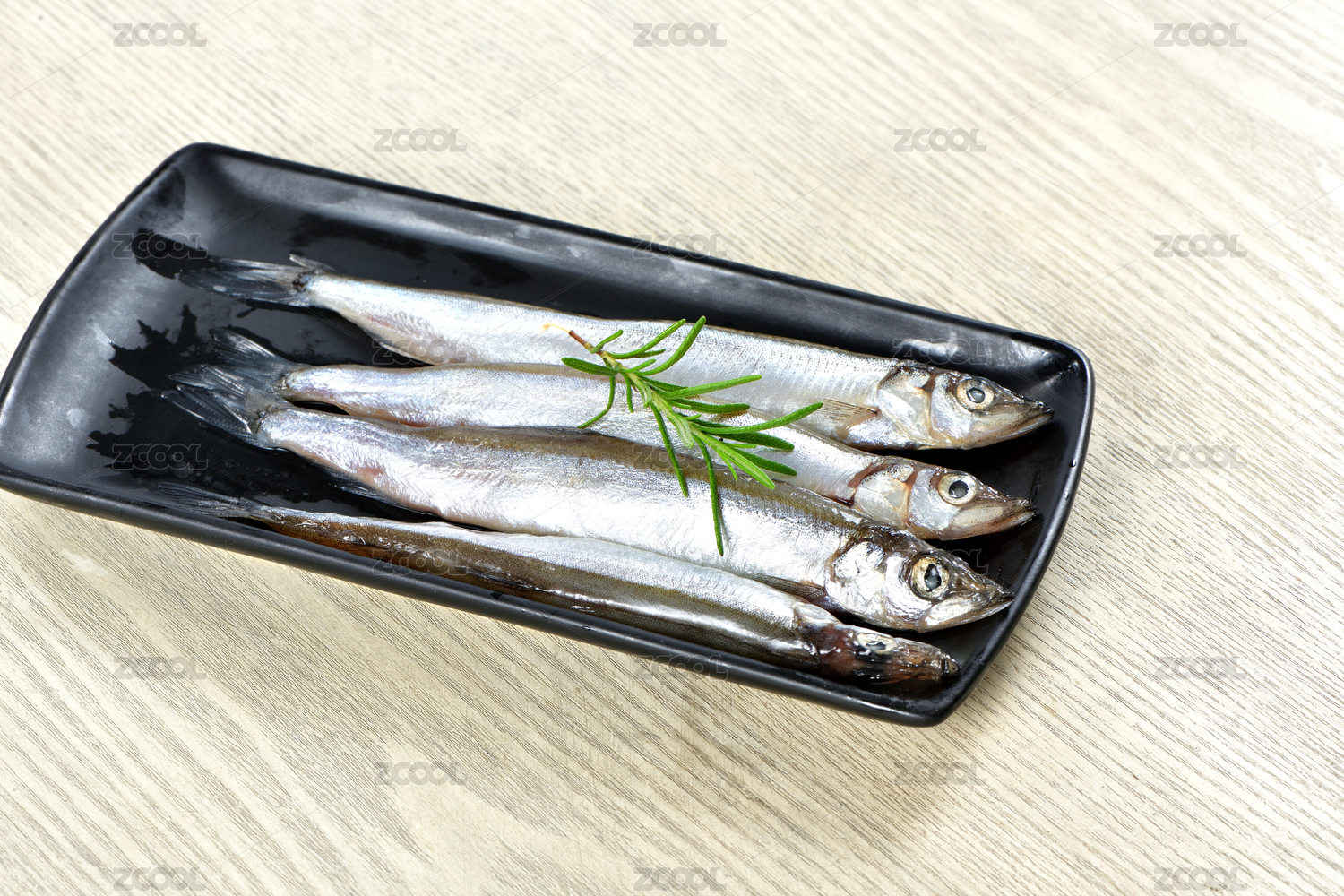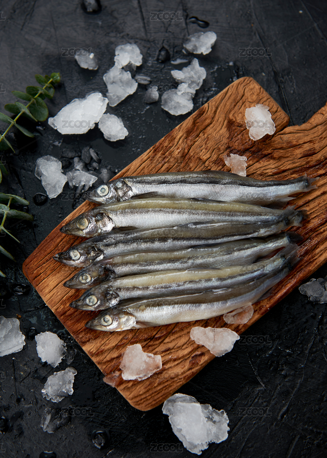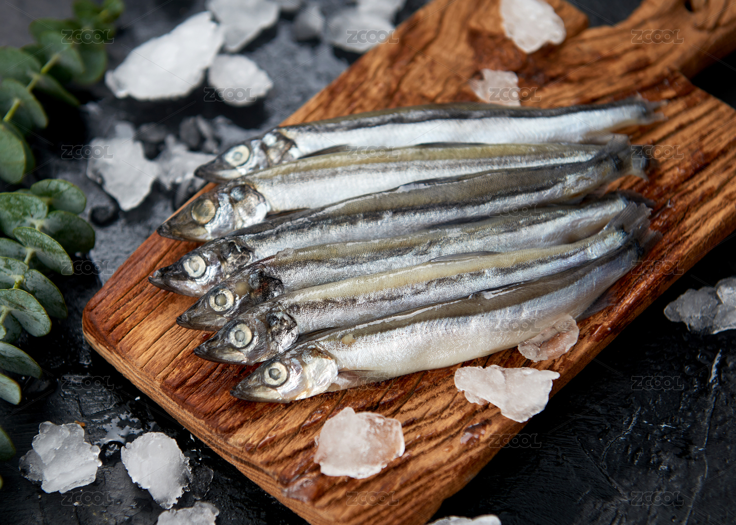 餐具上擺放的冰鮮多春魚