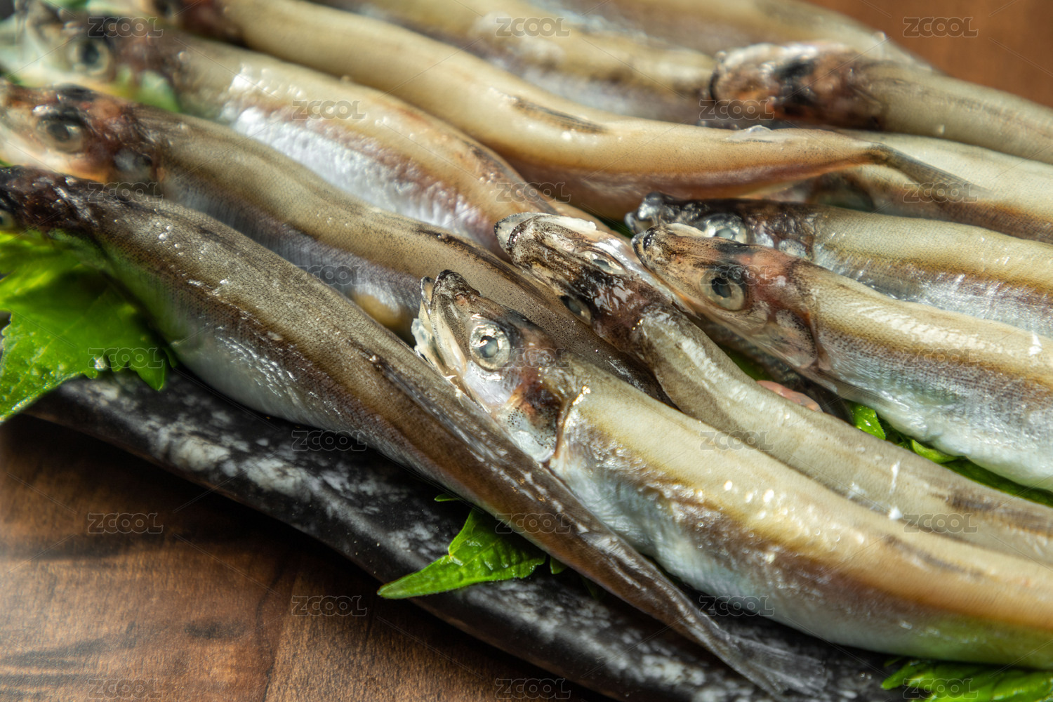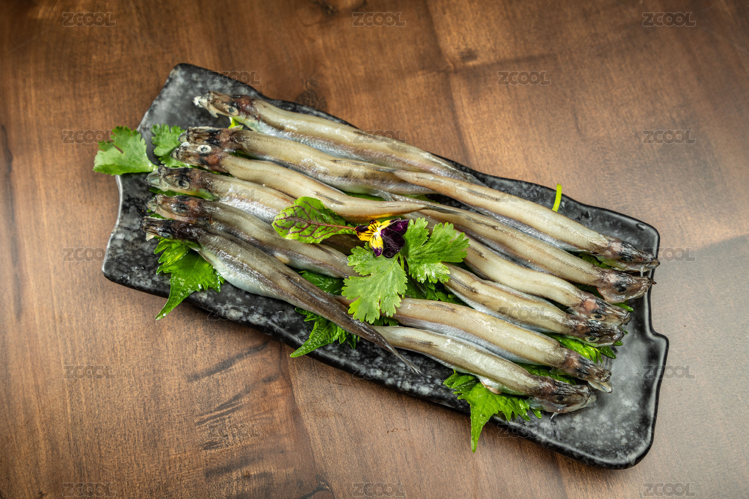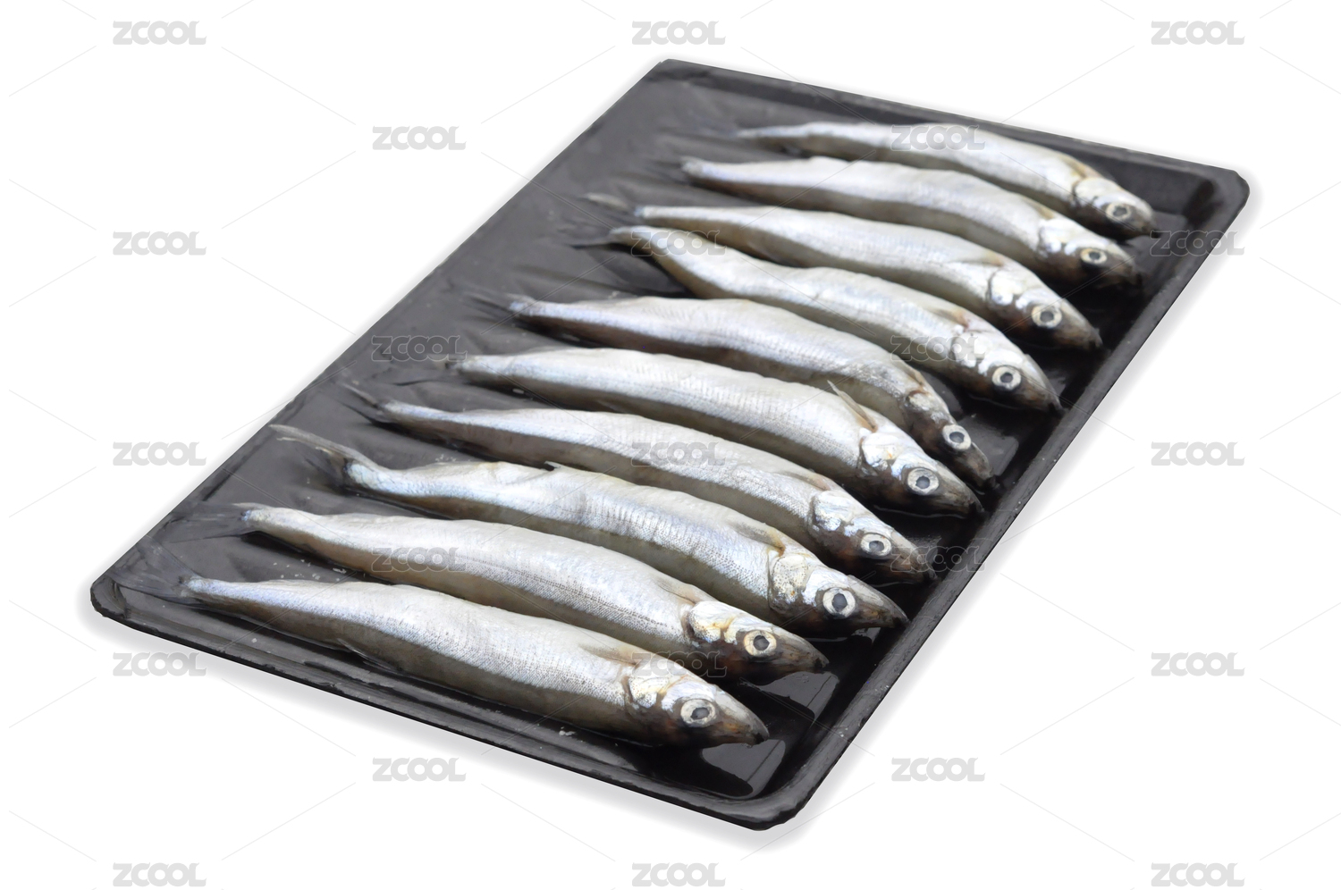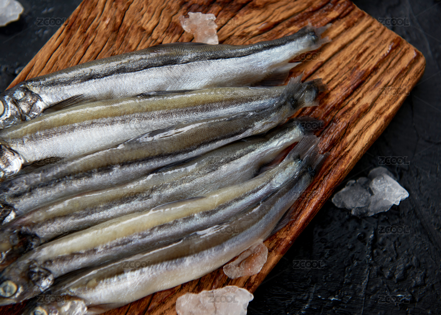 餐具上擺放的冰鮮多春魚