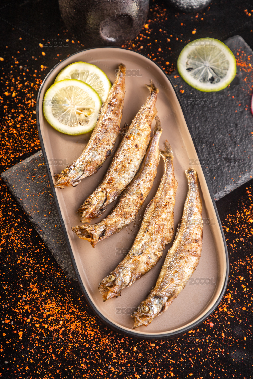 餐盤上的香煎多春魚