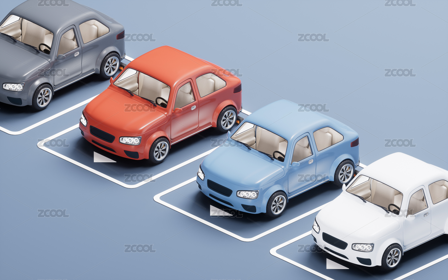 小汽車停車場(chǎng)三維渲染