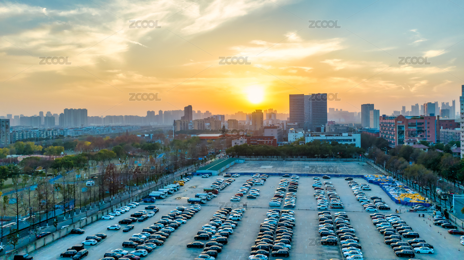 武漢江漢區(qū)常青公園旁的停車場(chǎng)