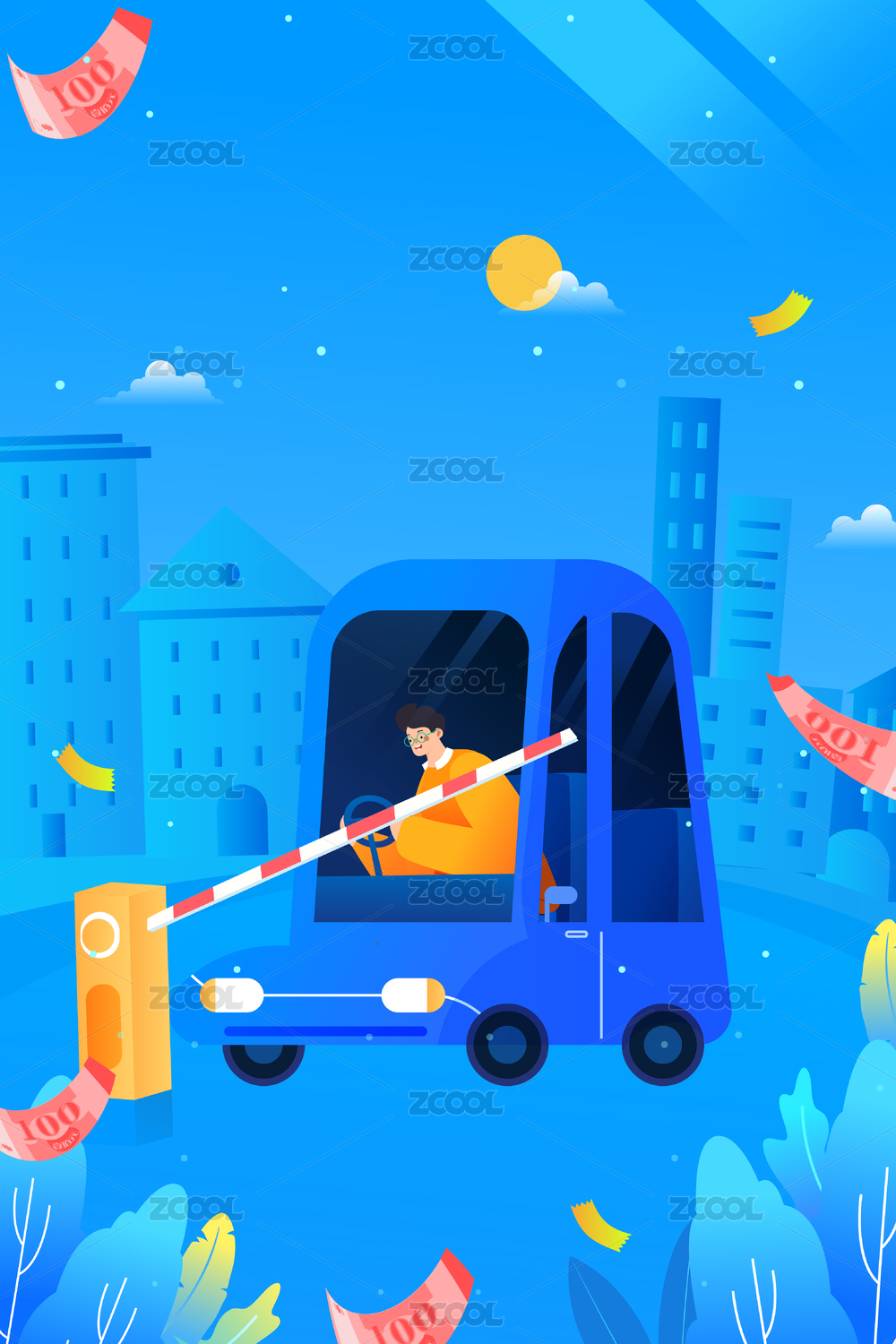 卡通汽車出行禮包活動(dòng)矢量背景插畫