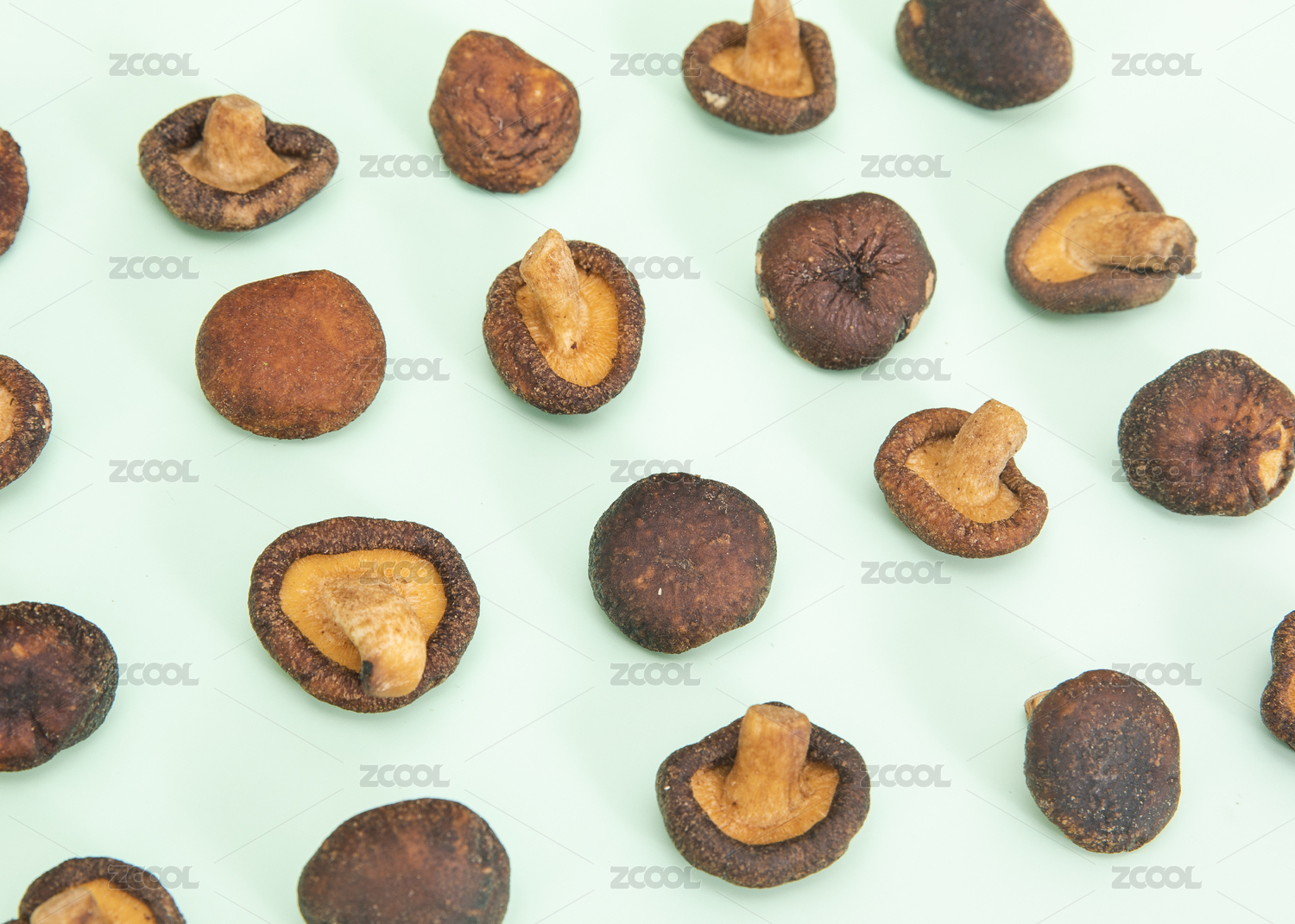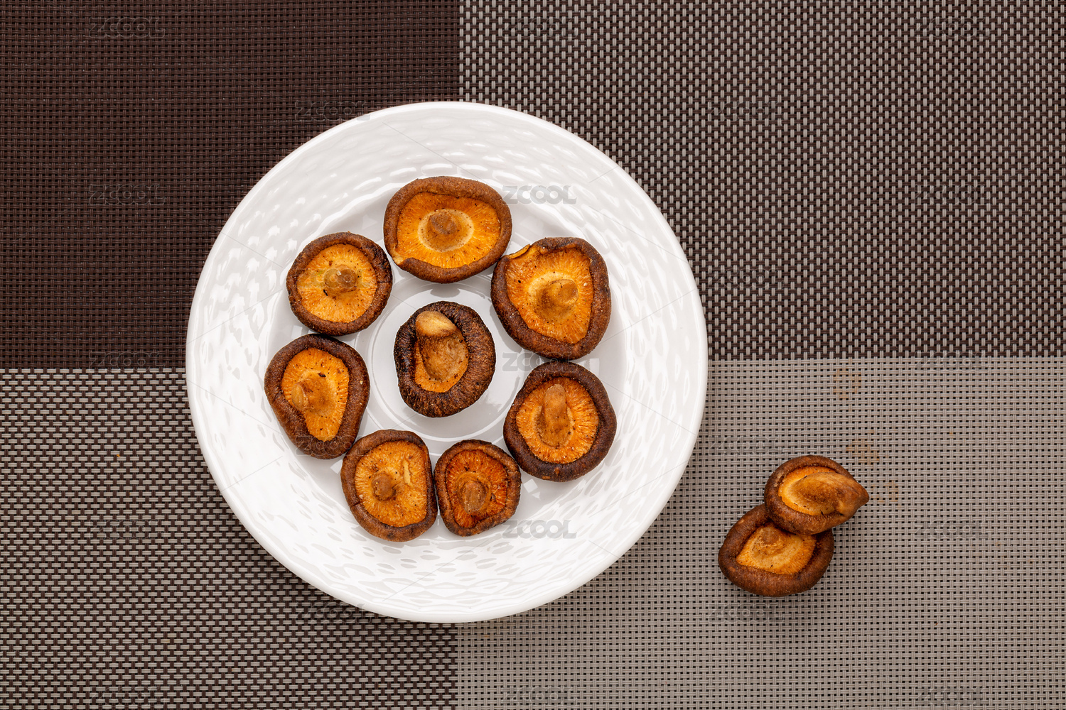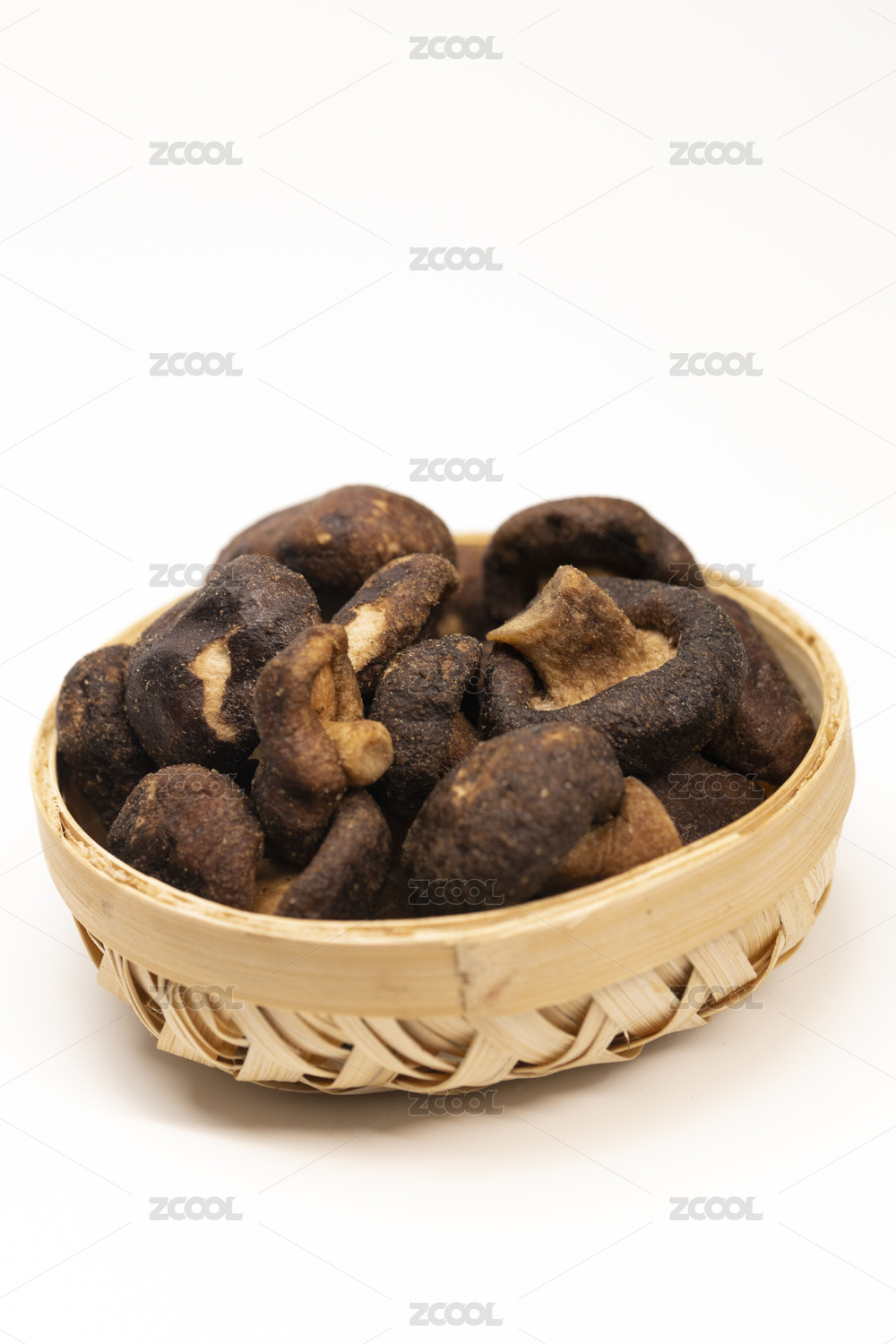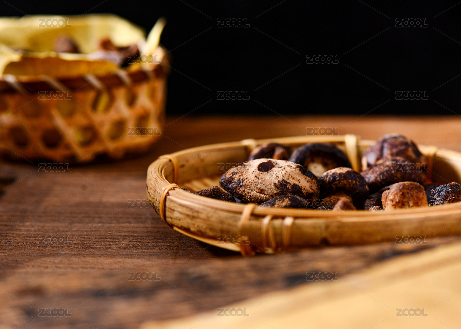 木色背景上擺放的蔬菜干香菇脆