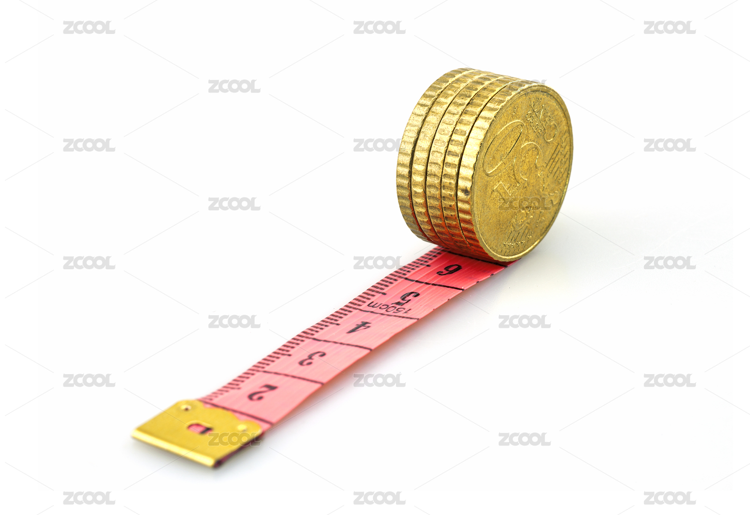 美女拿著皮尺卷尺測量自己的腰圍減肥概念