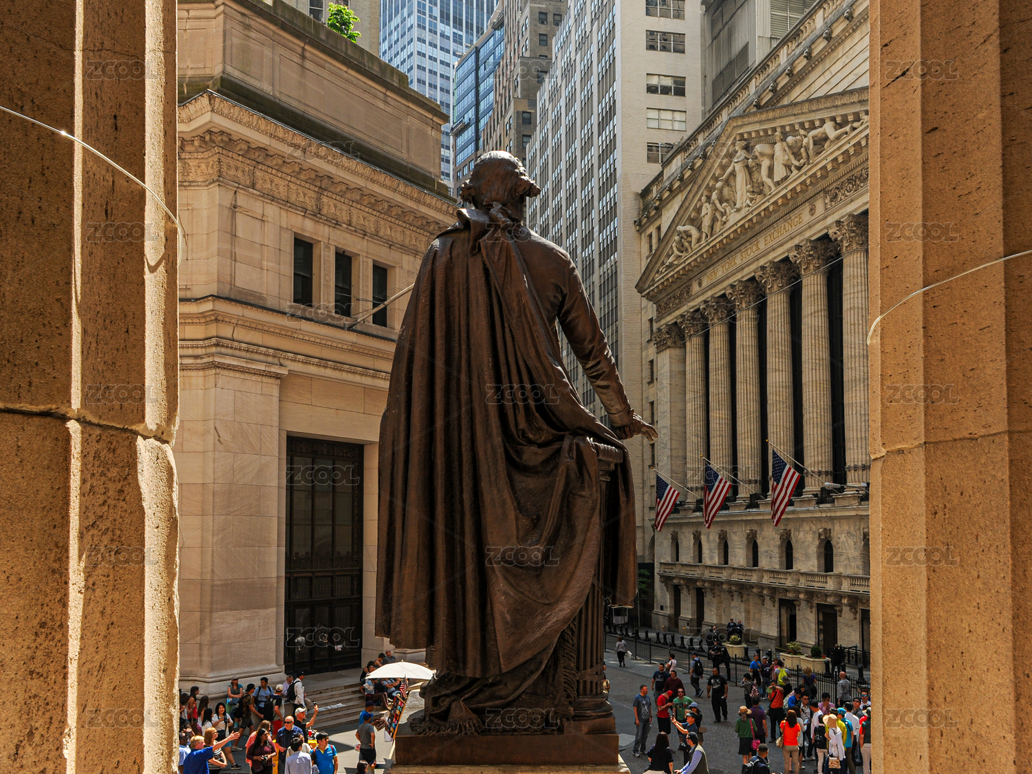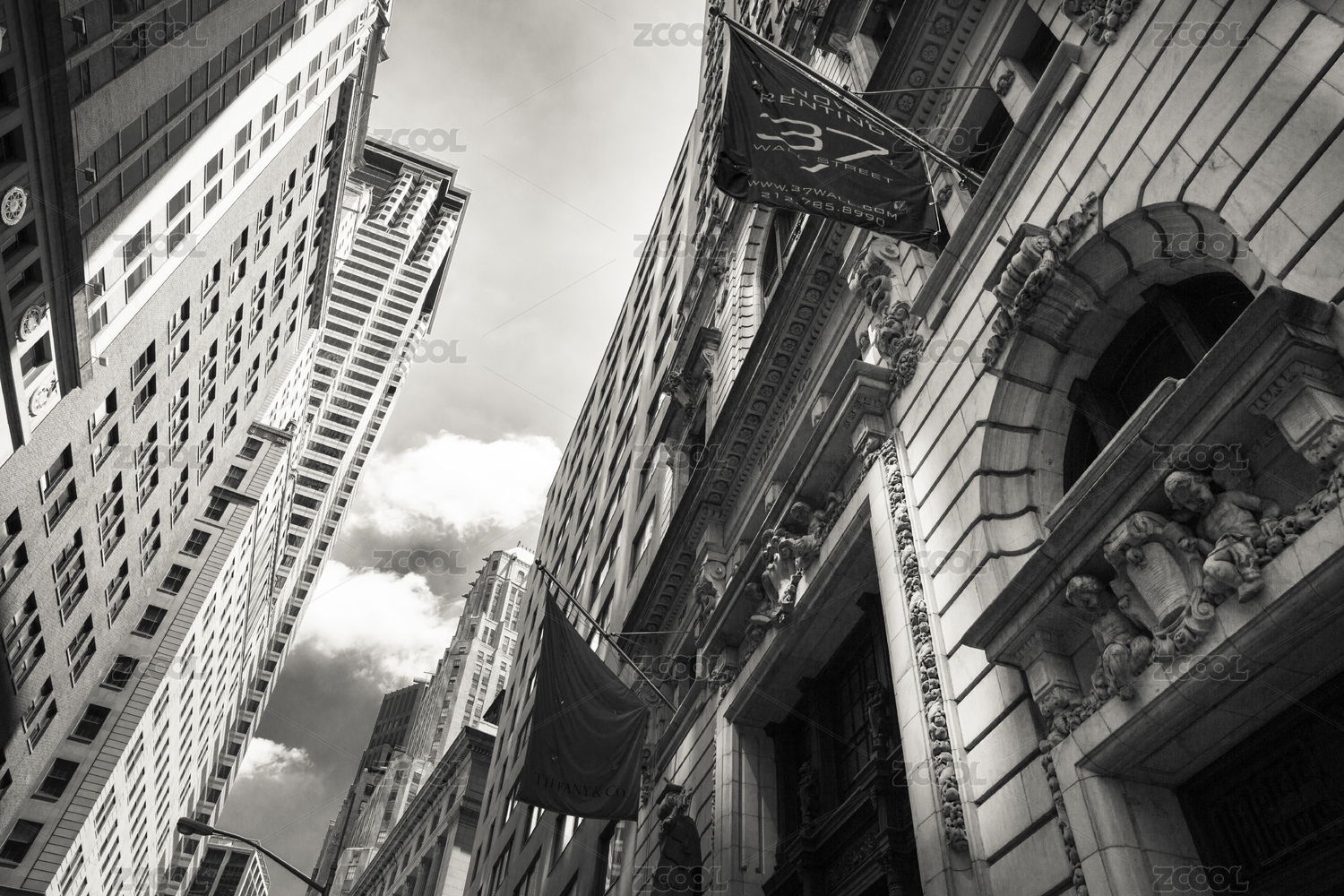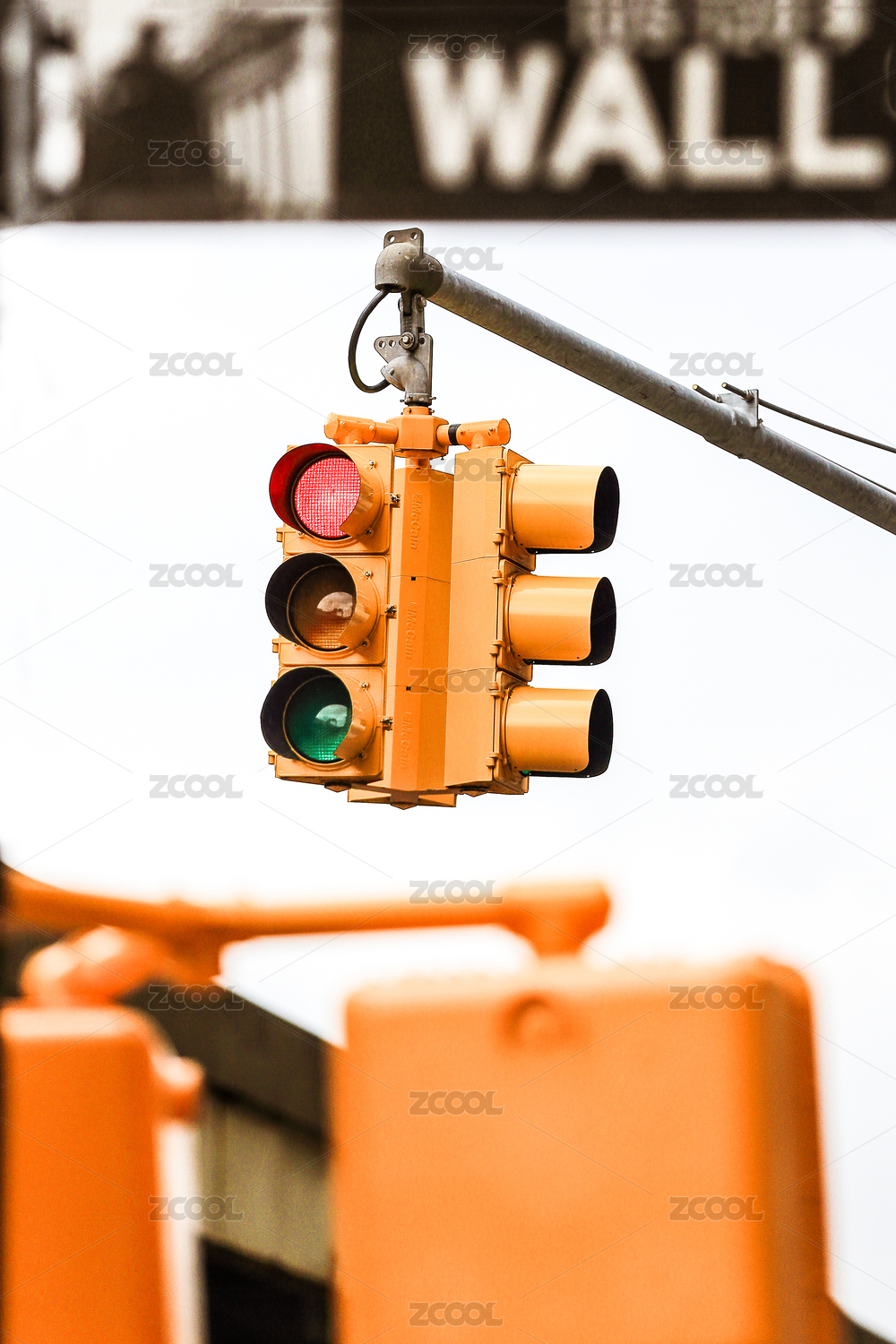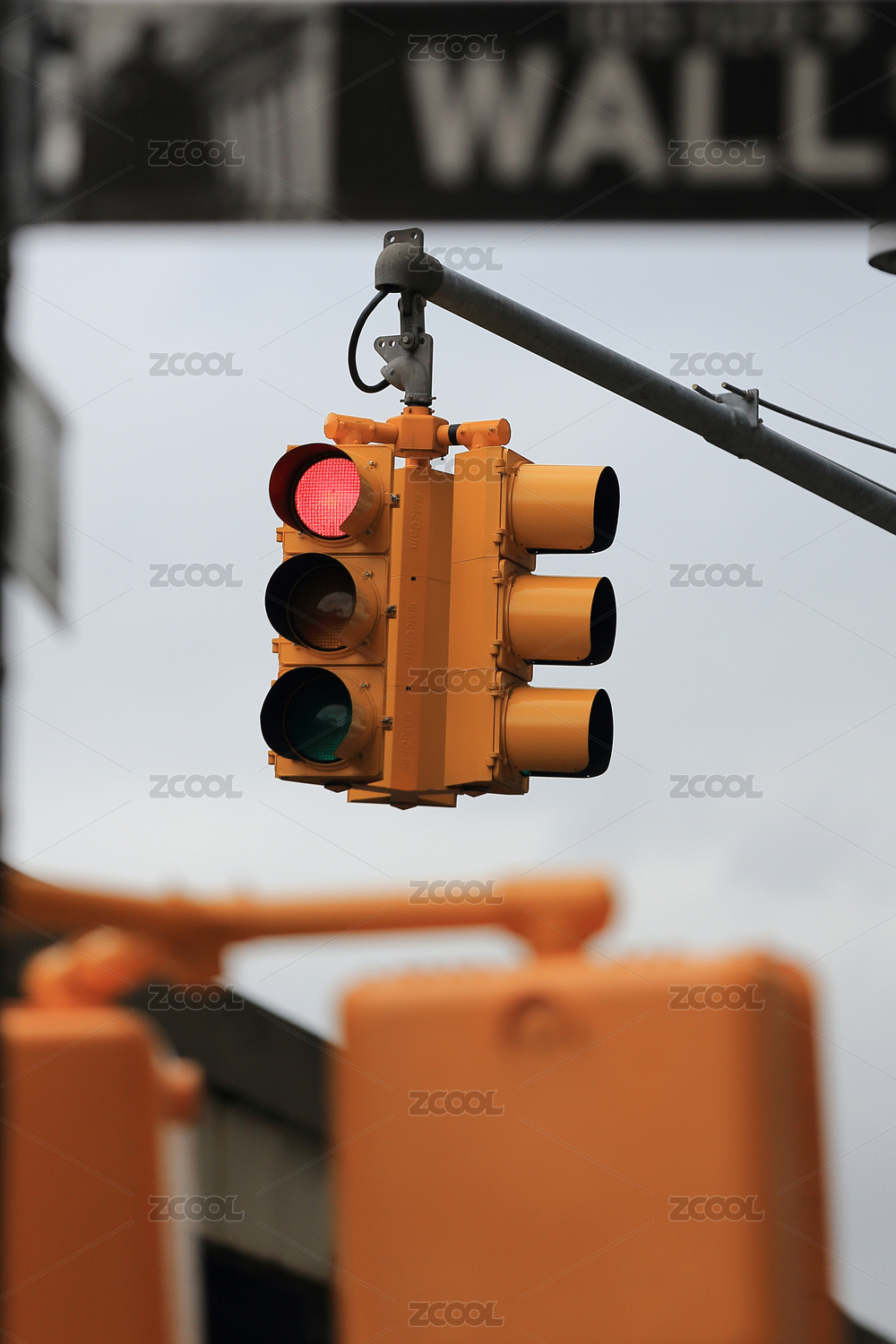 美國紐約金融中心華爾街的紅綠燈和路標指示牌