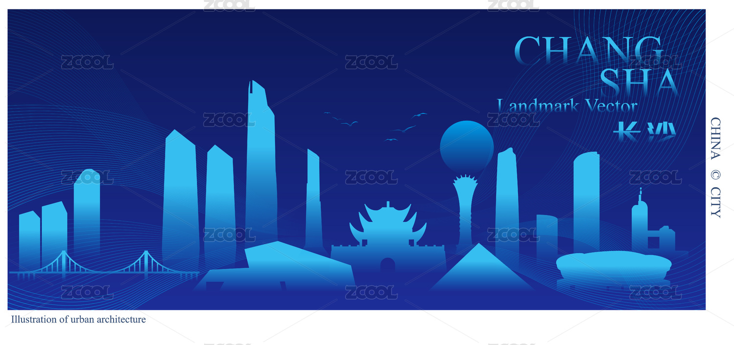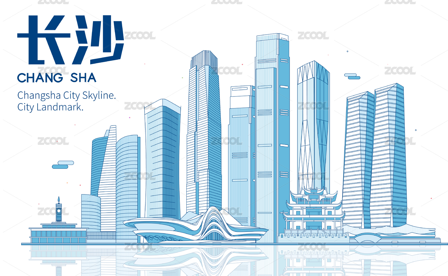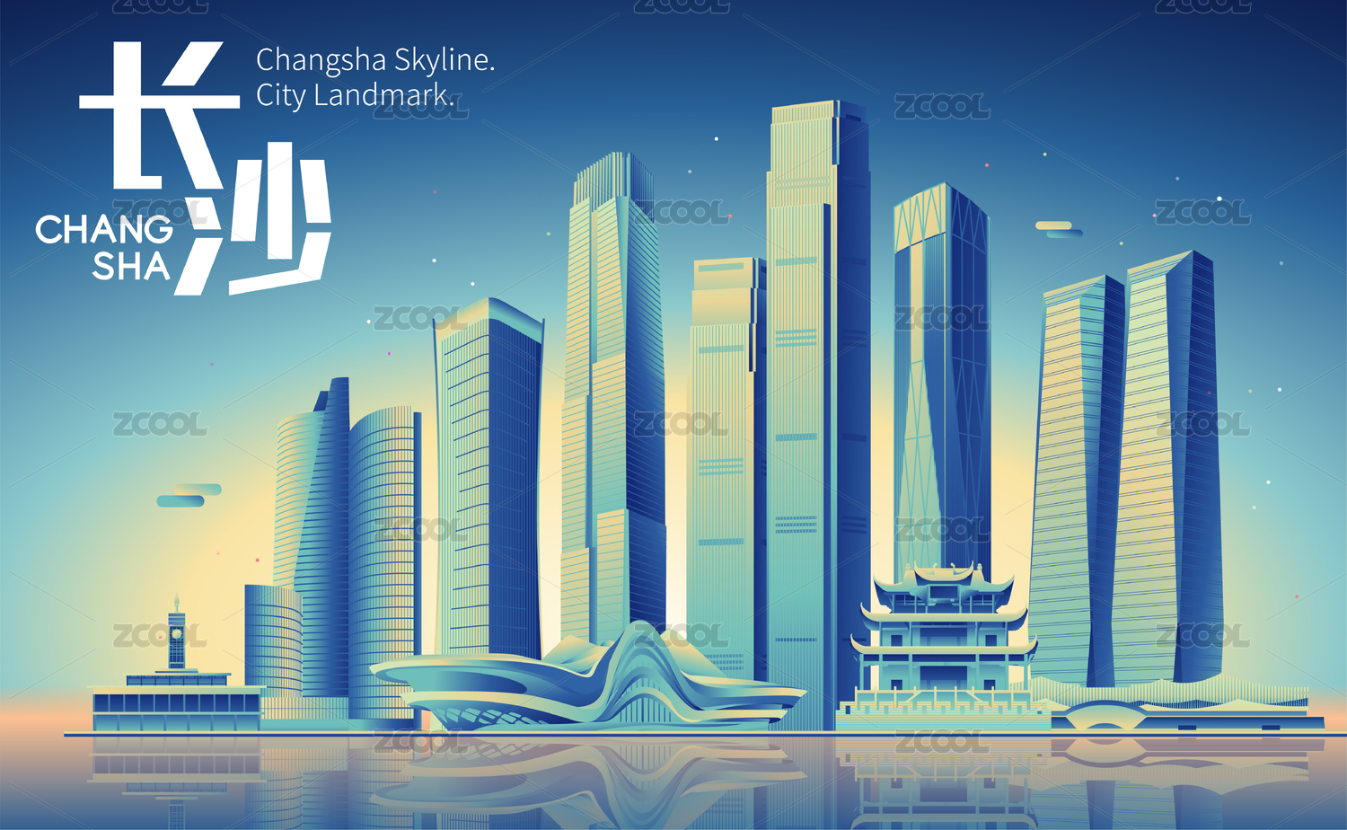 長(zhǎng)沙藍(lán)色科技城市地標(biāo)建筑矢量插畫