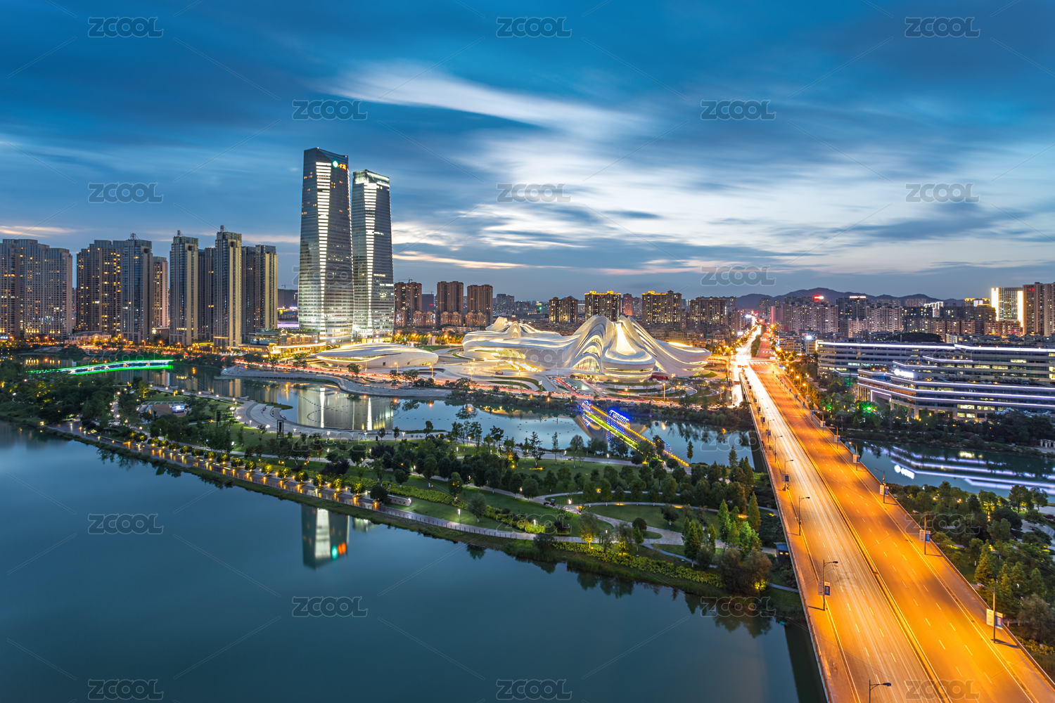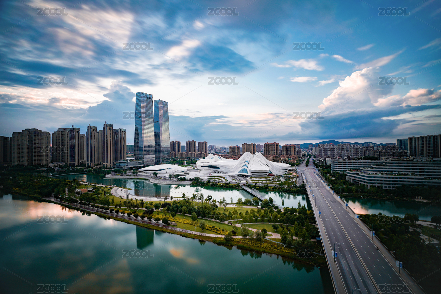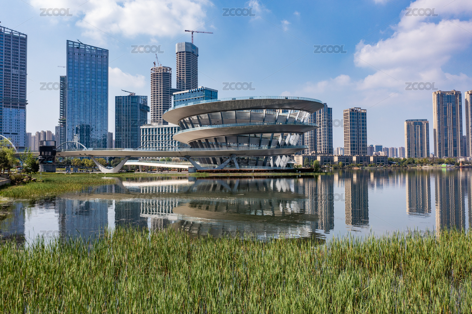 湖南長(zhǎng)沙梅溪湖畔的高樓與藝術(shù)中心