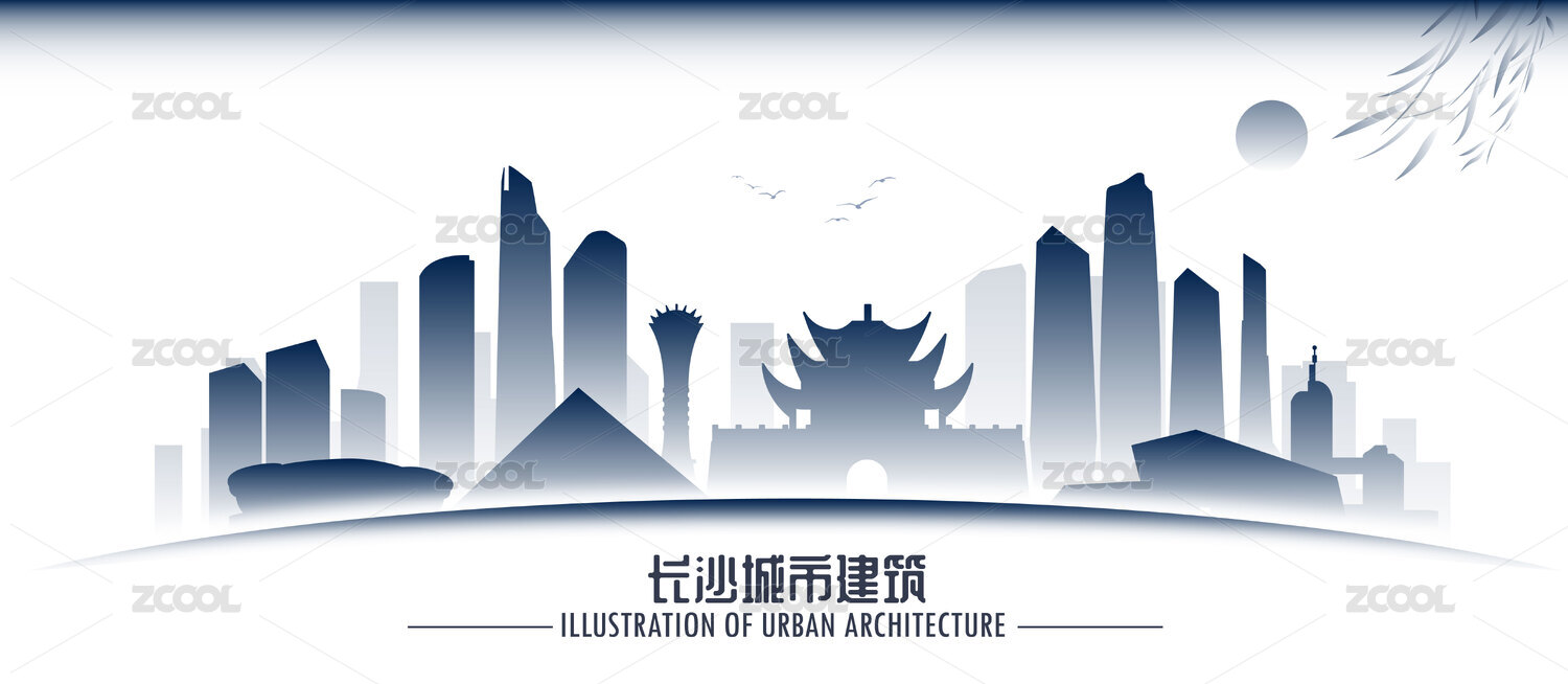 長(zhǎng)沙城市天際線地標(biāo)建筑矢量插畫