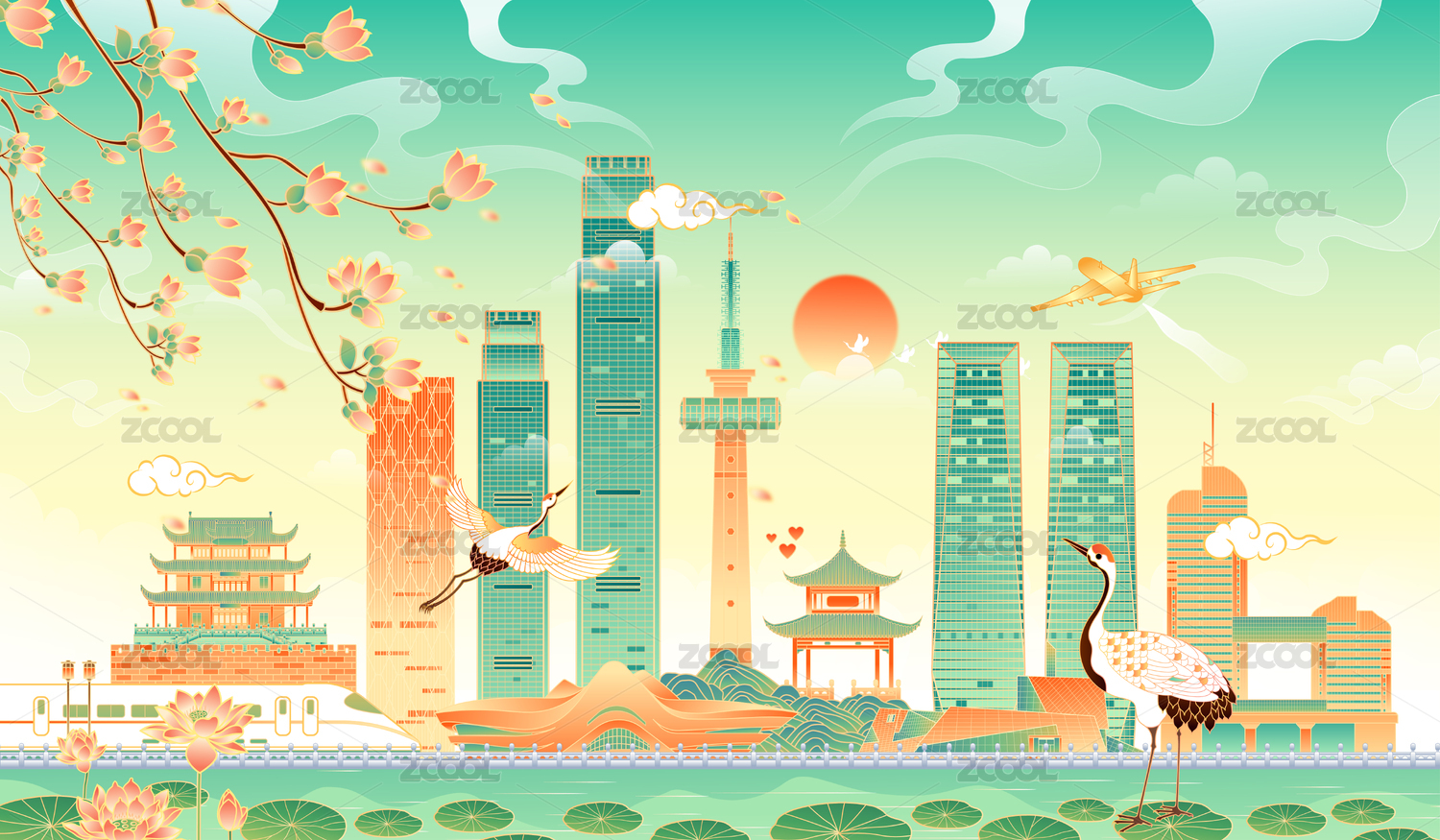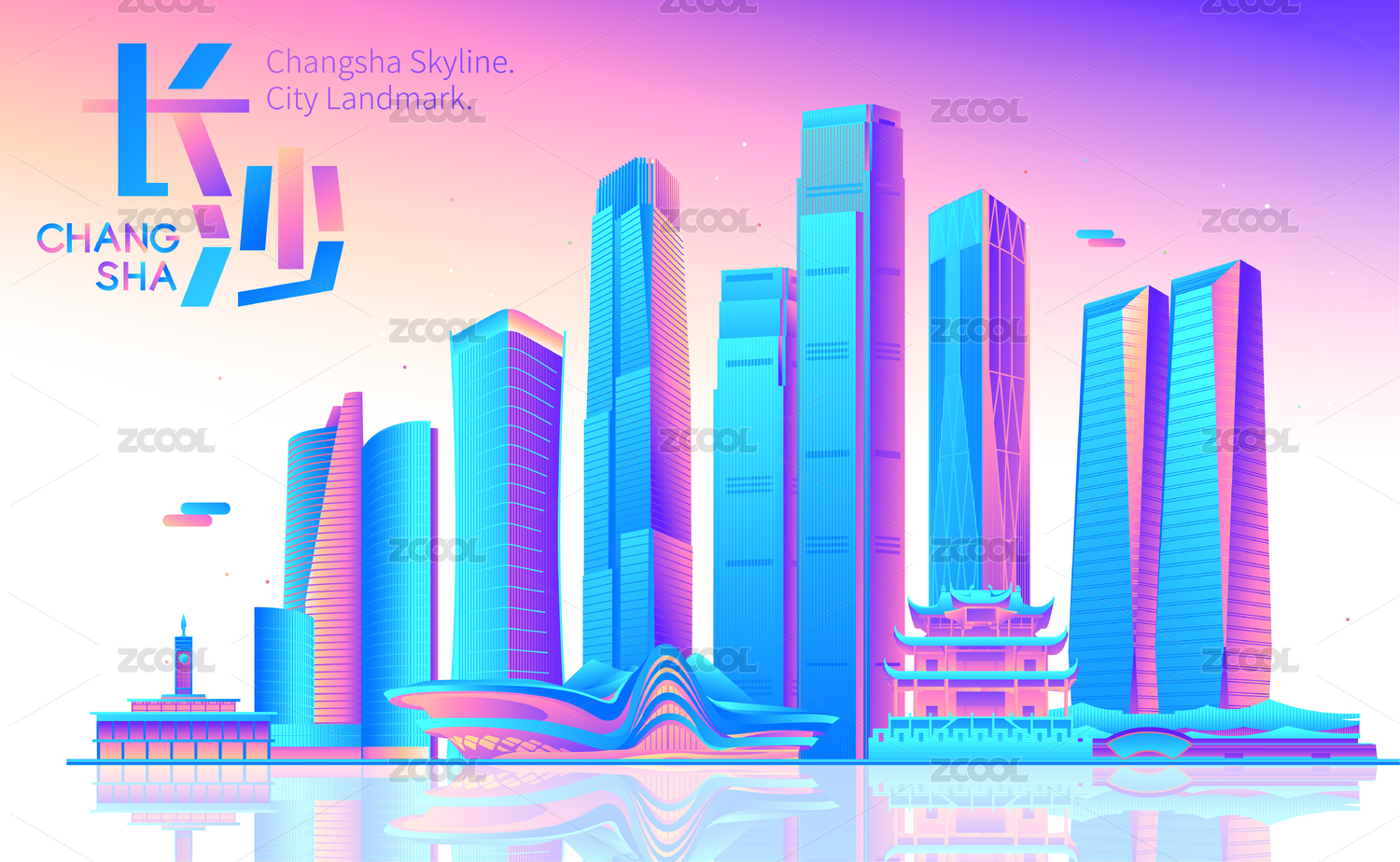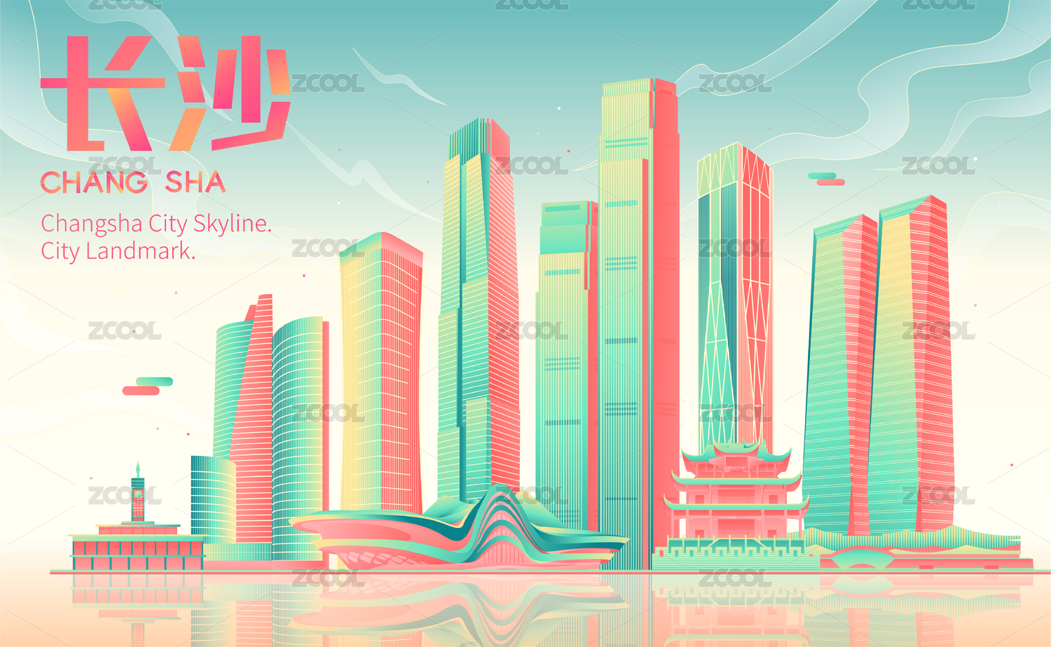 湖南長(zhǎng)沙地標(biāo)建筑矢量插畫