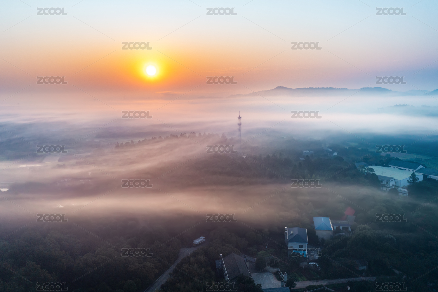 航拍湖南長(zhǎng)沙天心區(qū)跳馬鎮(zhèn)晨霧景觀