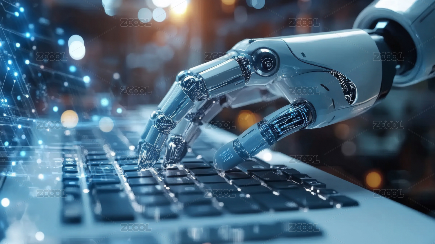 機(jī)器人的手觸碰筆記本電腦鍵盤