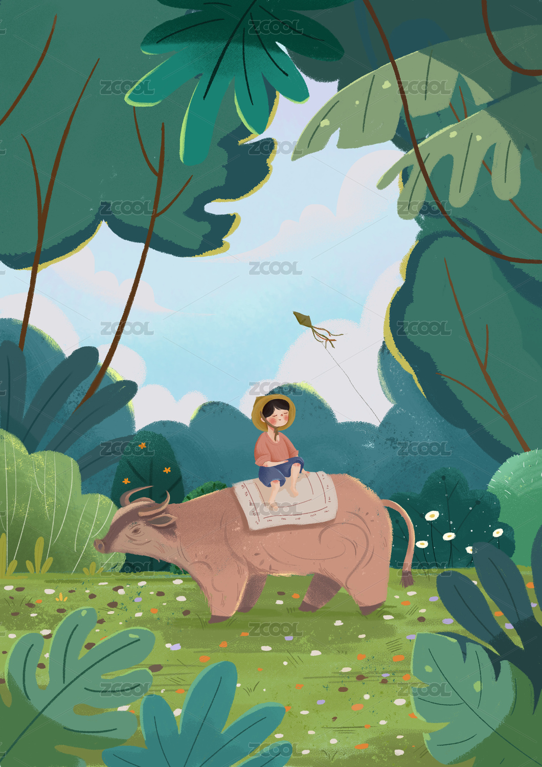 春天牧童清明插畫