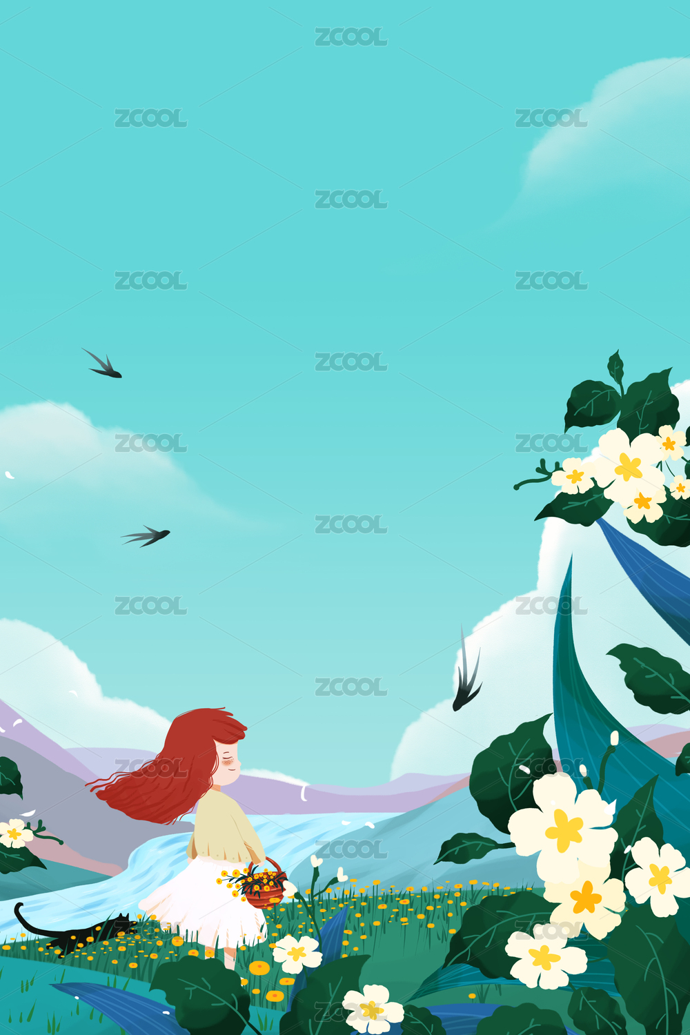 手繪清明插畫 意境春天風景插畫背景