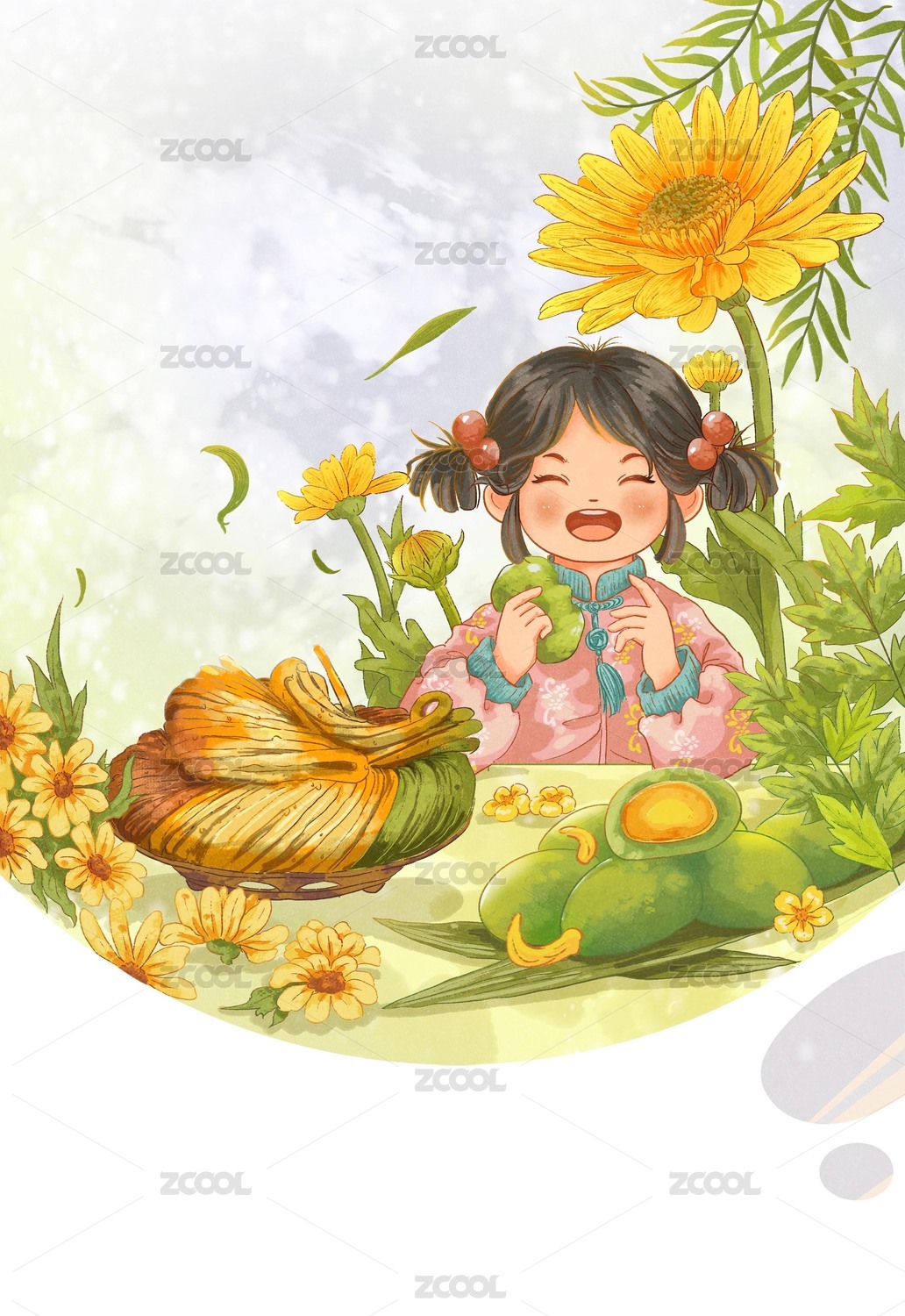 清明節(jié)青團蒸籠美食國風插畫