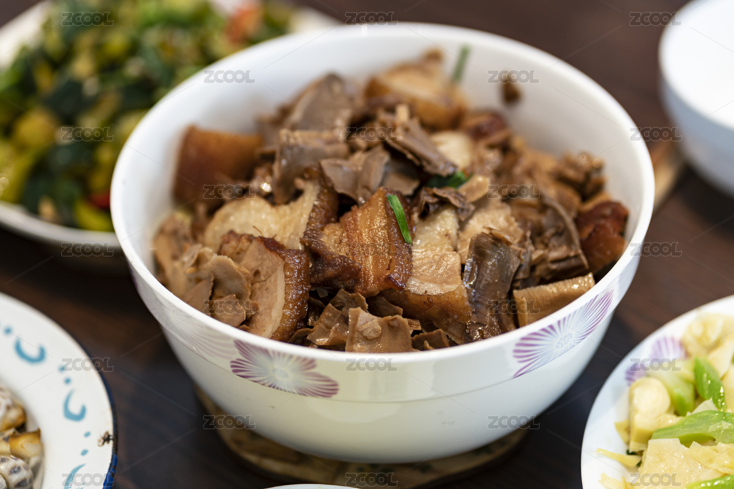家常餐桌上的一盤(pán)紅燒肉燜筍干