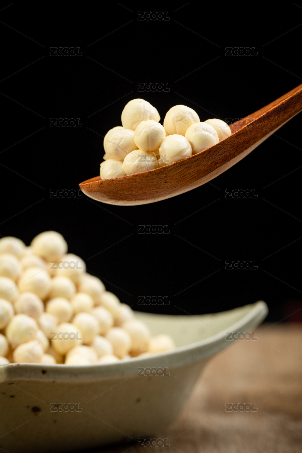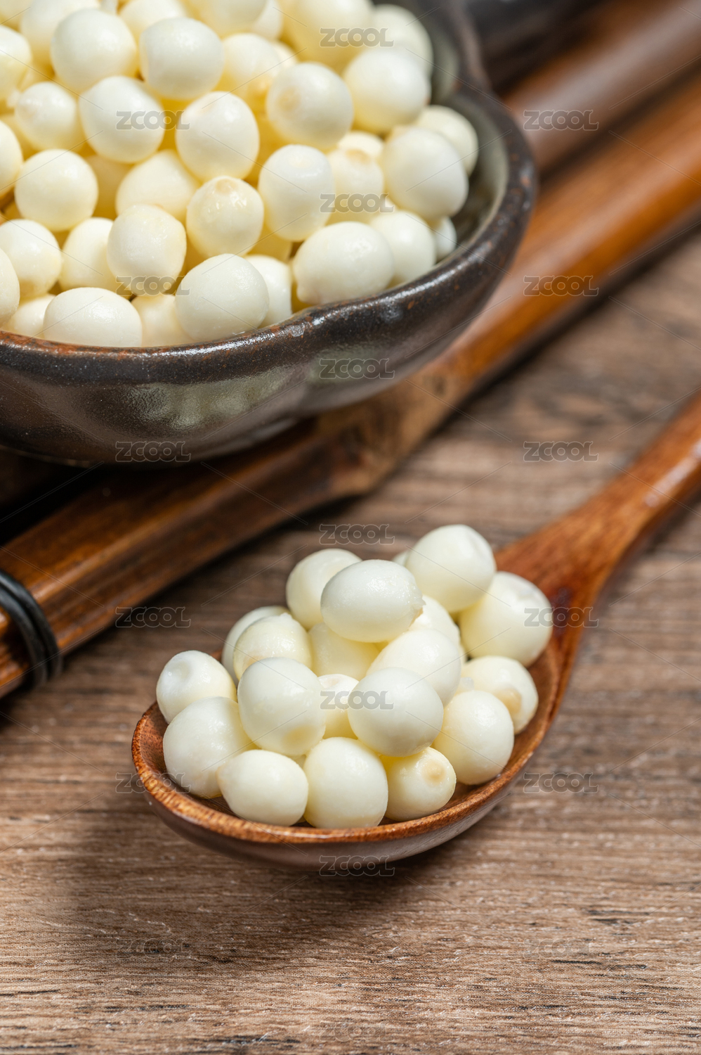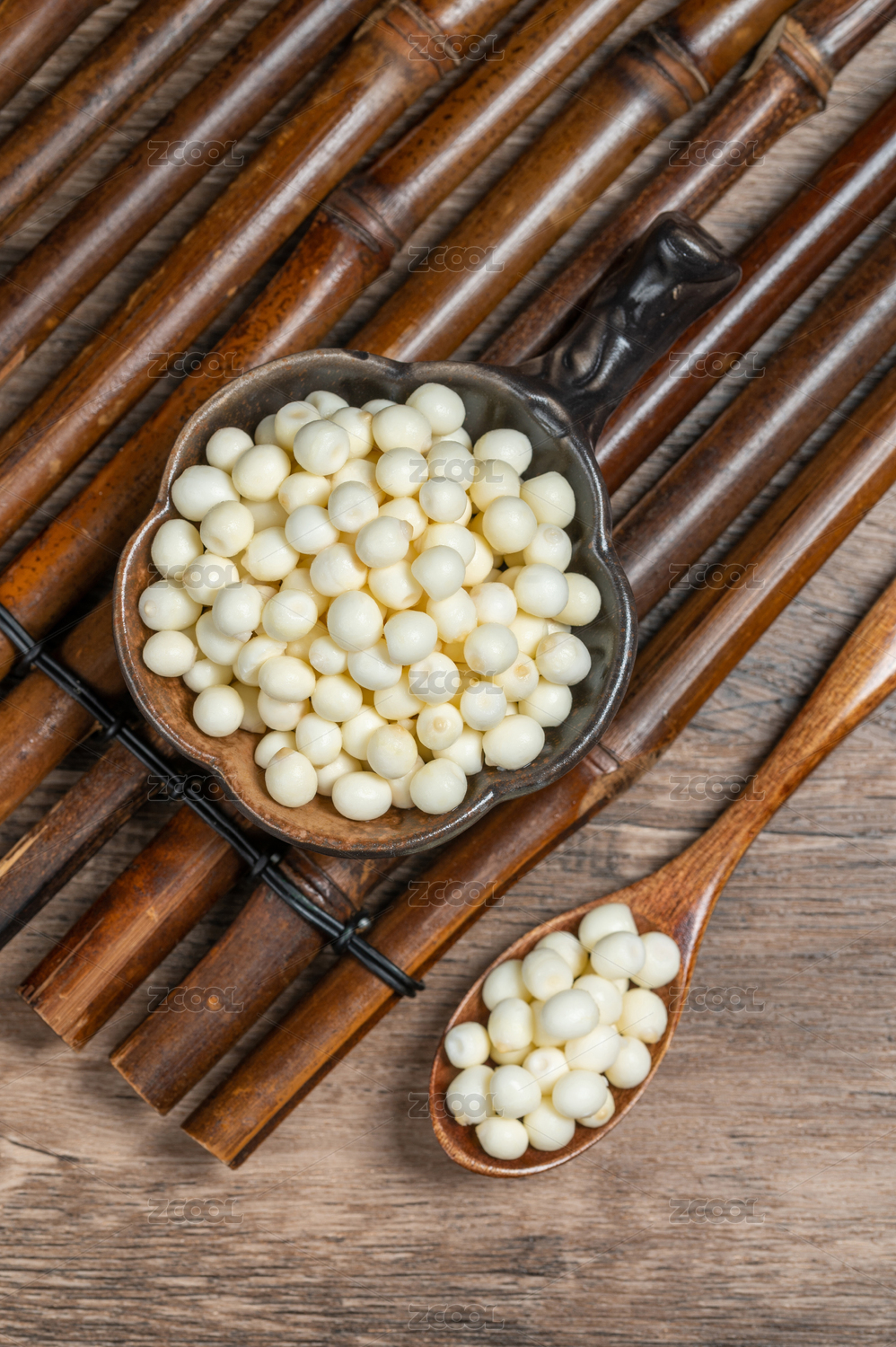 木紋桌上的一勺雞頭米